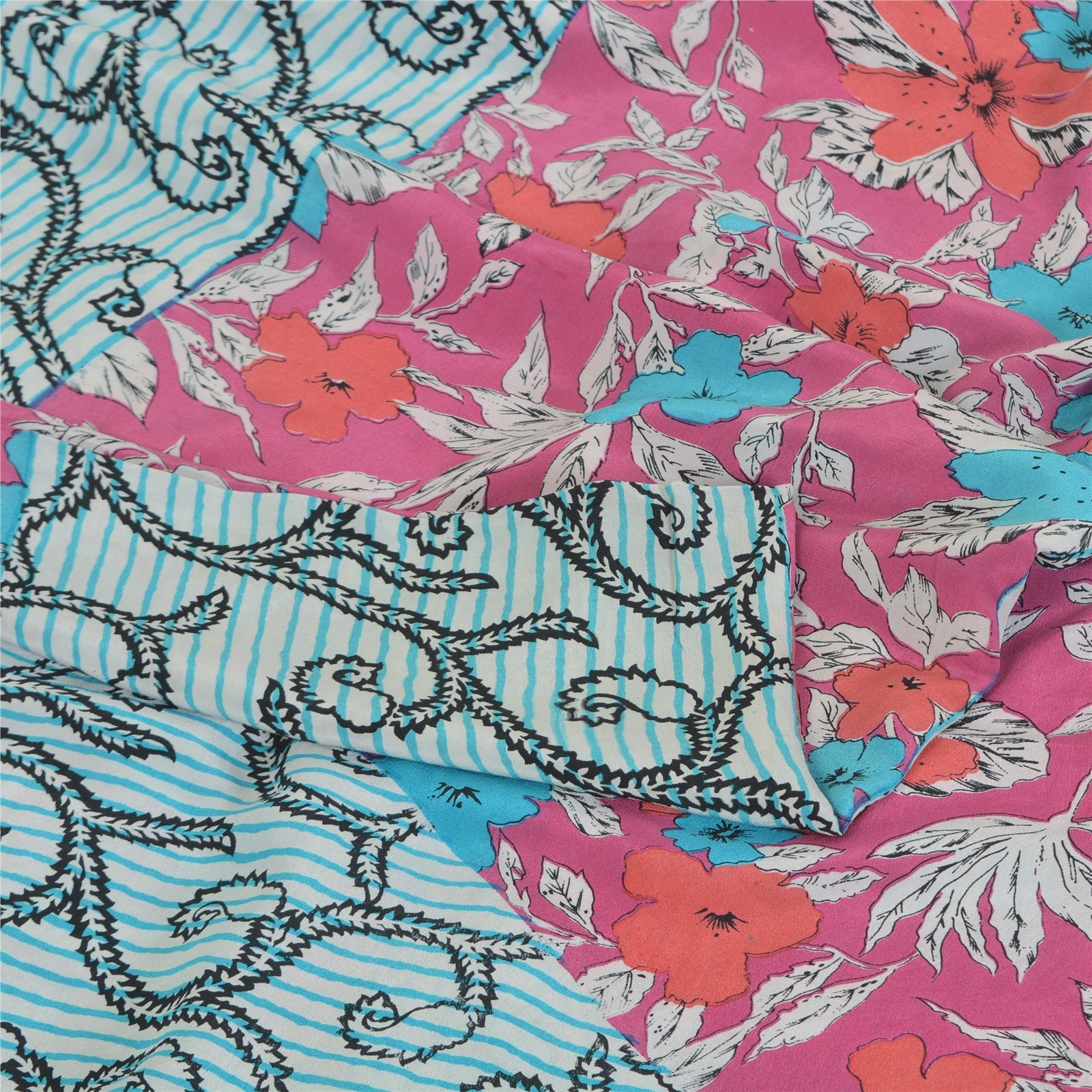 THE ITEM COLOR OR SHADE MAY BE DARKER OR LIGHTER THAN THE PICTURE.' • Beautiful blue & pink colored printed pure crepe silk saree . • Pallu & Border has printed floral design. • Floral design in center part of sari . This unique vintage saree can be used for various crafting ideas even if you don't want to use it as a sari. Design a dress, use it as a as window dressing, upholstery, sarongs, throw, dress making and table linen much more. Let your creative juices flow and use this decorated Sustainable Fabric in multiple fashion. International buyers please note: Import duties, taxes, and charges are not included in the item price or postage cost. These charges are the buyer's responsibility. Please check with your country's customs office to determine what these additional costs will be prior to bidding or buying.Buyer will pay custom duty/tax. It is calculated and charged differently by every country. As a seller I do not have any control over it. VAT or sales tax is calculated by the platform at the time of checkout. Customs charge is payable at the time of delivery.