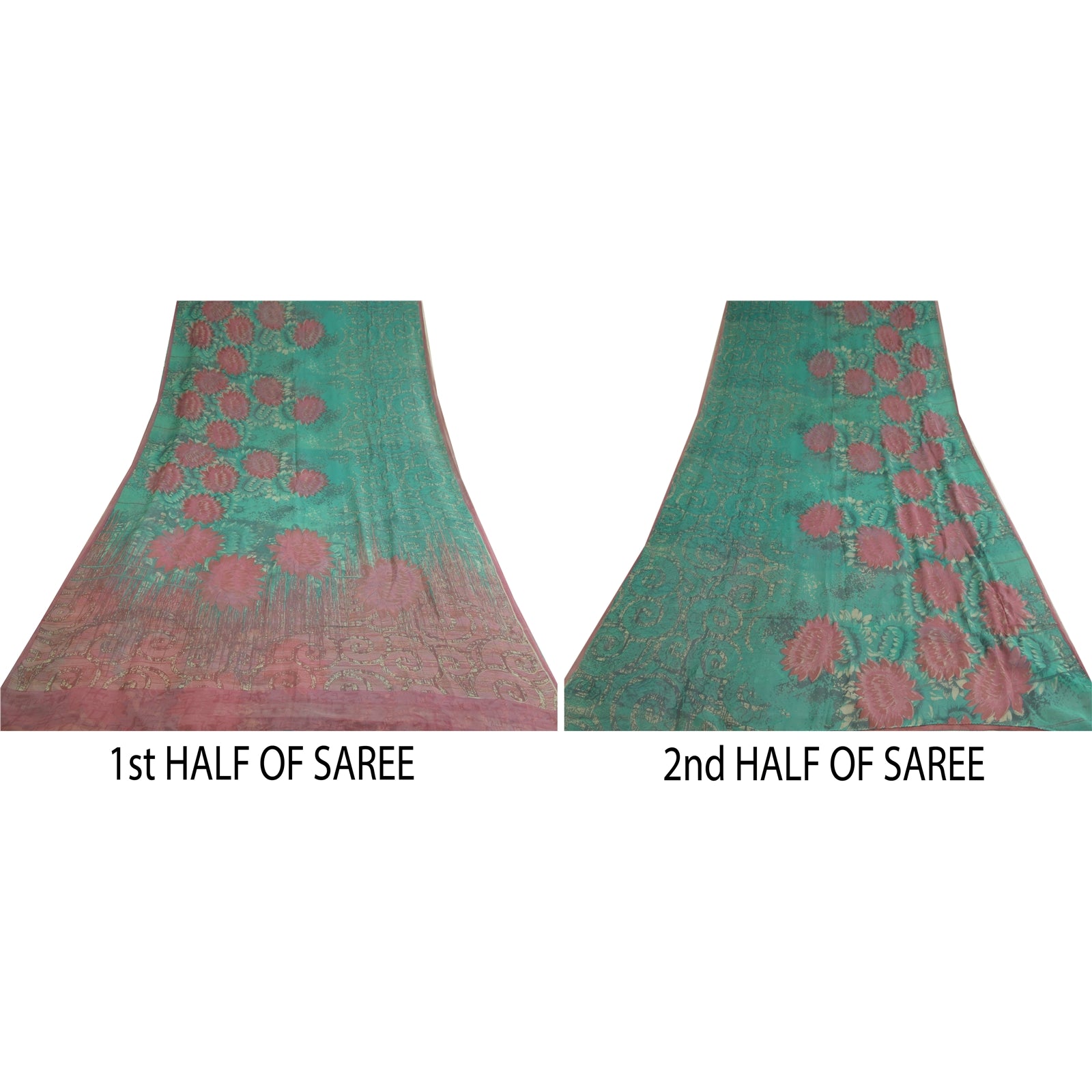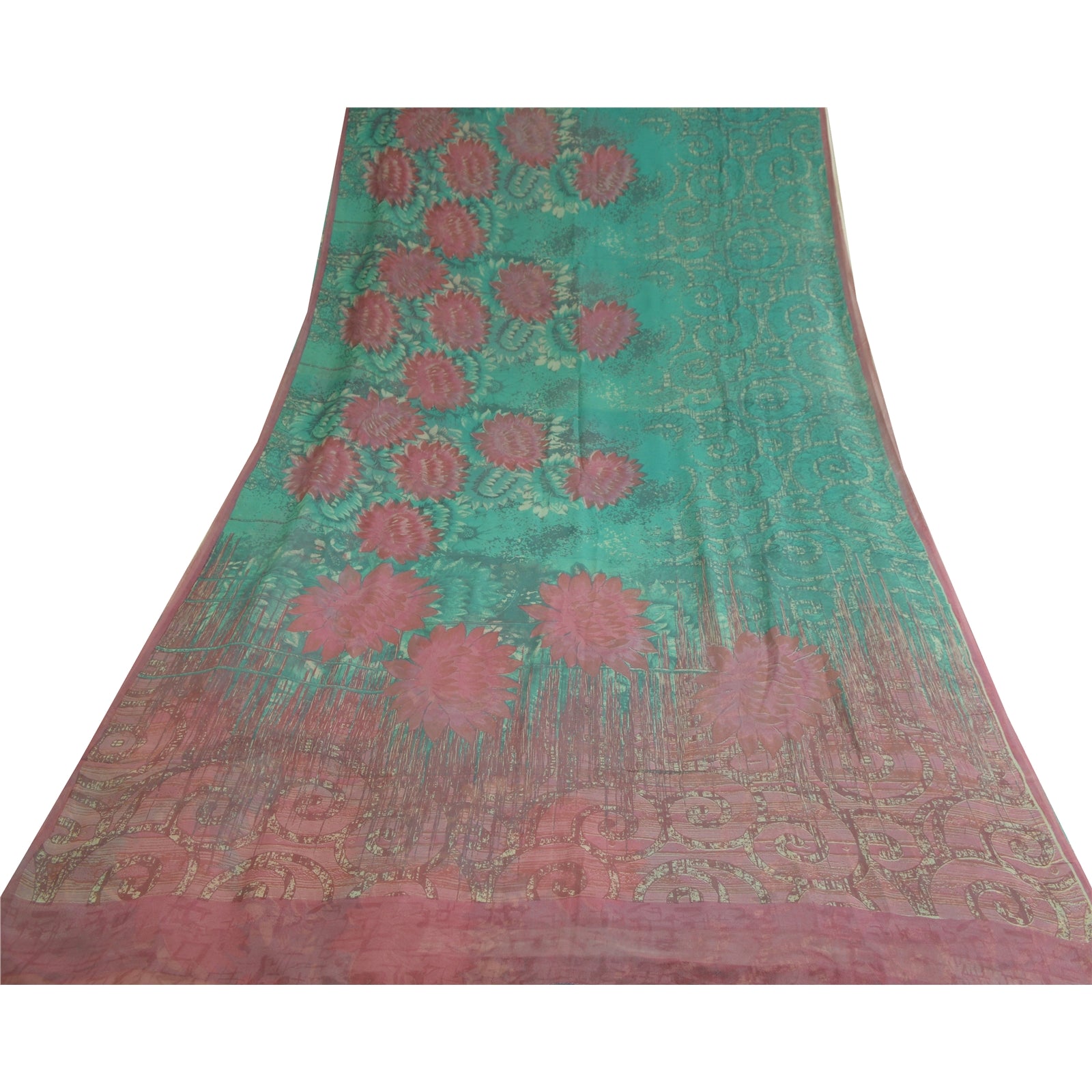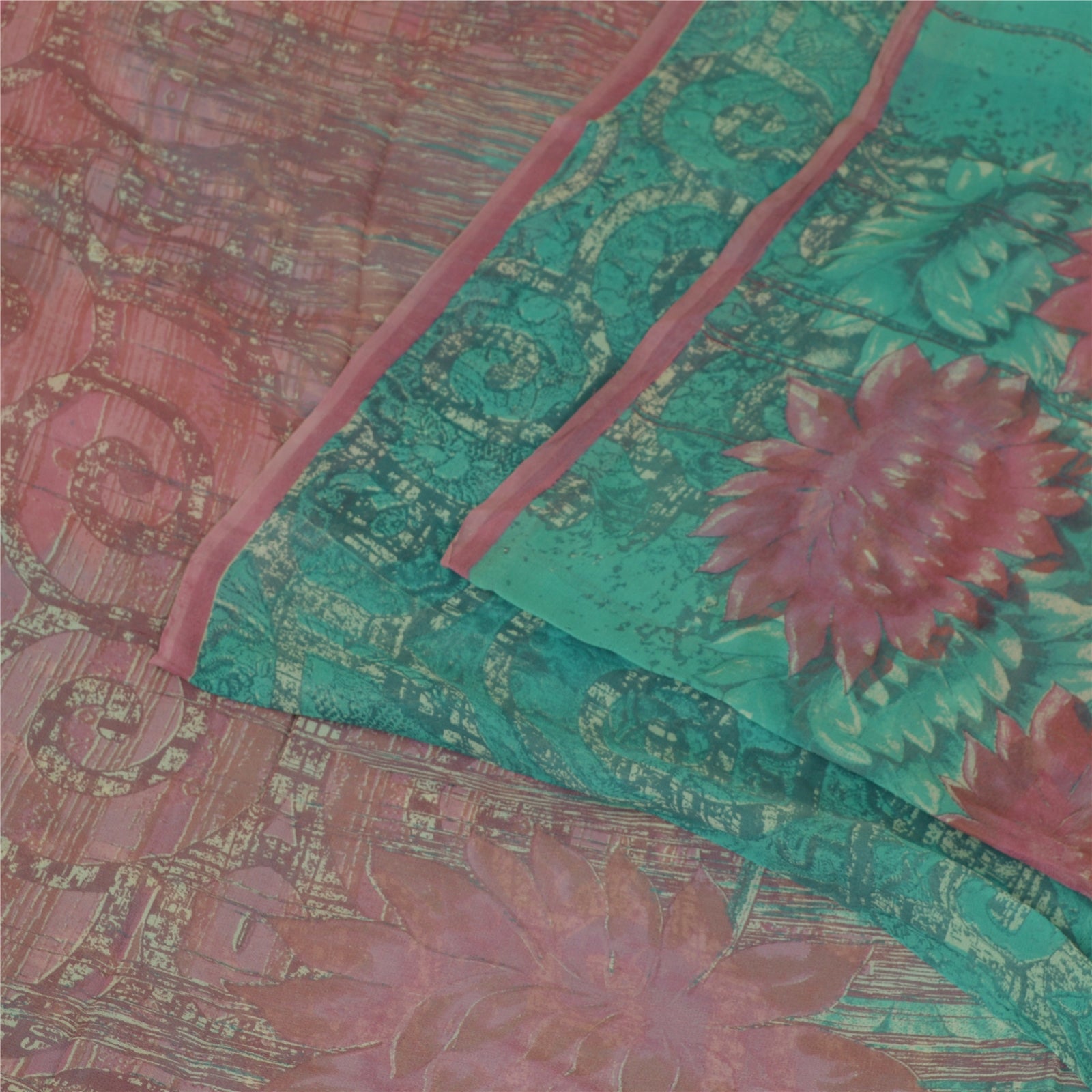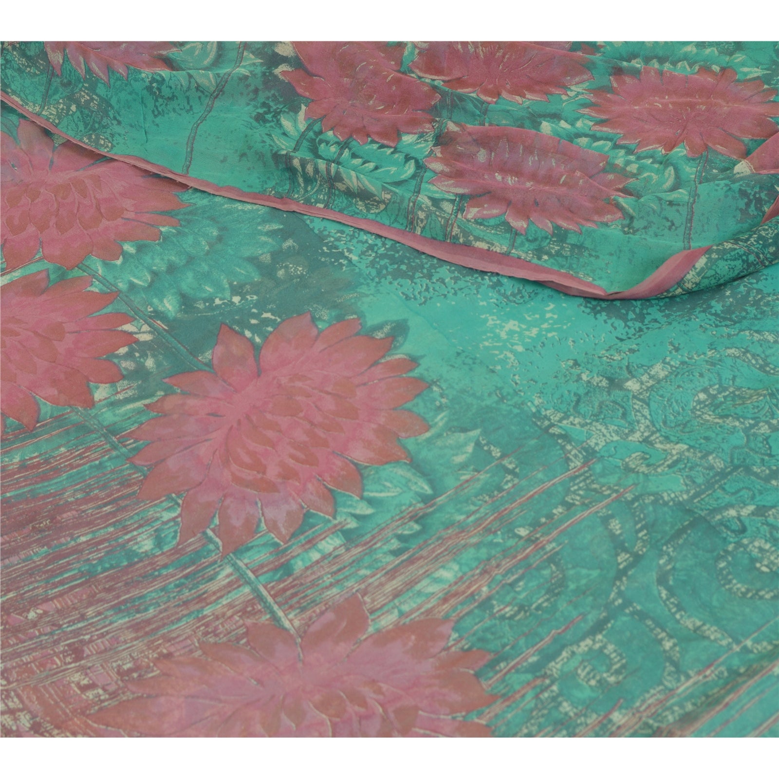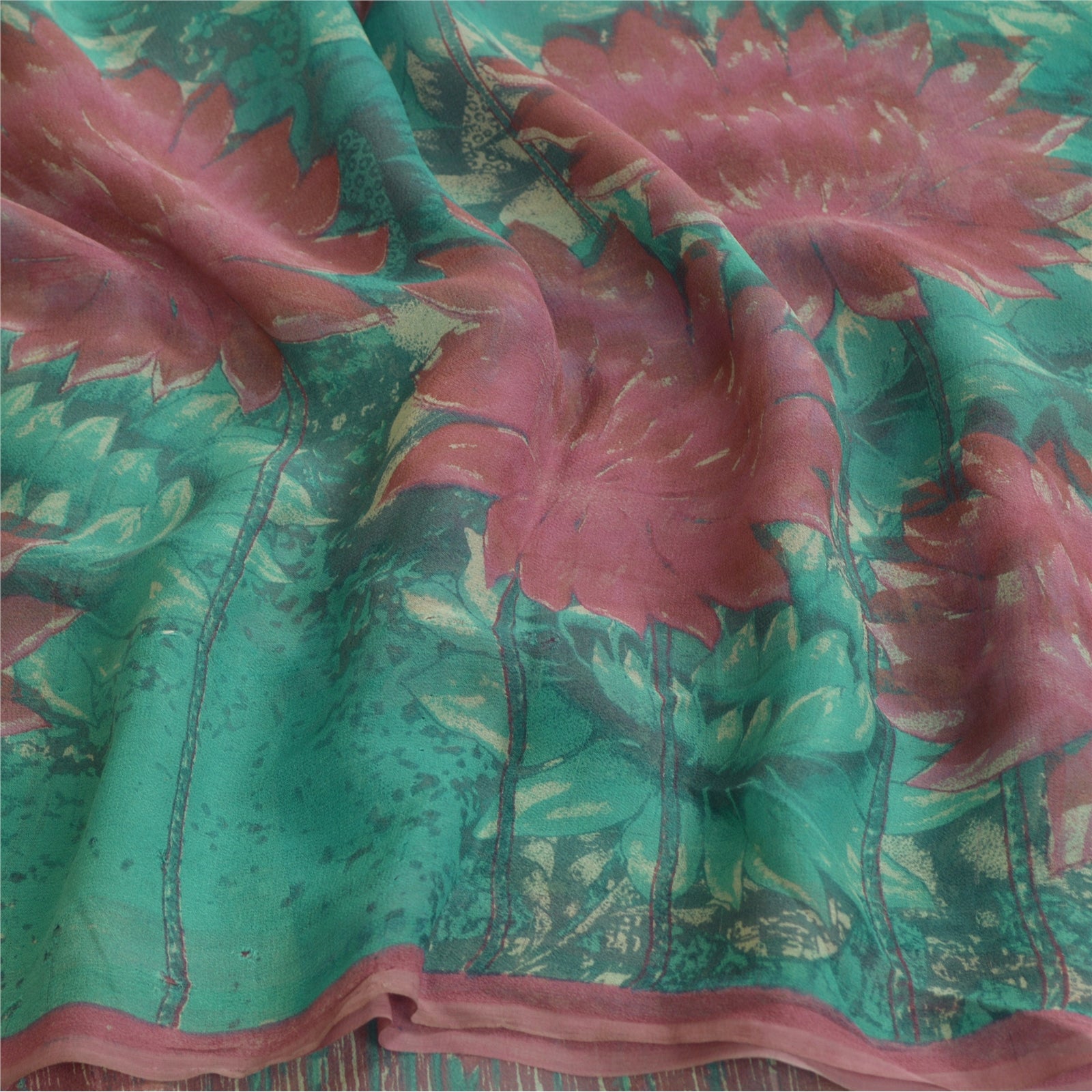 Sanskriti Vintage Sarees Blue/Pink Pure Georgette Silk Print Sari Craft Fabric