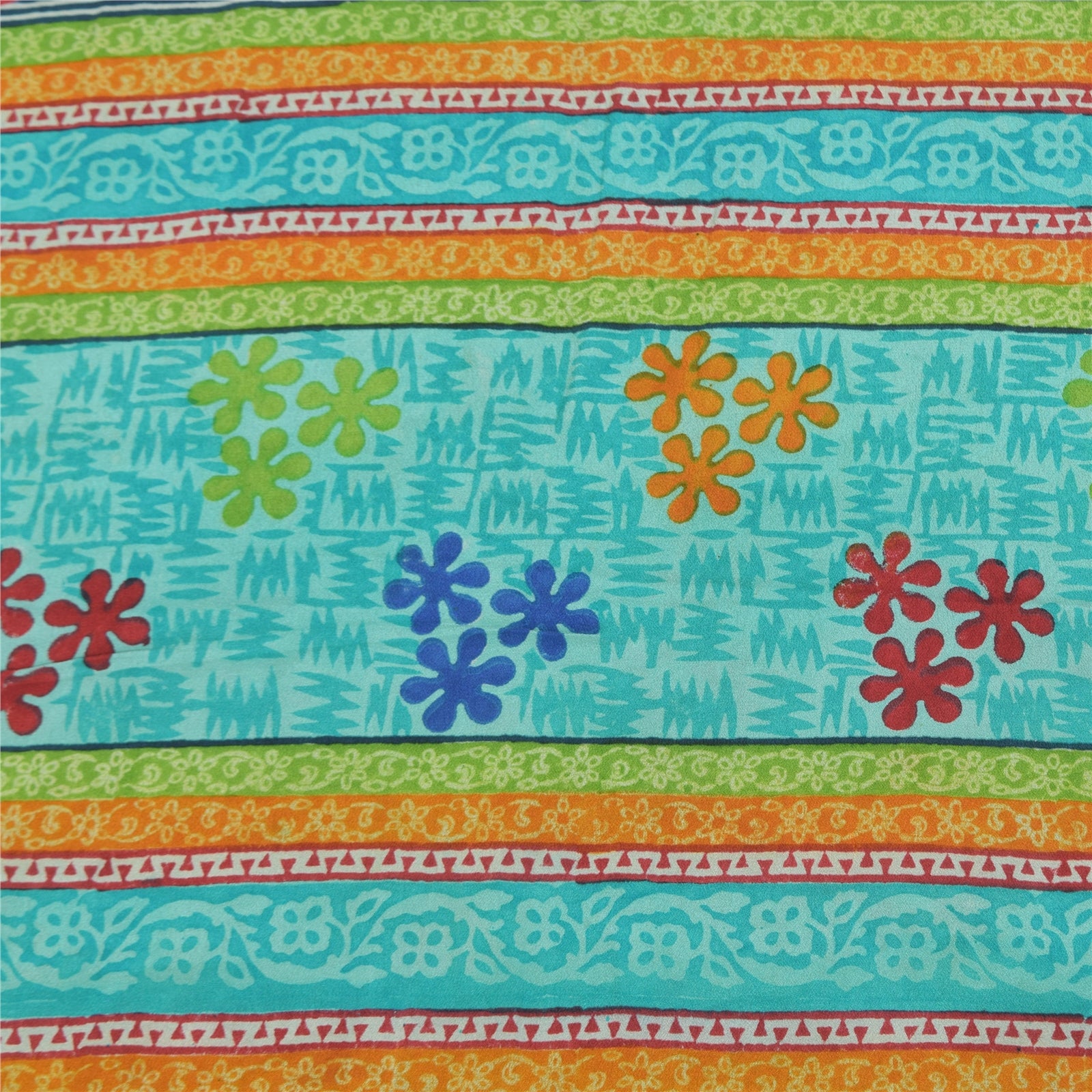 Sanskriti Vintage Sarees Blue Pure Crepe Silk Printed Sari 6+yd Craft Sustainable Fabric