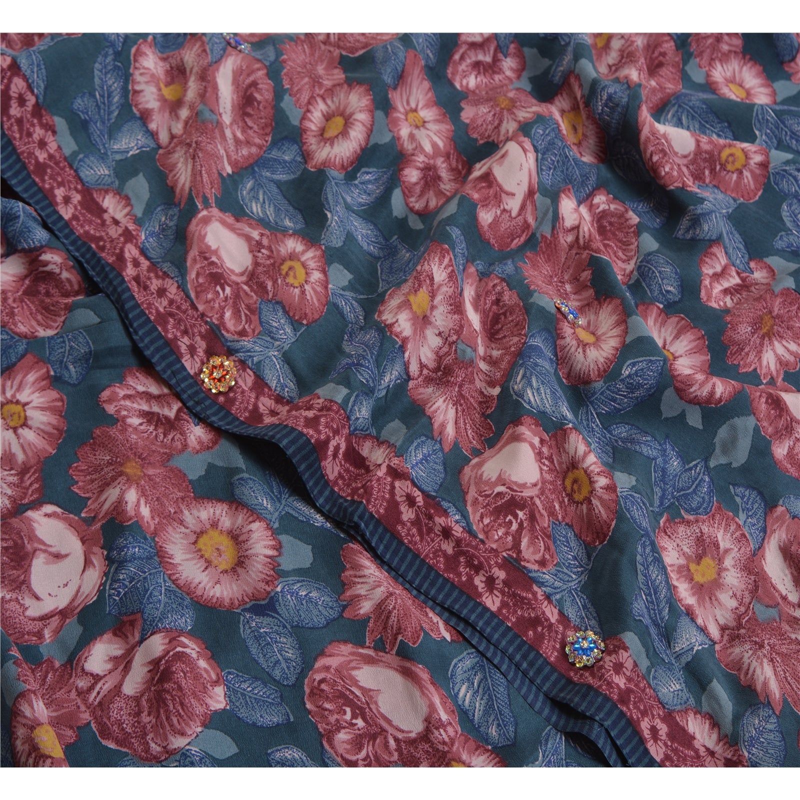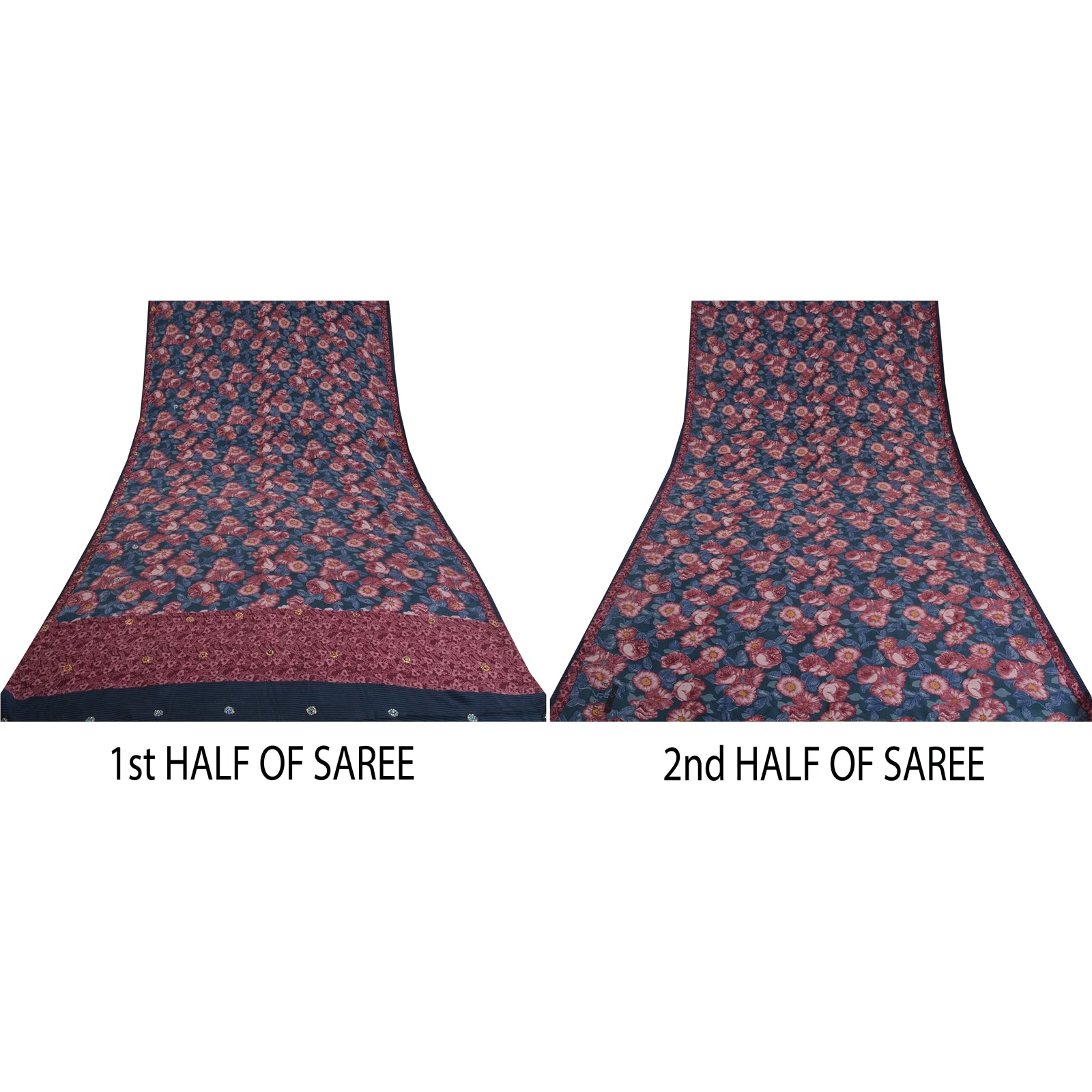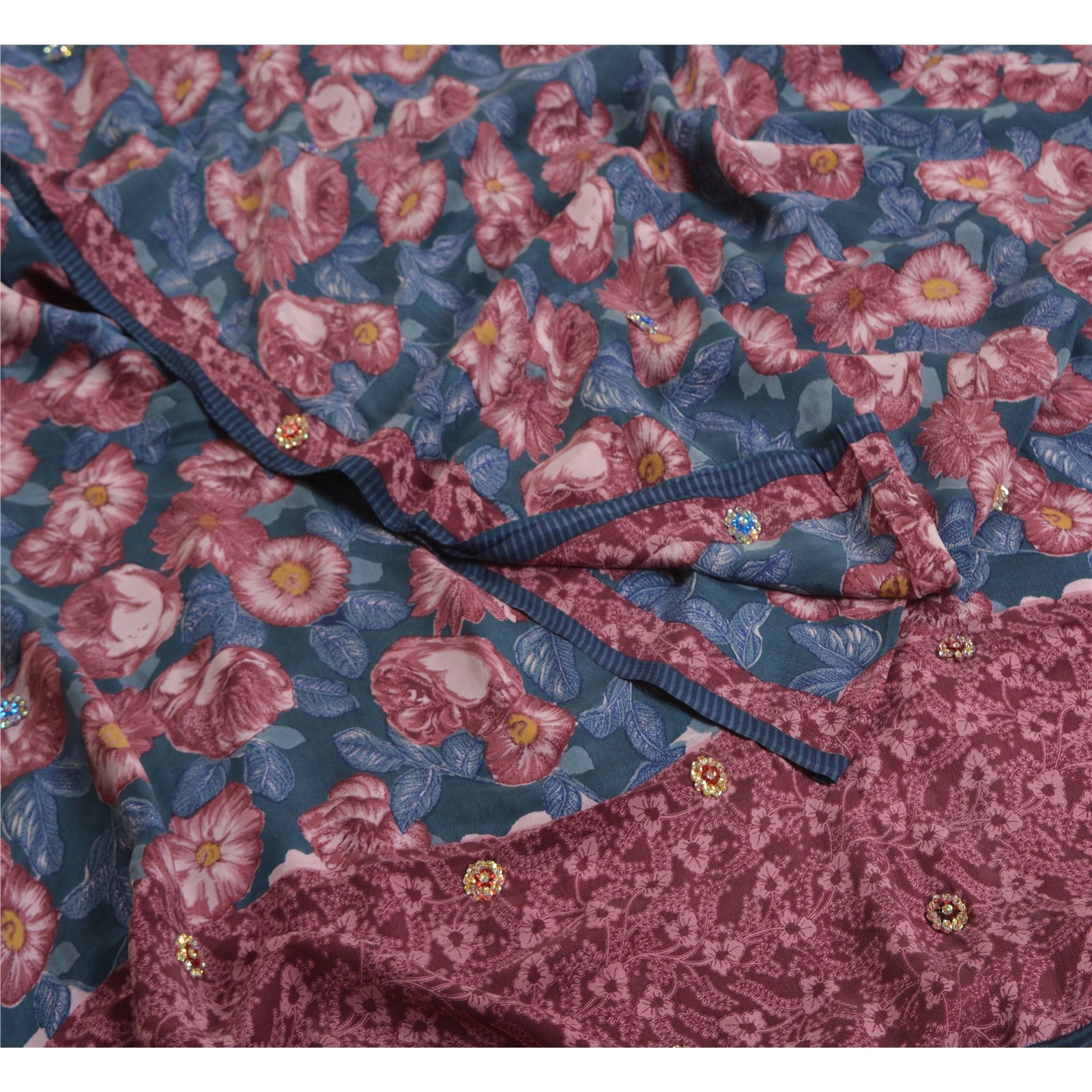 THE ITEM COLOR OR SHADE MAY BE DARKER OR LIGHTER THAN THE PICTURE.' Beautiful blue & purple colored pure crepe silk printed & hand embroidered saree. Pallu & Border has printed floral design with sequins & glass beaded work. Similar work in center part of saree. What is special about this saree? Fabulous design is really enhancing the beauty of the saree. This unique vintage saree can be used for various crafting ideas even if you don't want to use it as a sari. Design a dress, use it as window,dressing, upholstery, sarongs, throw, dress making and table linen much more. Let your creative juices flow and use this decorated Sustainable Fabric in multiple fashion. International buyers please note: Import duties, taxes, and charges are not included in the item price or postage cost. These charges are the buyer's responsibility. Please check with your country's customs office to determine what these additional costs will be prior to bidding or buying.Buyer will pay custom duty/tax. It is calculated and charged differently by every country. As a seller I do not have any control over it.VAT or sales tax is calculated by the platform at the time of checkout. Customs charge is payable at the time of delivery.