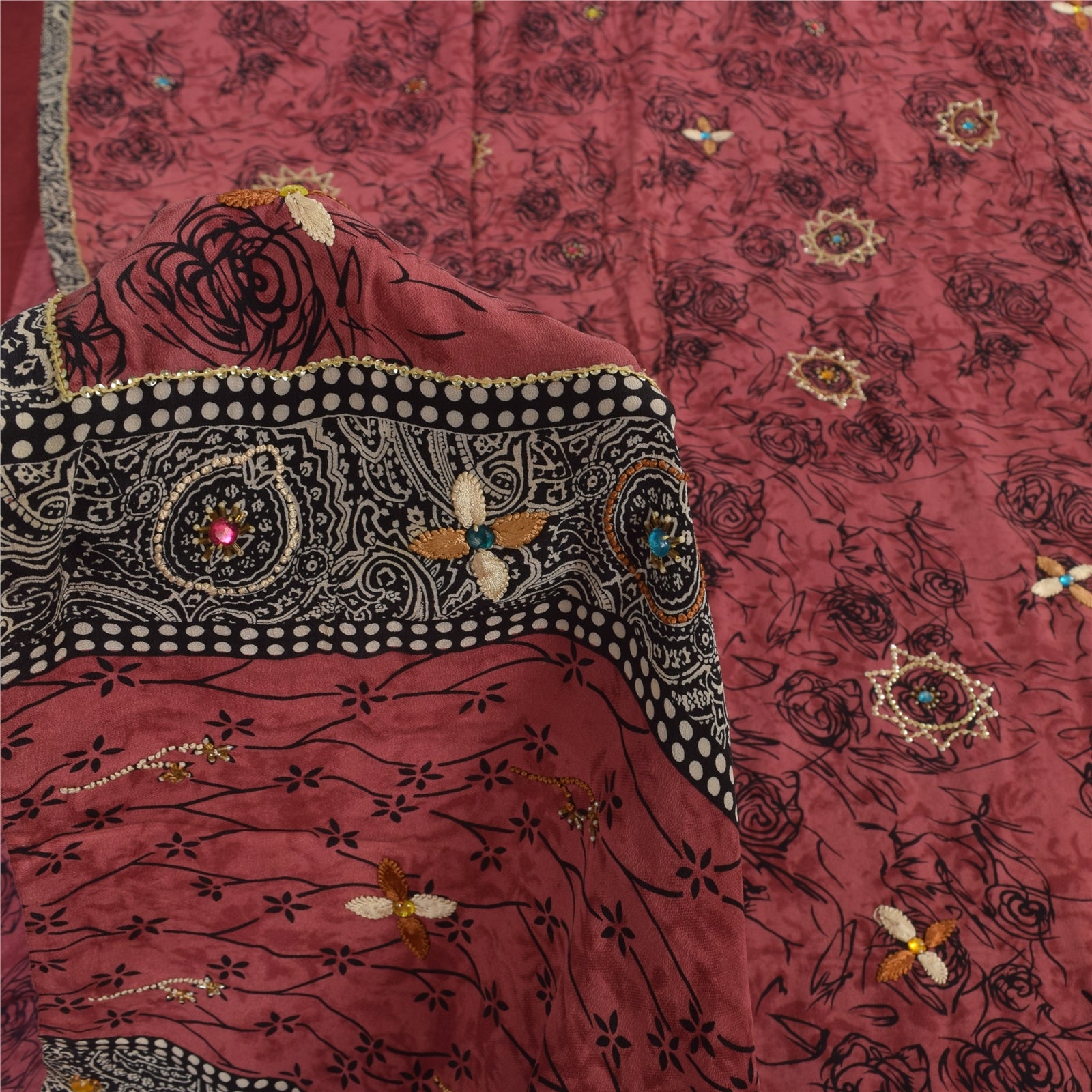 Sanskriti Vintage Sarees Blush-Pink Pure Crepe Silk Print Sari 5+yd Craft Fabric