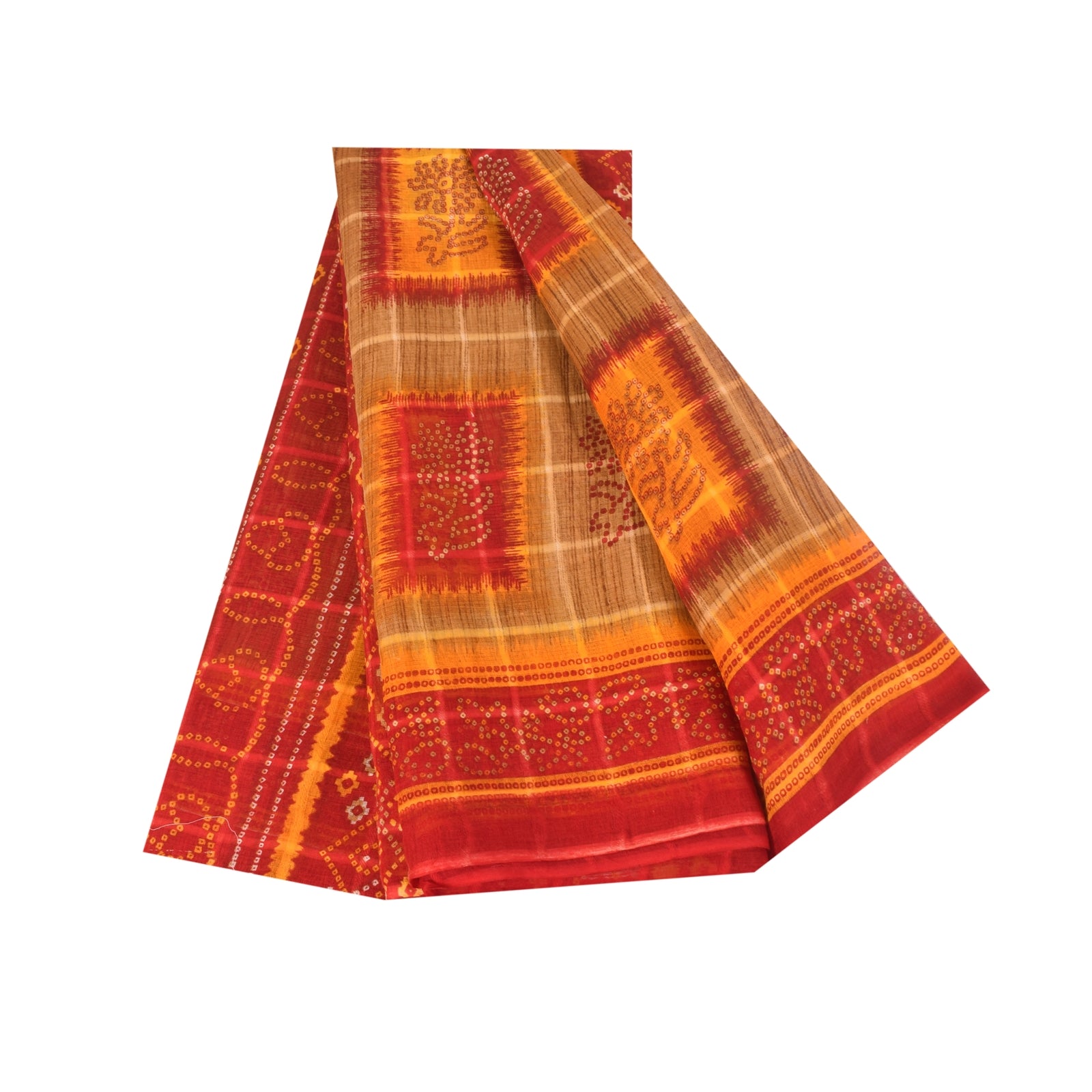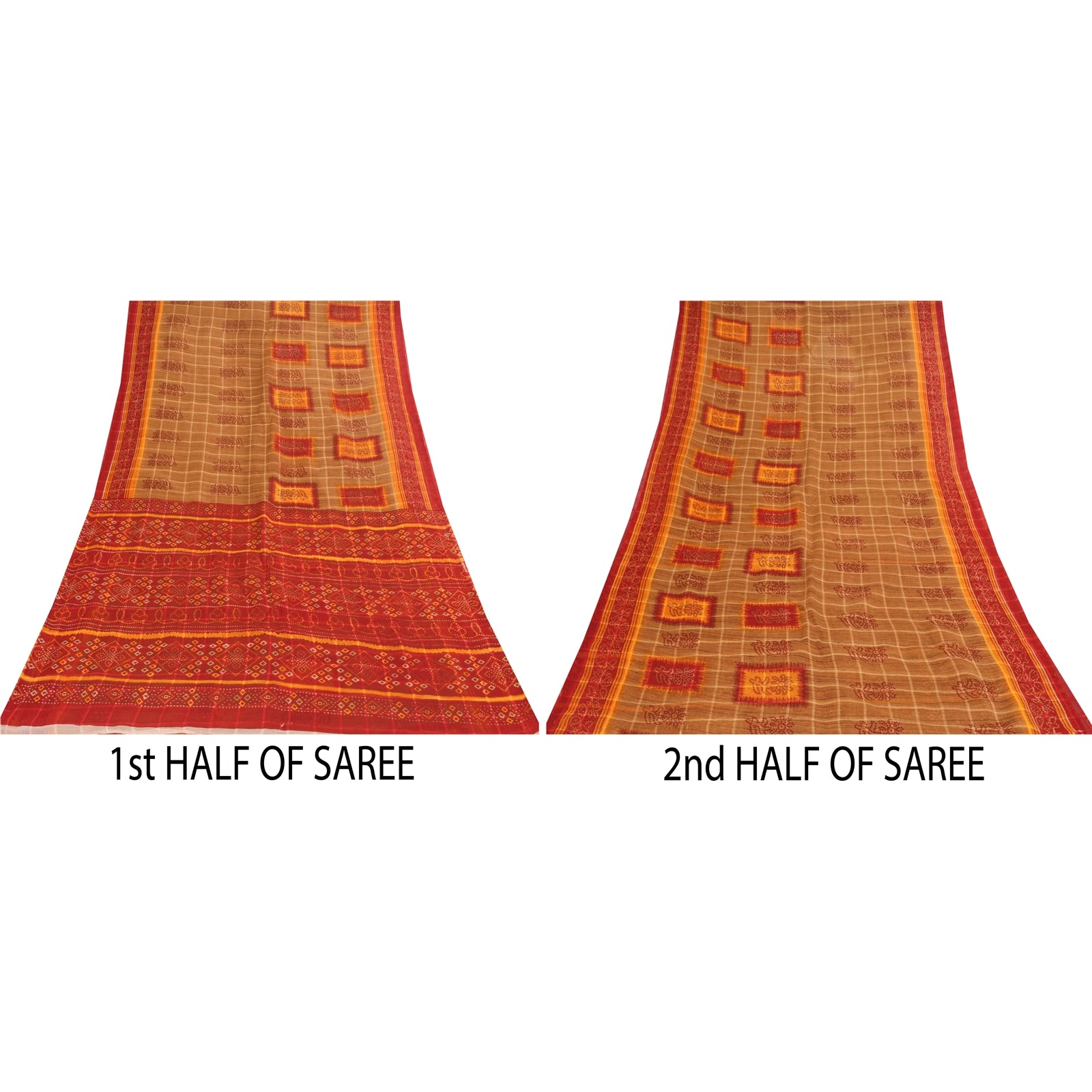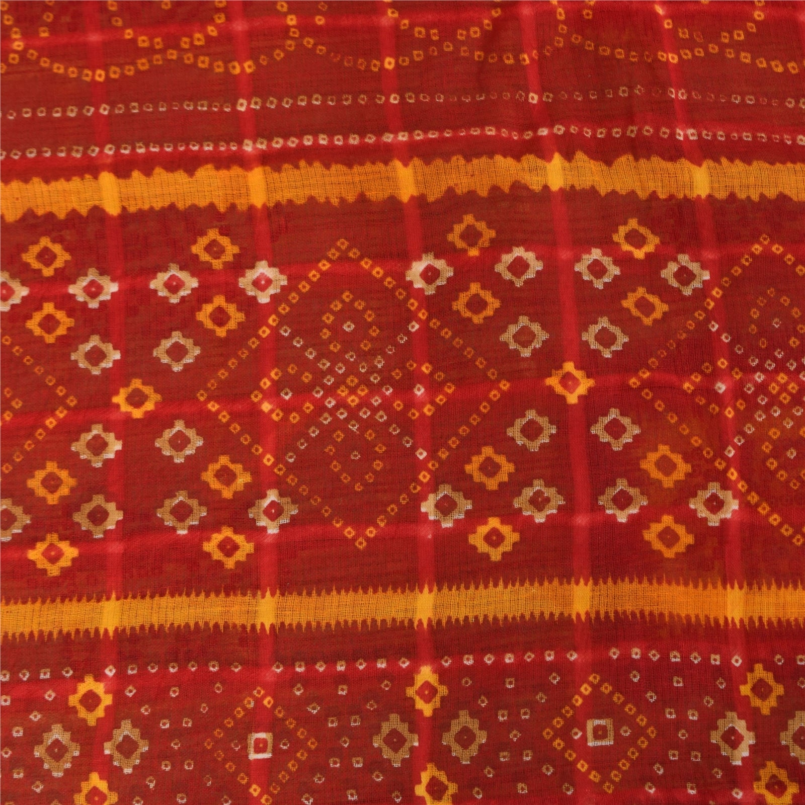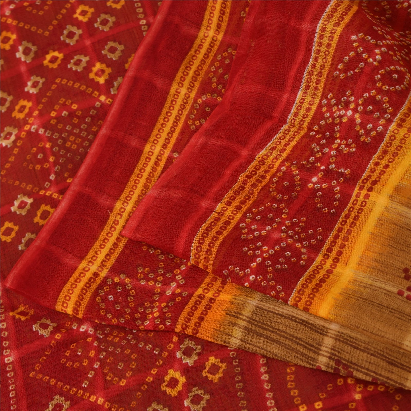 THE ITEM COLOR OR SHADE MAY BE DARKER OR LIGHTER THAN THE PICTURE. Attractive brown & red colored pure cotton bandhani printed sari. Pallu & Border has printed floral design. Similar design in center part of saree.. This unique vintage saree can be used for various crafting ideas even if you don't want to use it as a sari. Design a dress, use it as a as window dressing, upholstery, sarongs, throw, dress making and table linen much more. Let your creative juices flow and use this decorated Sustainable Fabric in multiple fashion. Shipping Note: 'International buyers please note: Import duties, taxes, and charges are not included in the item price or postage cost. These charges are the buyer's responsibility. Please check with your country's customs office to determine what these additional costs will be prior to bidding or buying. Buyer will pay custom duty/tax. It is calculated and charged differently by every country. As a seller I do not have any control over it. VAT or sales tax is calculated by the platform at the time of checkout. Customs charge is payable at the time of delivery.' PCS-6694