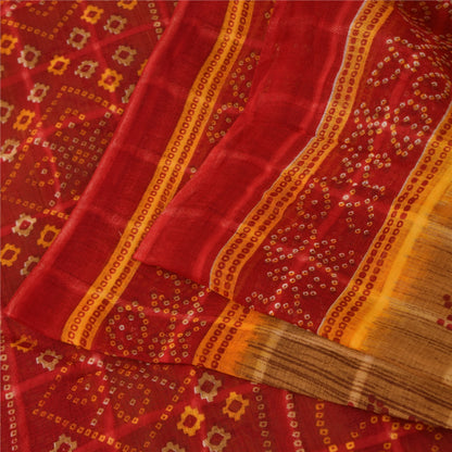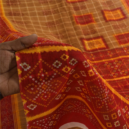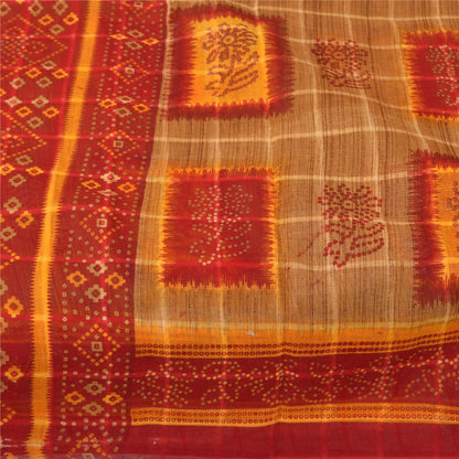 Sanskriti Vintage Sarees Brown Bandhani Pure Cotton Print Sari 5+yd Craft Sustainable Fabric
