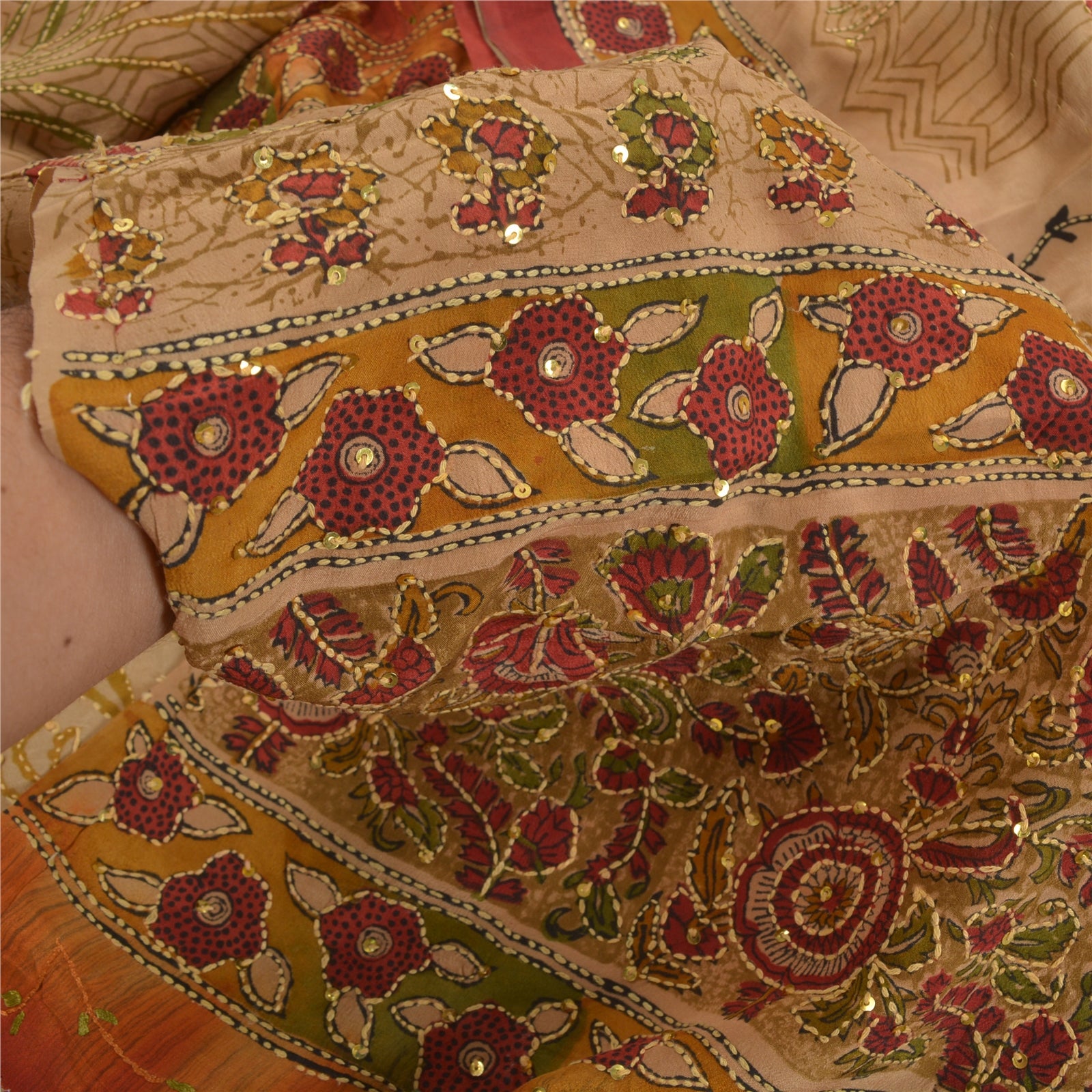 Beautiful shade of brown colored pure crepe silk hand embroidered kantha & printed saree. Pallu & Border has printed floral design with thread & sequins work. Similar work in center part of saree. What is special about this saree? Fabulous design is really enhancing the beauty of the saree.This unique vintage saree can be used for various crafting ideas even if you don't want to use it as a sari. Design a dress, use it as window,dressing, upholstery, sarongs, throw, dress making and table linen much more. Let your creative juices flow and use this decorated Sustainable Fabric in multiple fashion.