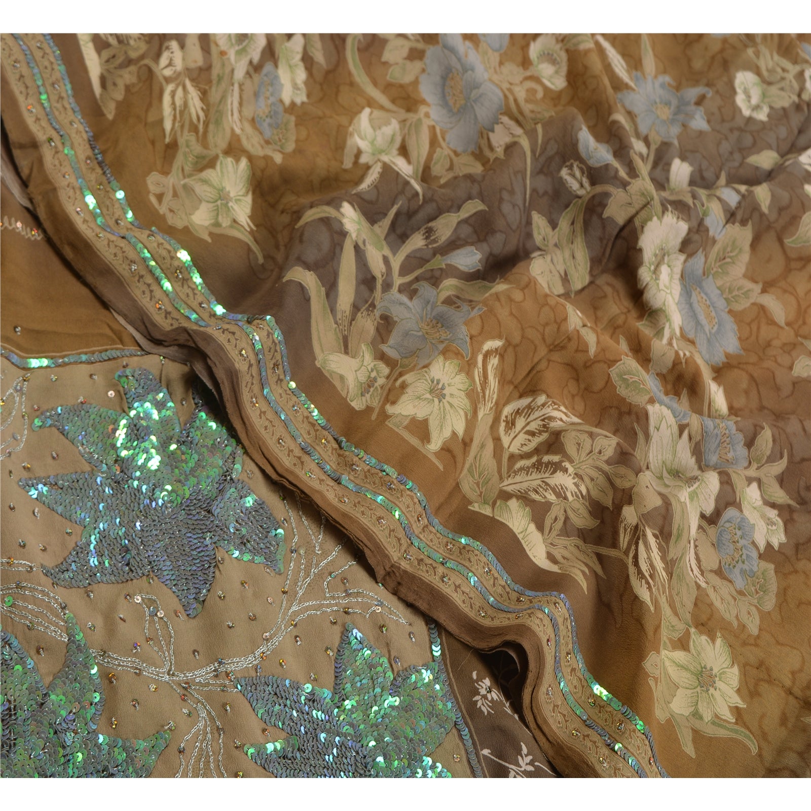 THE ITEM COLOR OR SHADE MAY BE DARKER OR LIGHTER THAN THE PICTURE.' Beautiful shades of brown colored pure crepe silk hand embroidered & printed saree. Pallu & border has printed floral design with golden zari, sequins work. Similar work in center part of saree. What is special about this saree? Fabulous design is really enhancing the beauty of the saree. This unique vintage saree can be used for various crafting ideas even if you don't want to use it as a sari. Design a dress, use it as window,dressing, upholstery, sarongs, throw, dress making and table linen much more. Let your creative juices flow and use this decorated Sustainable Fabric in multiple fashion. International buyers please note: Import duties, taxes, and charges are not included in the item price or postage cost. These charges are the buyer's responsibility. Please check with your country's customs office to determine what these additional costs will be prior to bidding or buying.Buyer will pay custom duty/tax. It is calculated and charged differently by every country. As a seller I do not have any control over it.VAT or sales tax is calculated by the platform at the time of checkout. Customs charge is payable at the time of delivery.