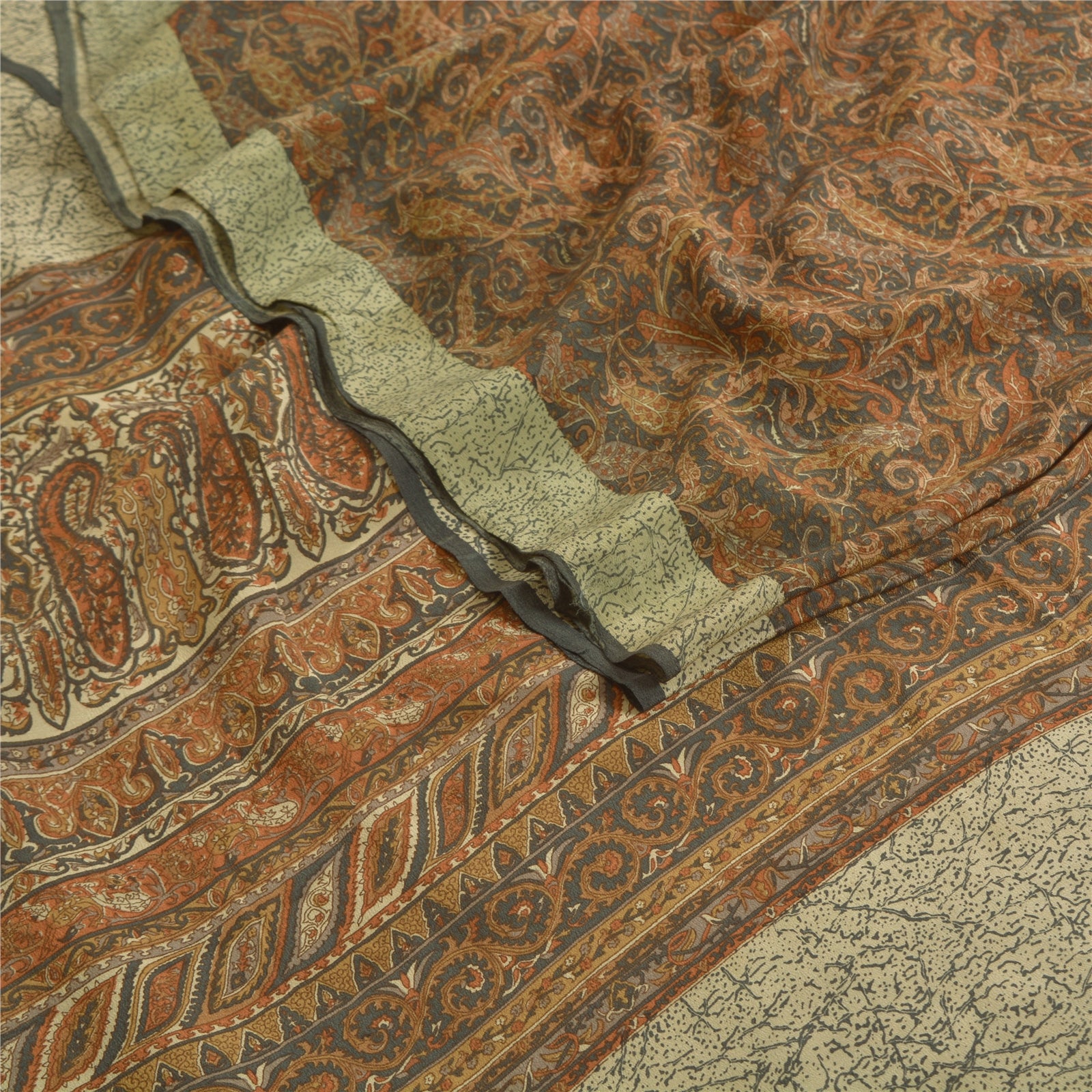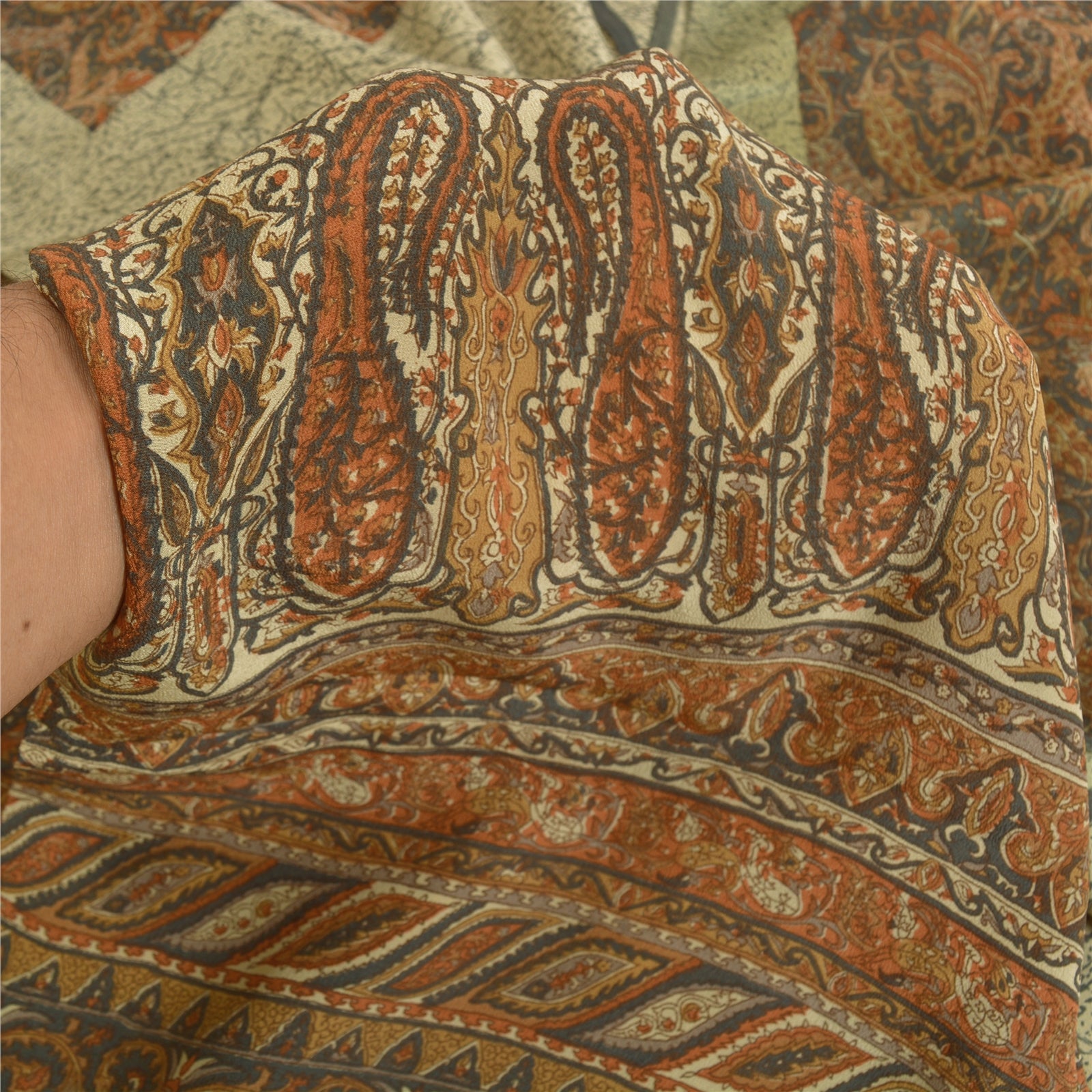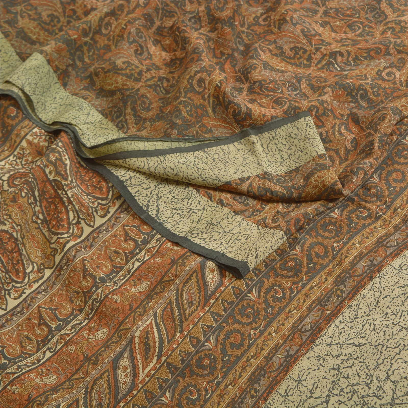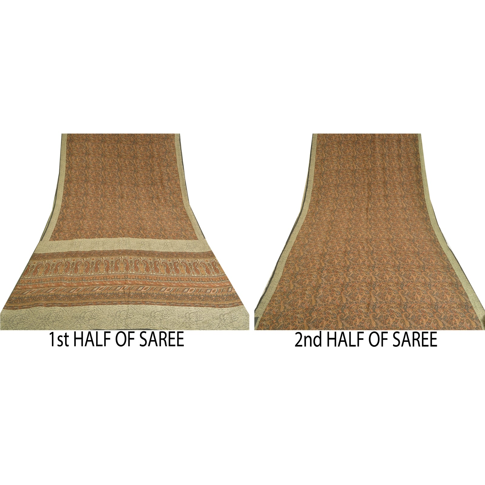 Sanskriti Vintage Sarees Brown Indian Pure Crepe Silk Printed Sari Craft Sustainable Fabric