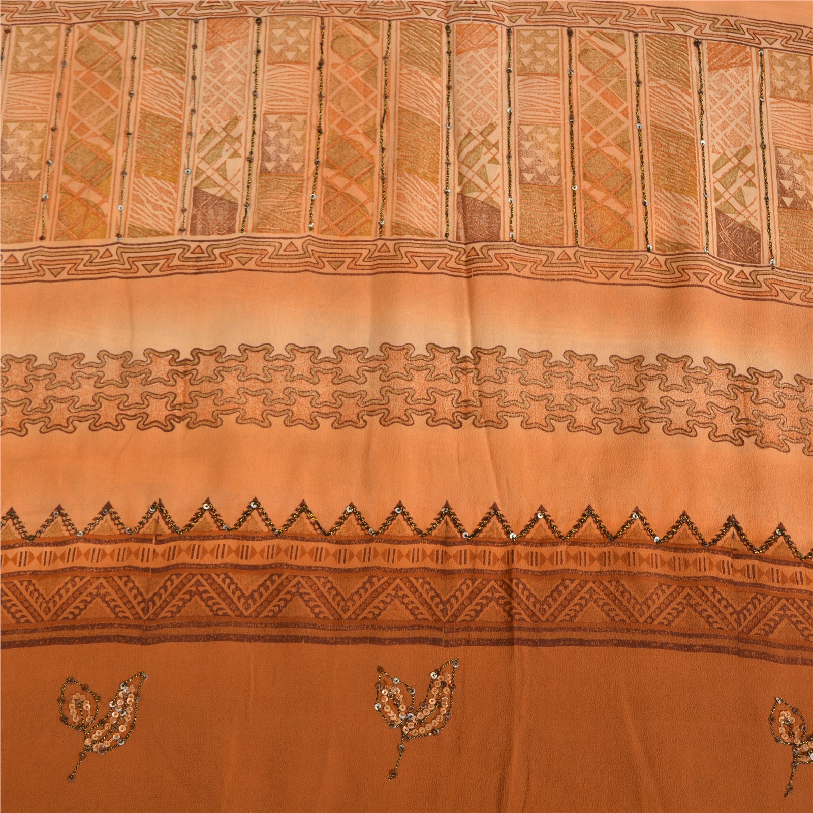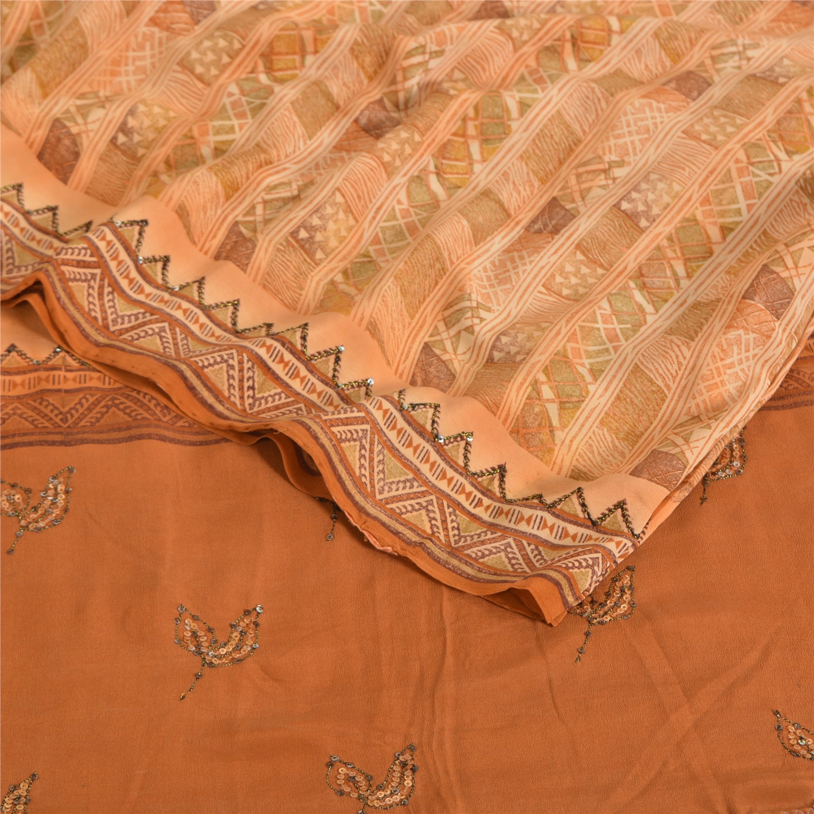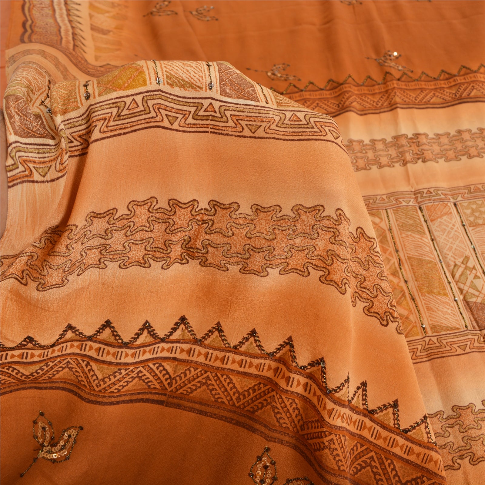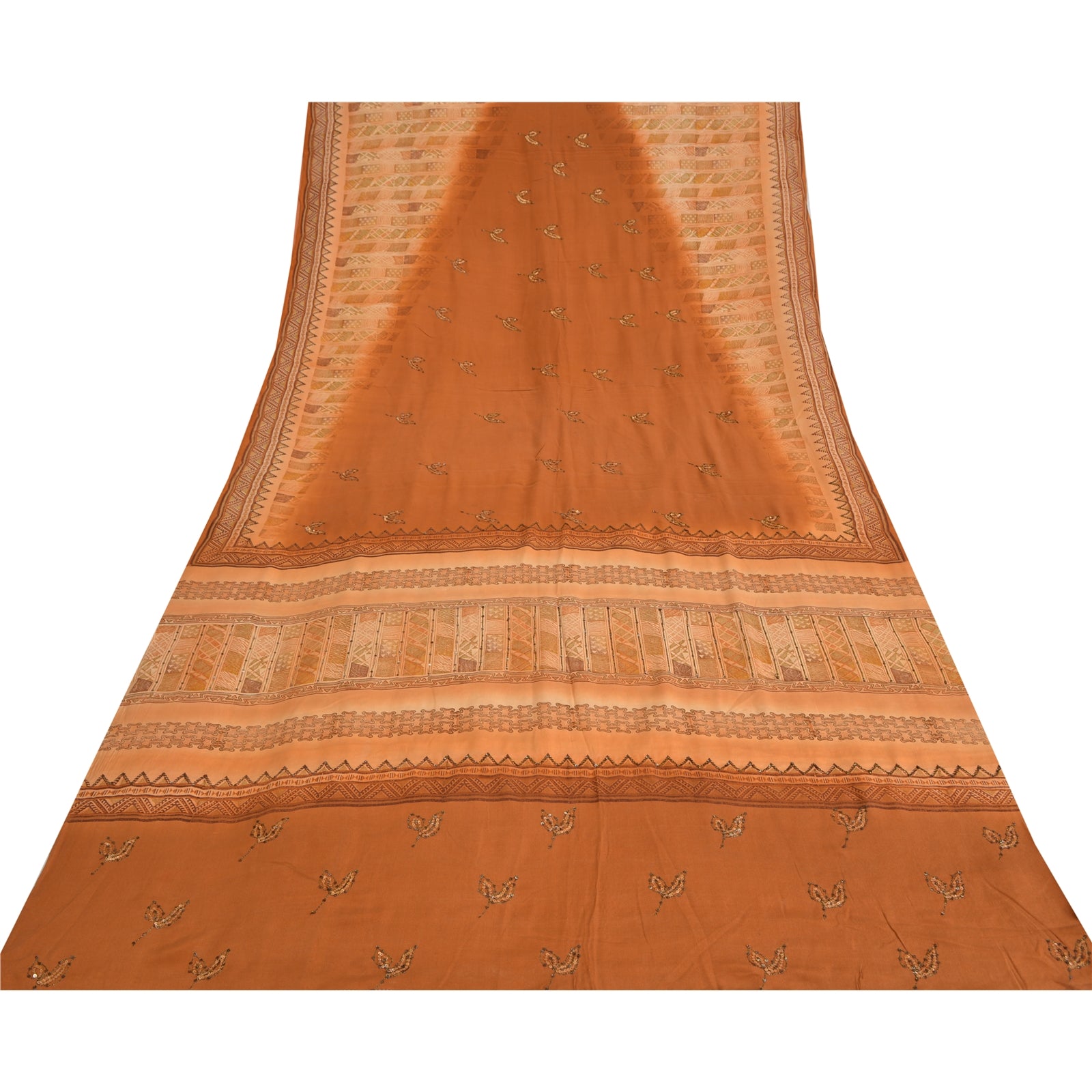 THE ITEM COLOR OR SHADE MAY BE DARKER OR LIGHTER THAN THE PICTURE.' • Beautiful brown colored printed & embroidered pure crepe silk saree . • Pallu & Border has printed floral design with thread & sequins work. • Similar work in center part of sari . This unique vintage saree can be used for various crafting ideas even if you don't want to use it as a sari. Design a dress, use it as a as window dressing, upholstery, sarongs, throw, dress making and table linen much more. Let your creative juices flow and use this decorated Sustainable Fabric in multiple fashion. International buyers please note: Import duties, taxes, and charges are not included in the item price or postage cost. These charges are the buyer's responsibility. Please check with your country's customs office to determine what these additional costs will be prior to bidding or buying.Buyer will pay custom duty/tax. It is calculated and charged differently by every country. As a seller I do not have any control over it. VAT or sales tax is calculated by the platform at the time of checkout. Customs charge is payable at the time of delivery.