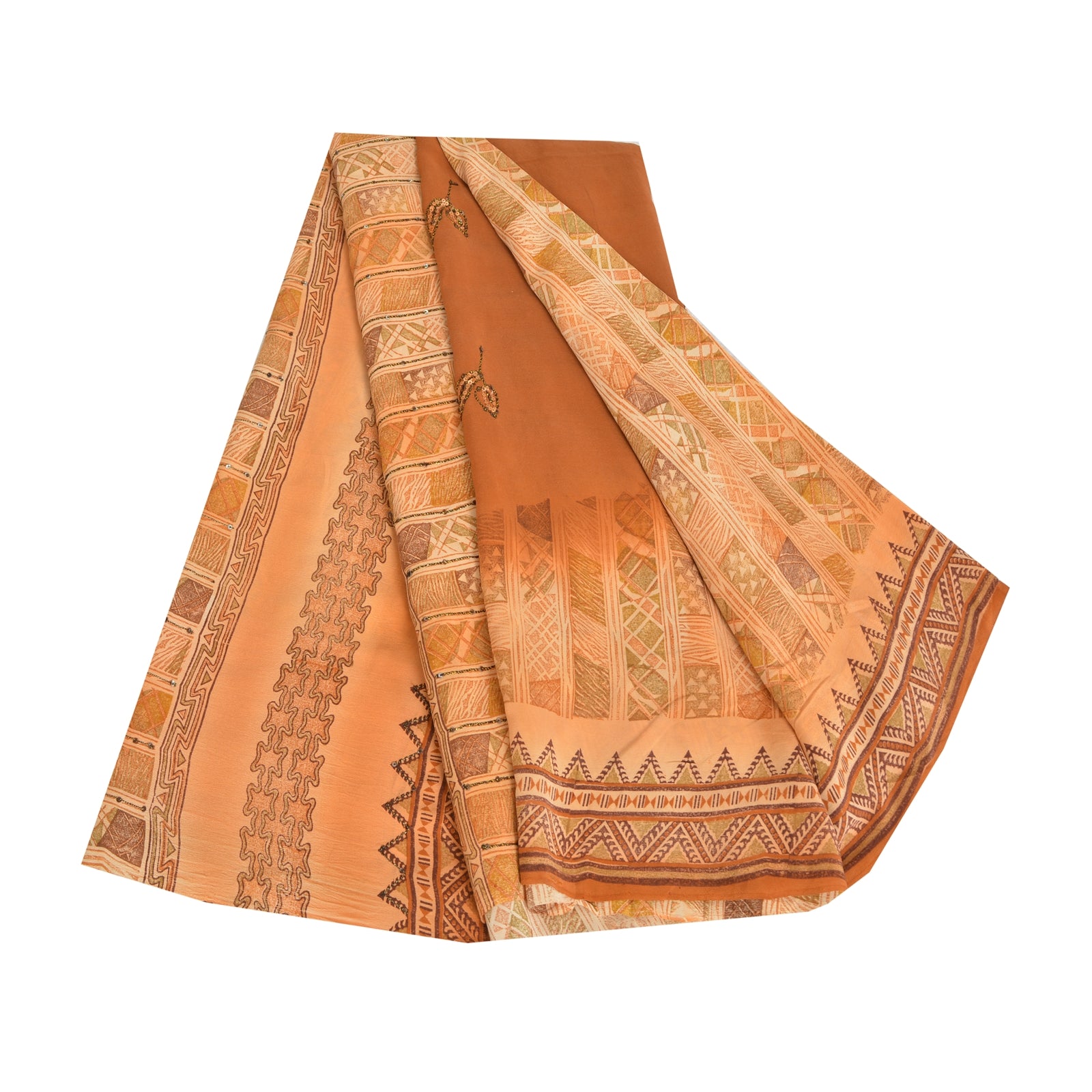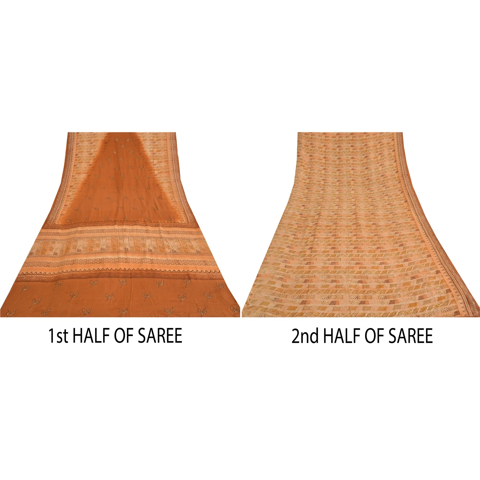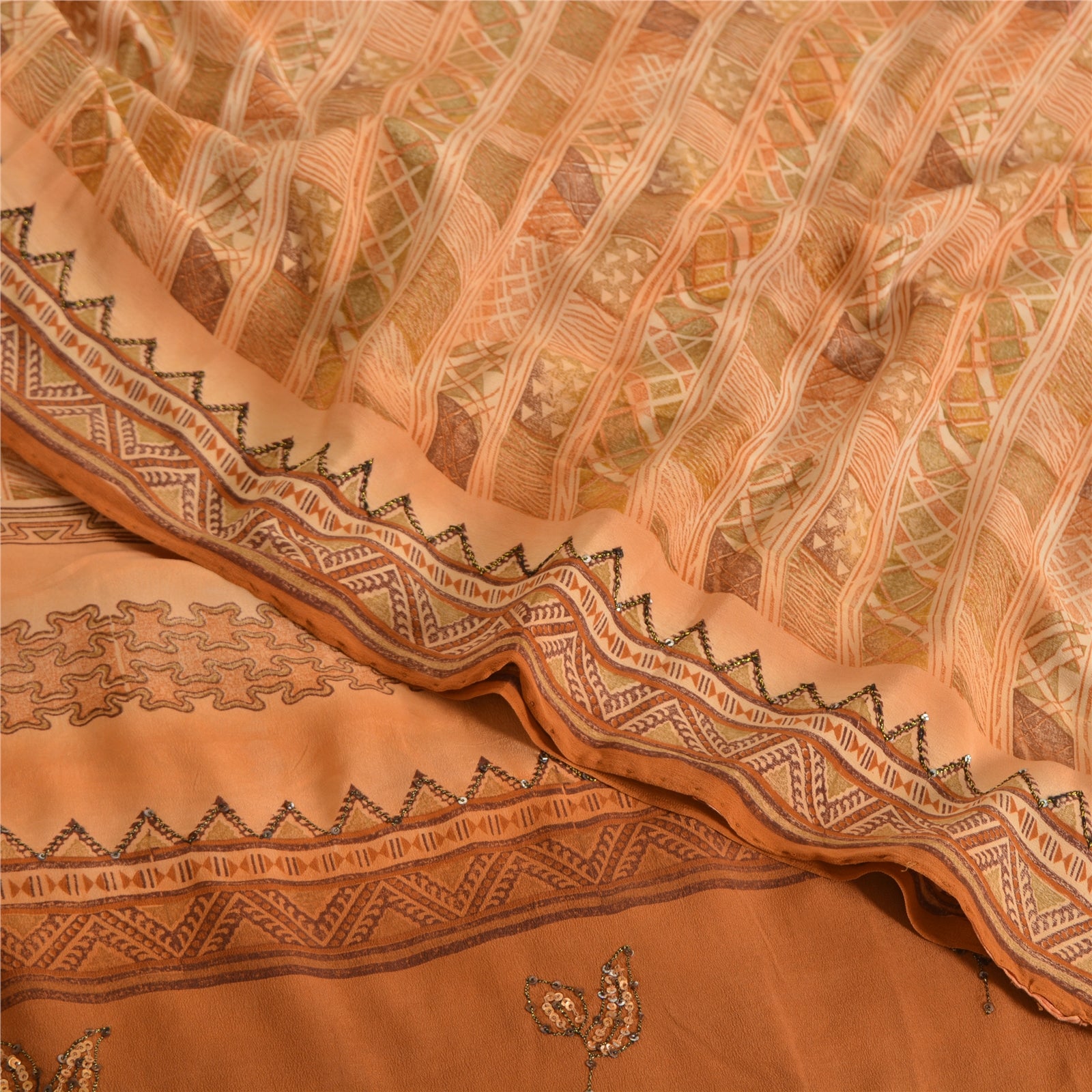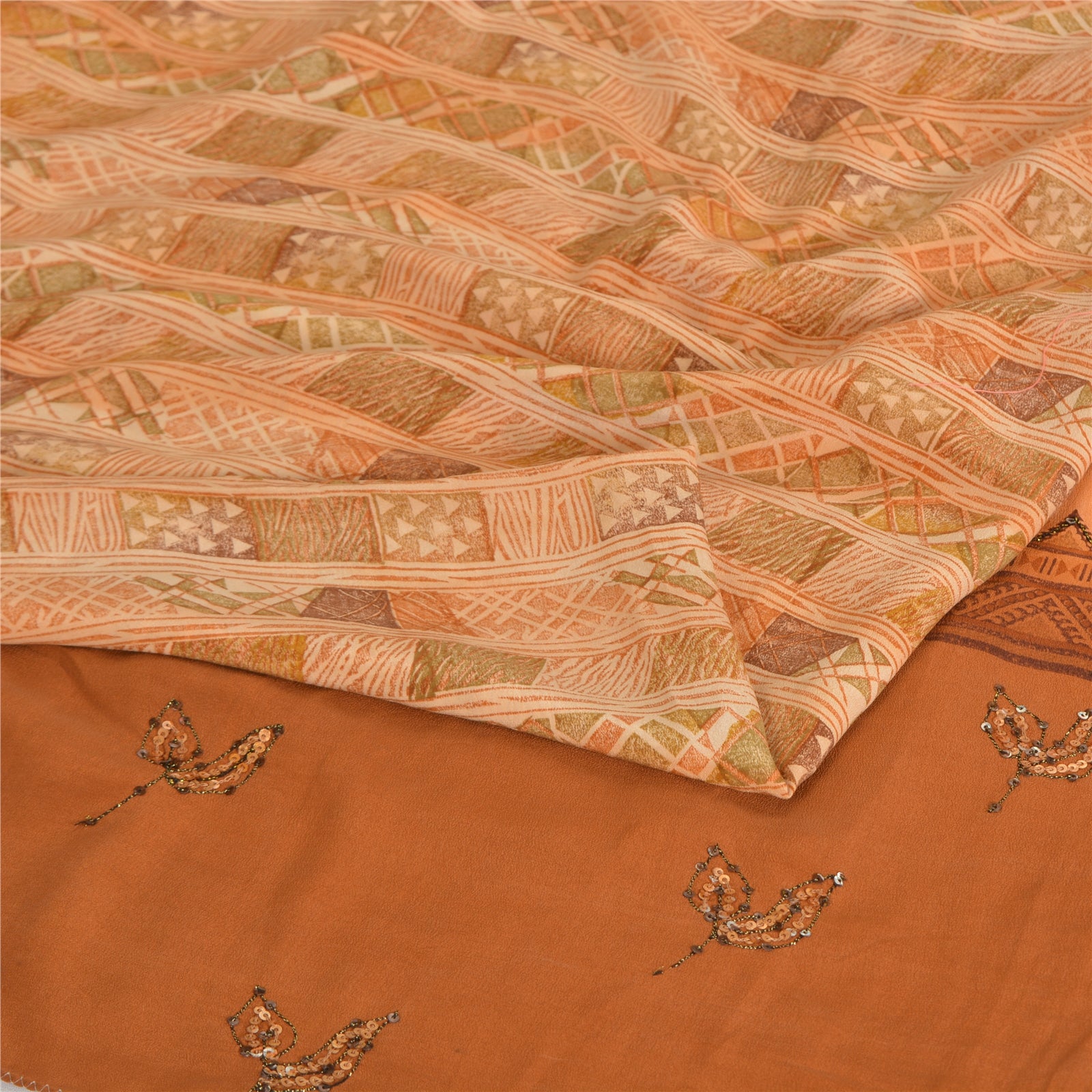 THE ITEM COLOR OR SHADE MAY BE DARKER OR LIGHTER THAN THE PICTURE.' • Beautiful brown colored printed & embroidered pure crepe silk saree . • Pallu & Border has printed floral design with thread & sequins work. • Similar work in center part of sari . This unique vintage saree can be used for various crafting ideas even if you don't want to use it as a sari. Design a dress, use it as a as window dressing, upholstery, sarongs, throw, dress making and table linen much more. Let your creative juices flow and use this decorated Sustainable Fabric in multiple fashion. International buyers please note: Import duties, taxes, and charges are not included in the item price or postage cost. These charges are the buyer's responsibility. Please check with your country's customs office to determine what these additional costs will be prior to bidding or buying.Buyer will pay custom duty/tax. It is calculated and charged differently by every country. As a seller I do not have any control over it. VAT or sales tax is calculated by the platform at the time of checkout. Customs charge is payable at the time of delivery.