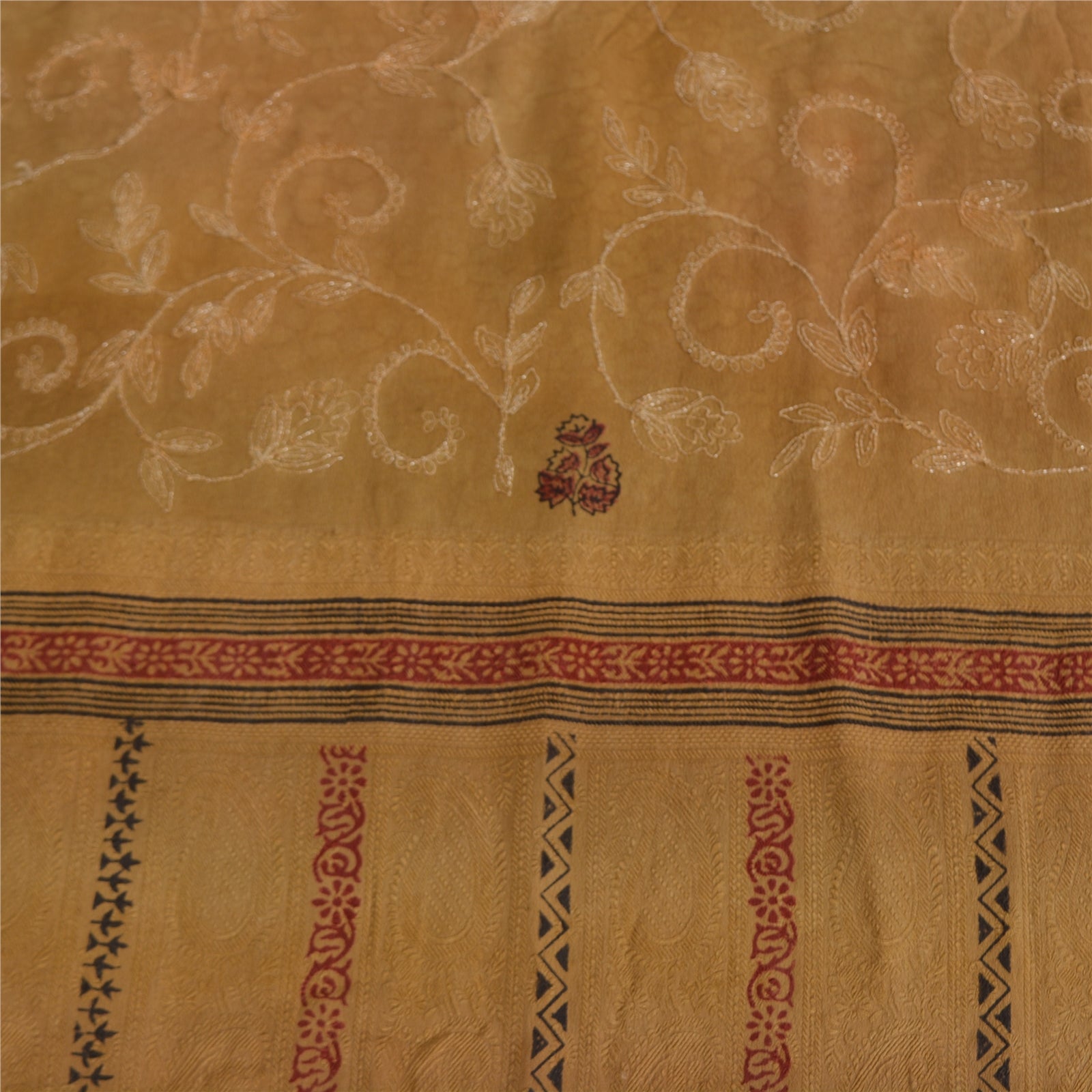 Sanskriti Vintage Sarees Brown Pure Crepe Silk Embroidered Printed Sari Sustainable Fabric