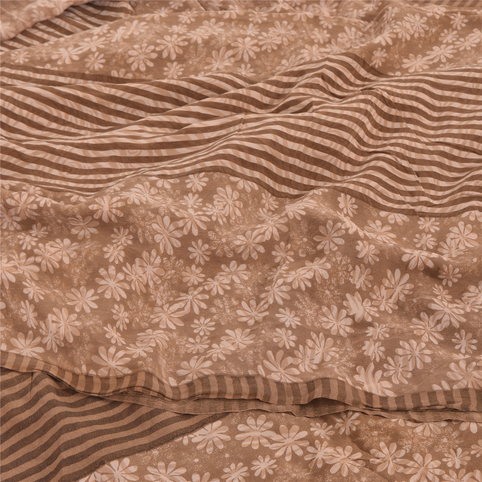 Sanskriti Vintage Sarees Brown Pure Crepe Silk Printed Sari 5yd Craft Sustainable Fabric