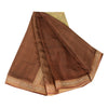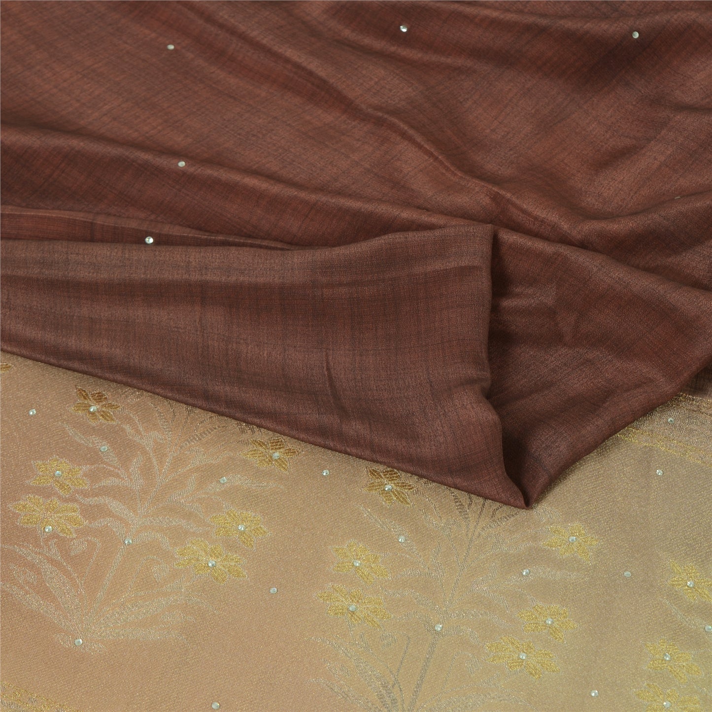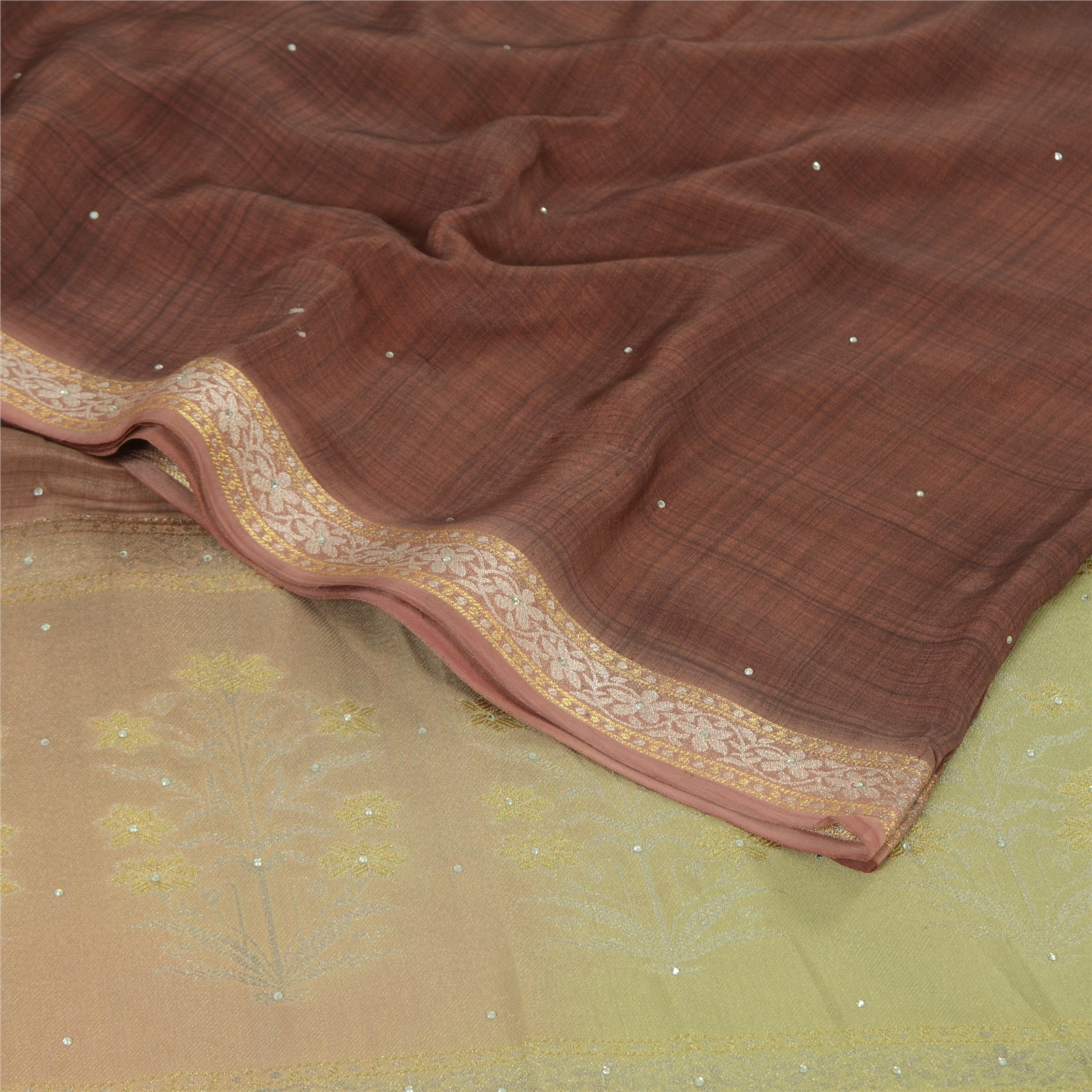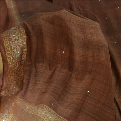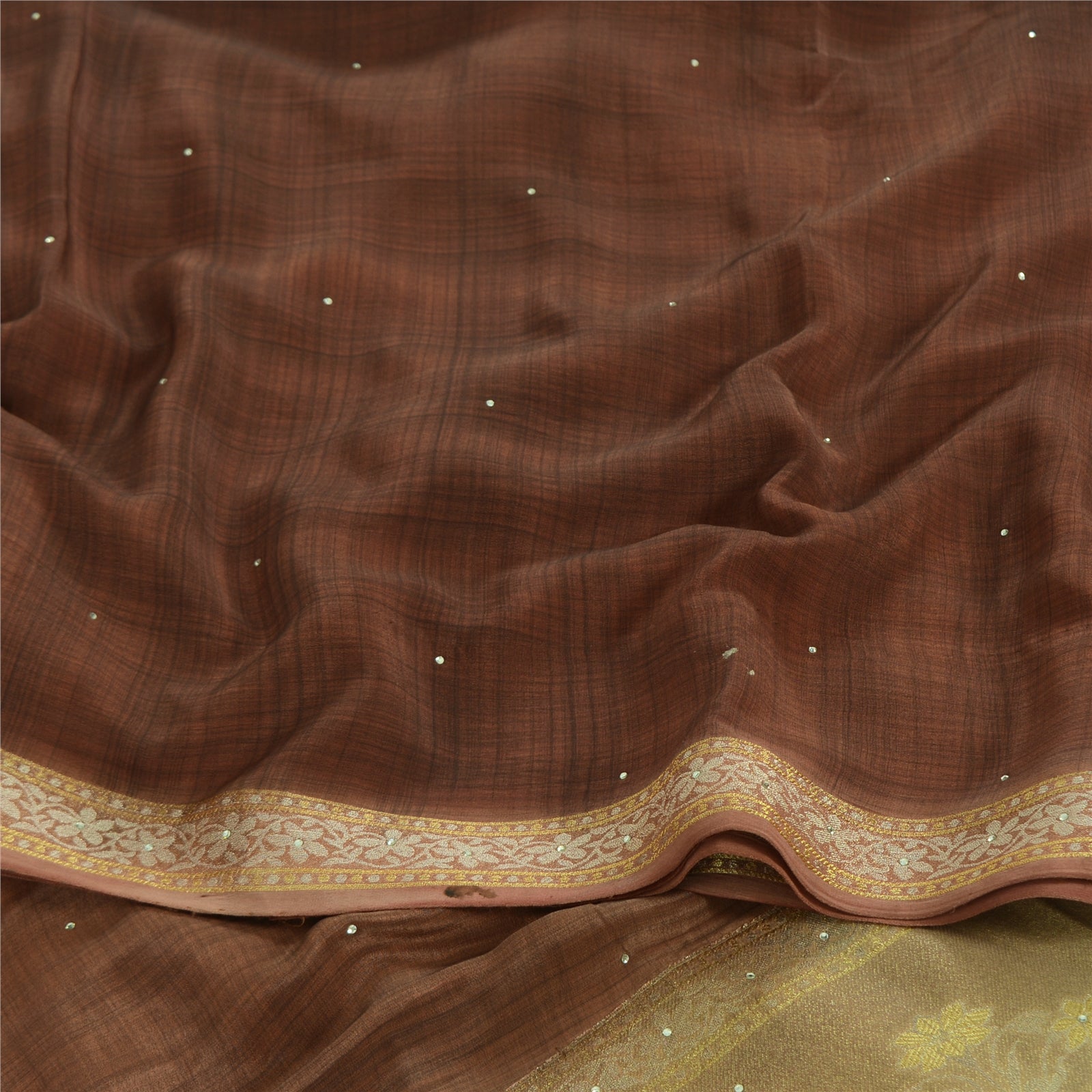 Sanskriti Vintage Sarees Brown Sequins Woven printed Pure Crepe Sari 5yd Sustainable Fabric