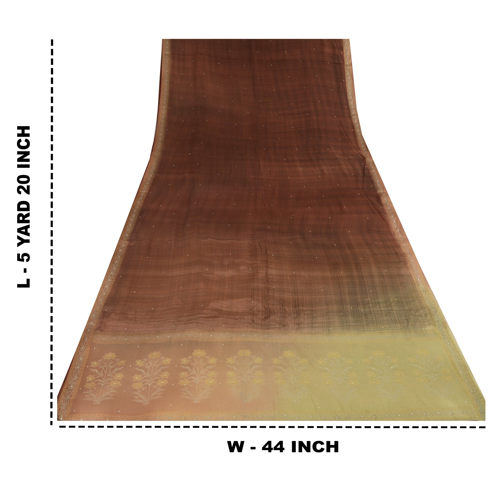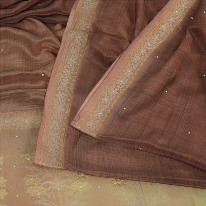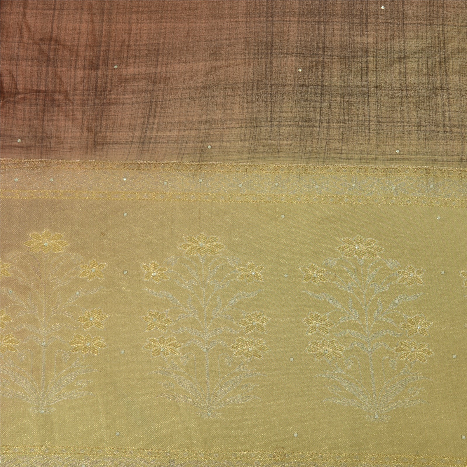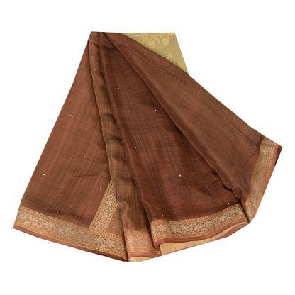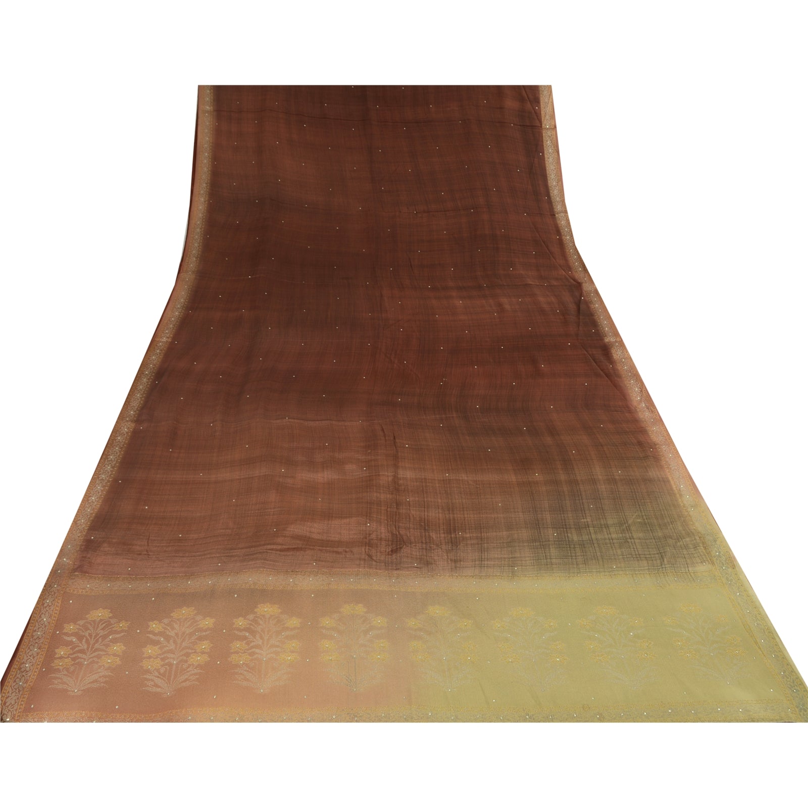 Sanskriti Vintage Sarees Brown Sequins Woven printed Pure Crepe Sari 5yd Sustainable Fabric