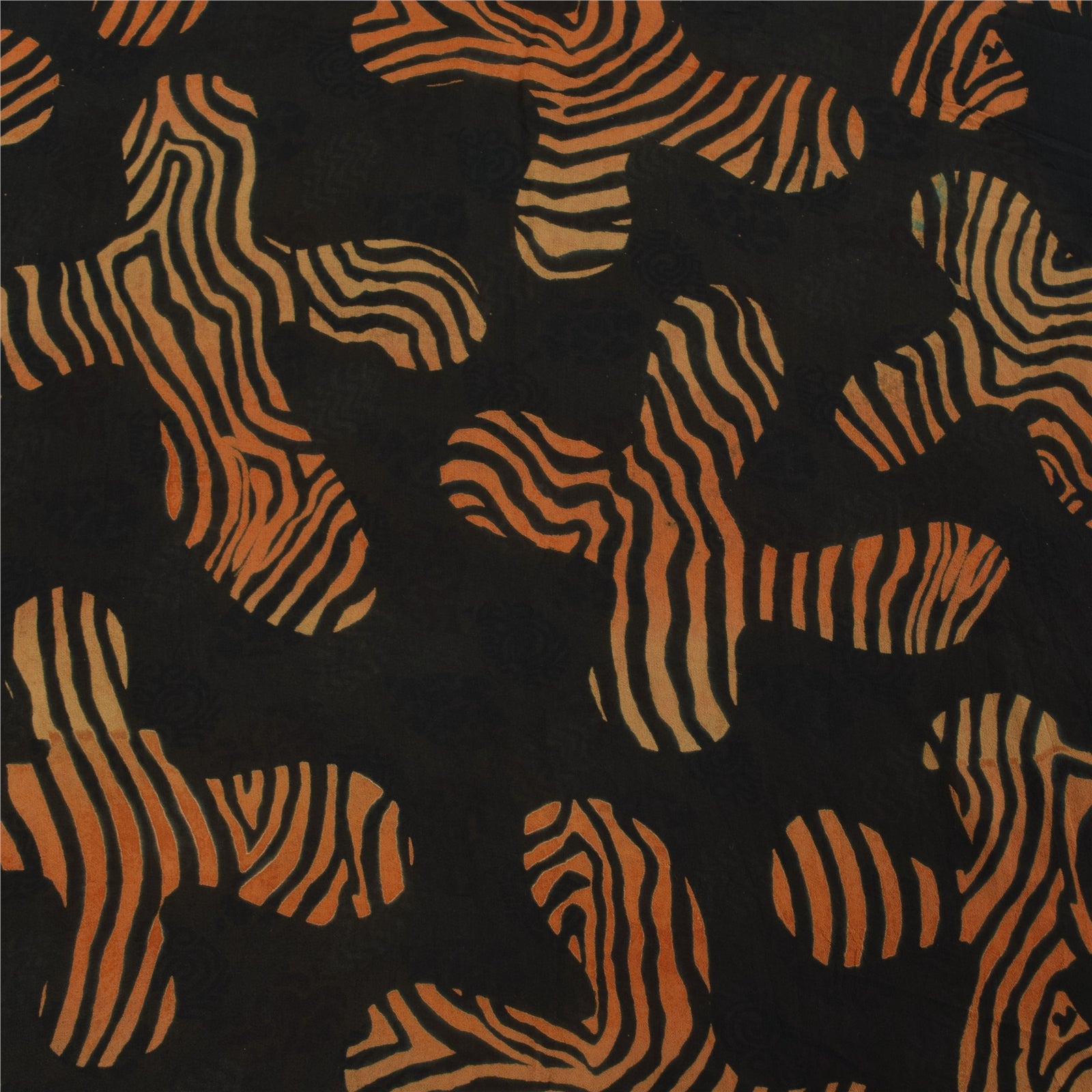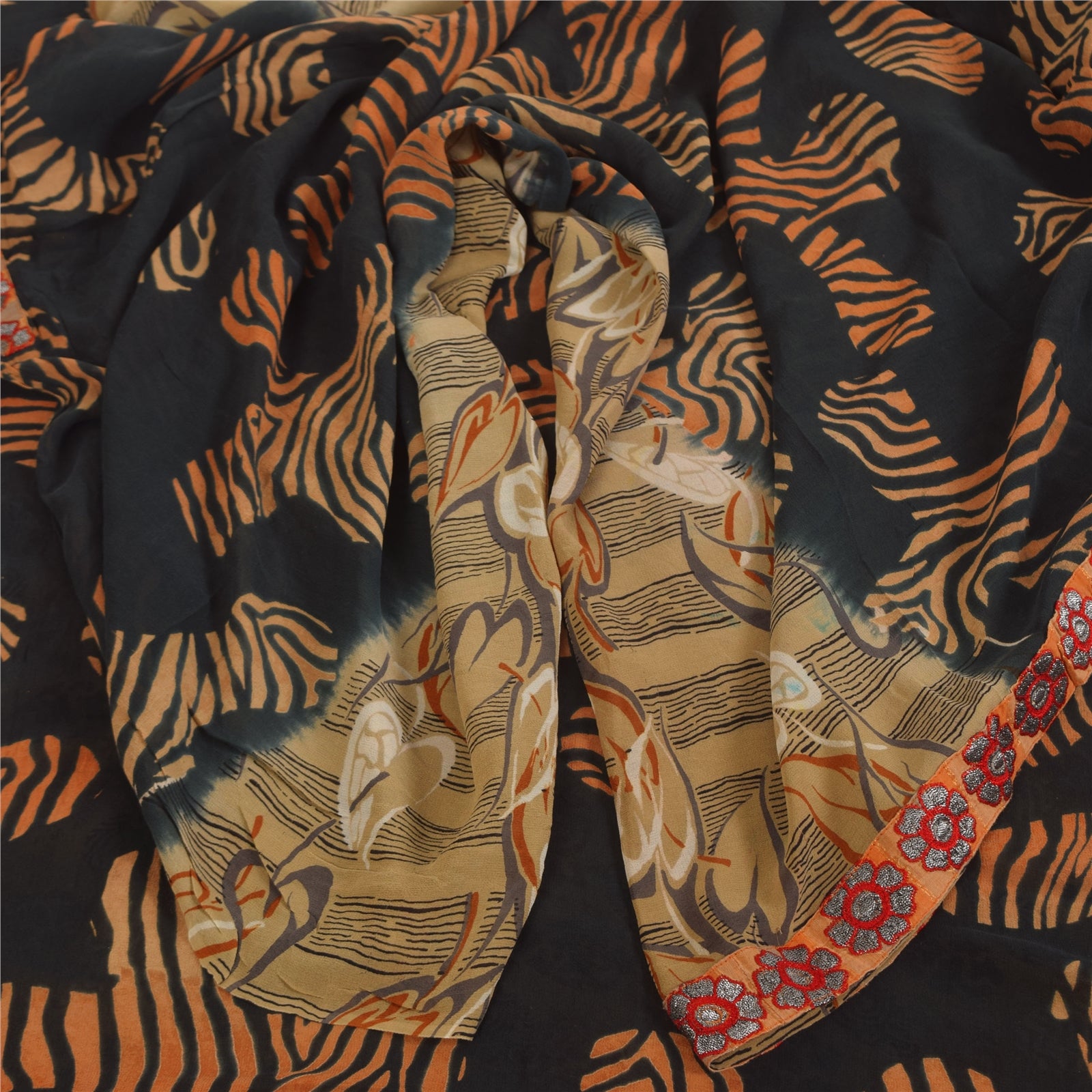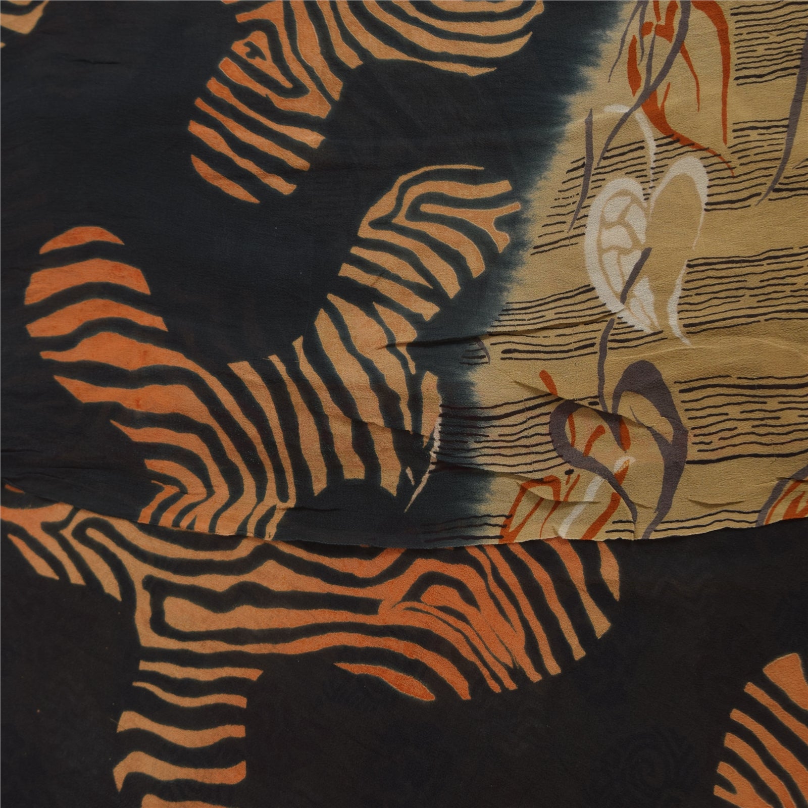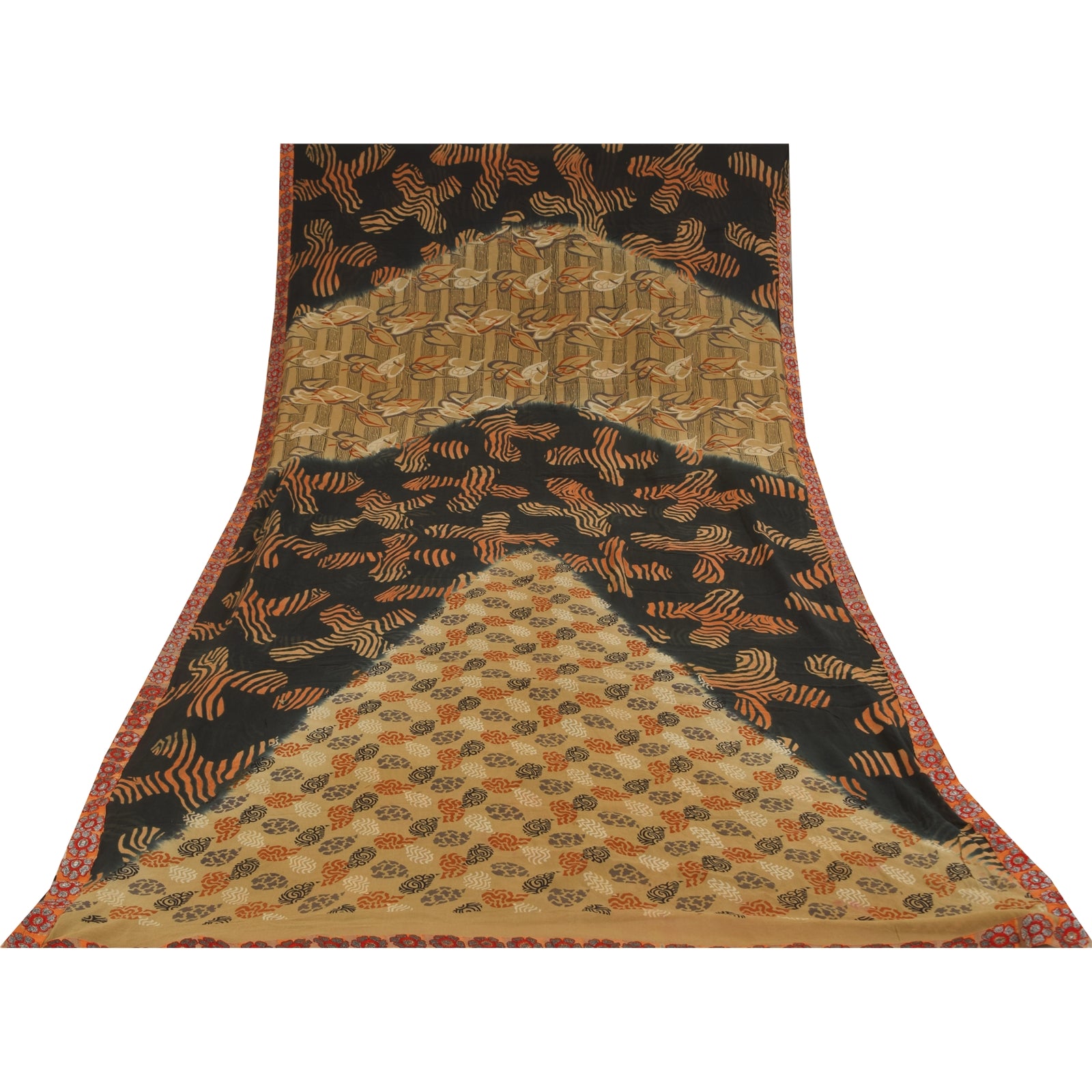 Sanskriti Vintage Sarees Cream & Black Pure Georgette Printed Sari 5+yd Sustainable Fabric
