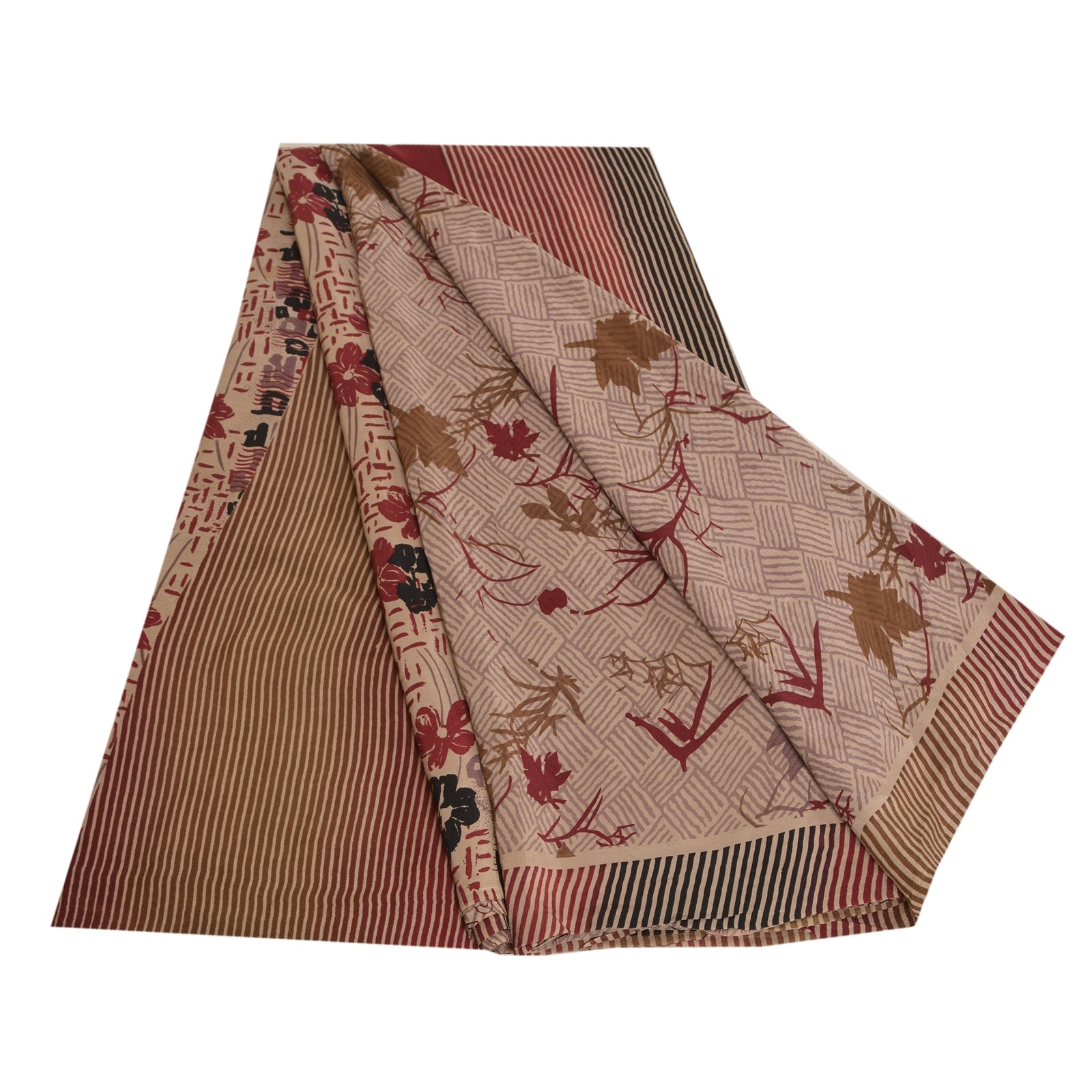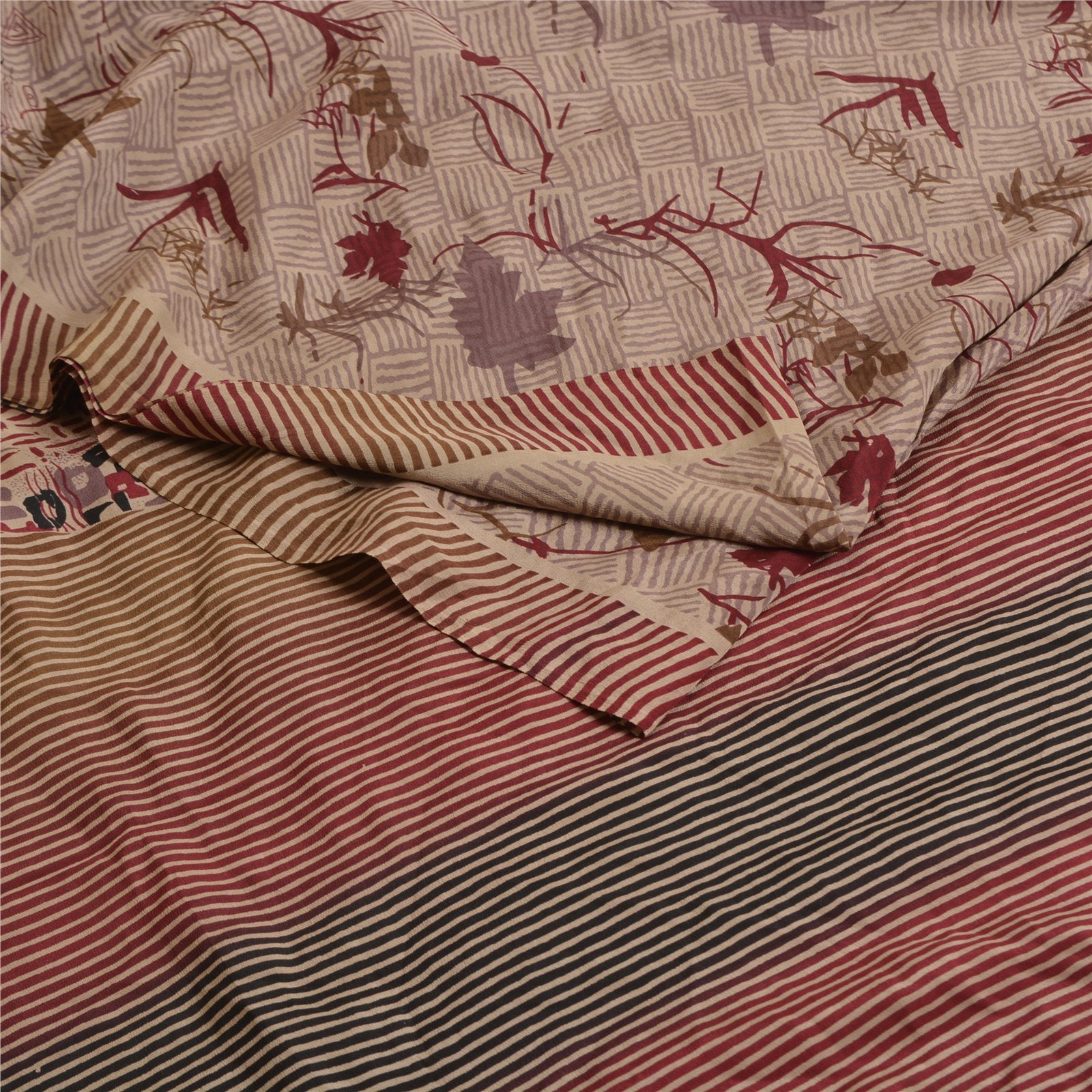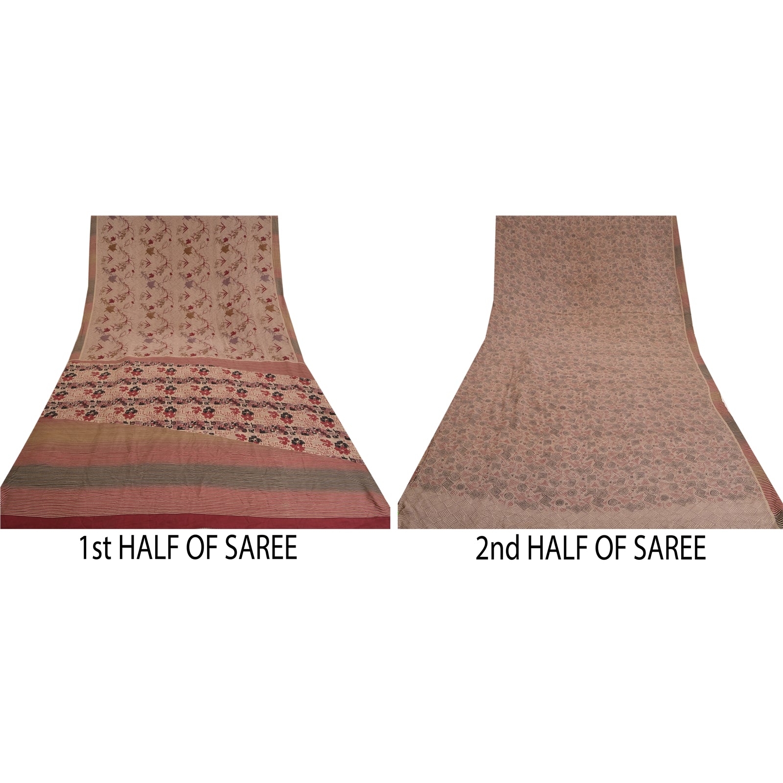 Sanskriti Vintage Sarees Cream Pure Crepe Silk Printed Sari Floral Craft Sustainable Fabric