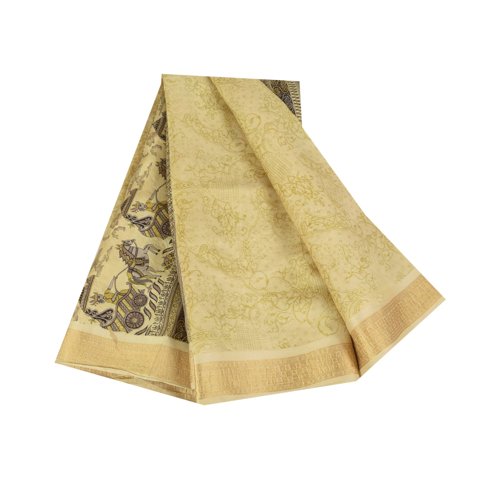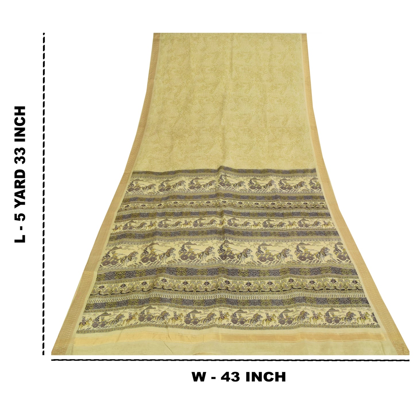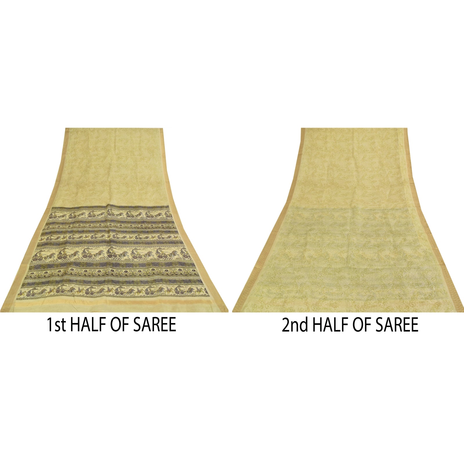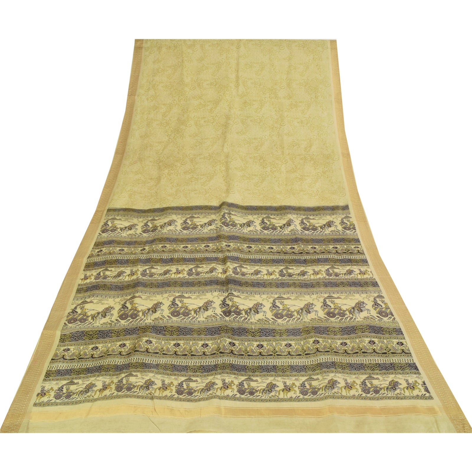 THE ITEM COLOR OR SHADE MAY BE DARKER OR LIGHTER THAN THE PICTURE.' • Beautiful cream colored printed pure silk saree . • Pallu & Border has printed floral, peacock, horse cart design & woven work. • Floral design in center part of sari . This unique vintage saree can be used for various crafting ideas even if you don't want to use it as a sari. Design a dress, use it as a as window dressing, upholstery, sarongs, throw, dress making and table linen much more. Let your creative juices flow and use this decorated fabric in multiple fashion. International buyers please note: Import duties, taxes, and charges are not included in the item price or postage cost. These charges are the buyer's responsibility. Please check with your country's customs office to determine what these additional costs will be prior to bidding or buying.Buyer will pay custom duty/tax. It is calculated and charged differently by every country. As a seller I do not have any control over it. VAT or sales tax is calculated by the platform at the time of checkout. Customs charge is payable at the time of delivery. PR-69993
