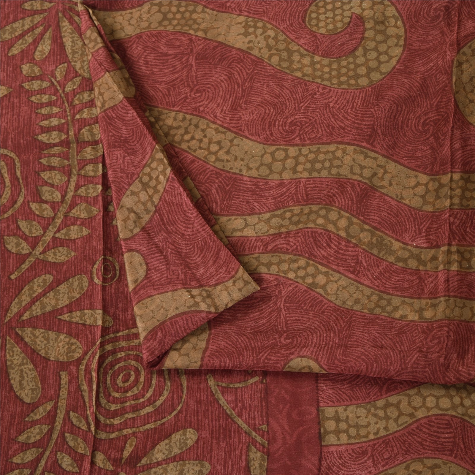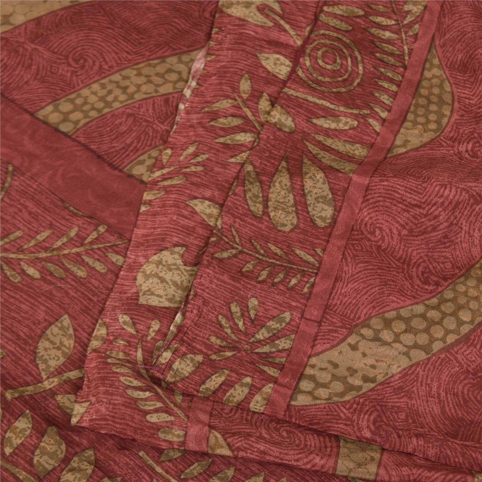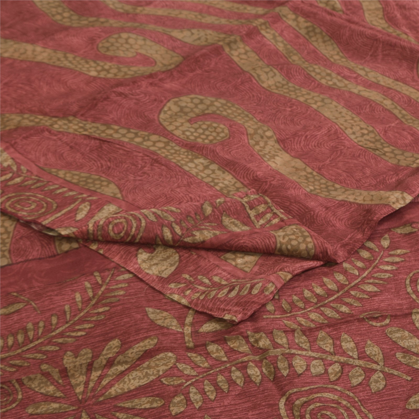 Sanskriti Vintage Sarees Dusty Pink Pure Crepe Silk Print Sari 5+yd Craft Sustainable Fabric
