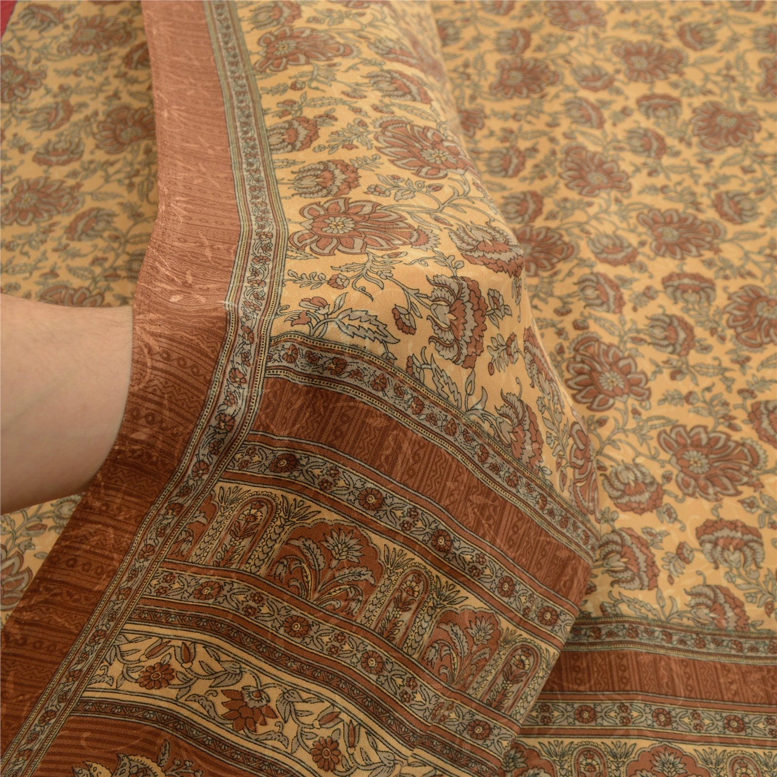 Sanskriti Vintage Sarees From India Brown Moss Crepe Printed Sari Craft Fabric