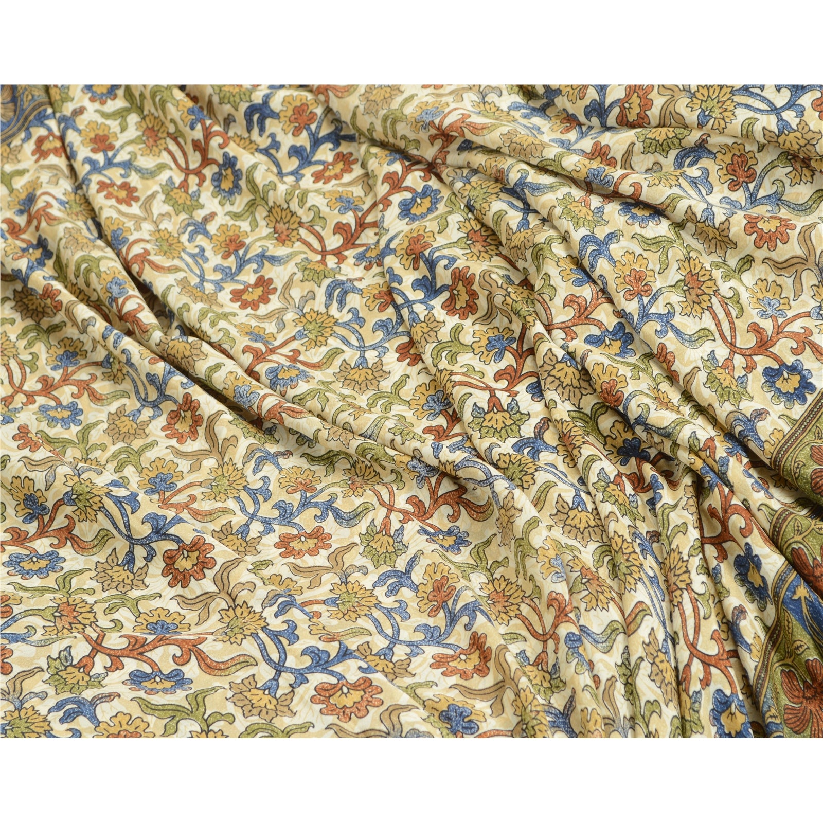 THE ITEM COLOR OR SHADE MAY BE DARKER OR LIGHTER THAN THE PICTURE.' Gorgeous cream colored moss crepe printed saree. Pallu & Border has printed floral design. Similar design in center part of saree. Moss Crepe-This sari is polyester but it feels like crepe silk. What is special about this saree?Very soft & smooth moss crepe fabric with attractive colorful print pattern is beauty of the saree.This unique vintage saree can be used for various crafting ideas even if you don't want to use it as a sari. Design a dress, use it as a throw, as window dressing, upholstery, sarongs, table linen and much more. Let your creative juices flow and use this decorated fabric in multiple fashion. Internationalbuyers please note:Import duties, taxes, and charges are not included in the item price or postage cost. These charges are the buyer's responsibility. Please check with your country's customs office to determine what these additional costs will be prior to bidding or buying.Buyer will pay custom duty/tax. It is calculated and charged differently by every country. As a seller I do not have any control over it.VAT or sales tax is calculated by the platform at the time of checkout. Customs charge is payable at the time of delivery.