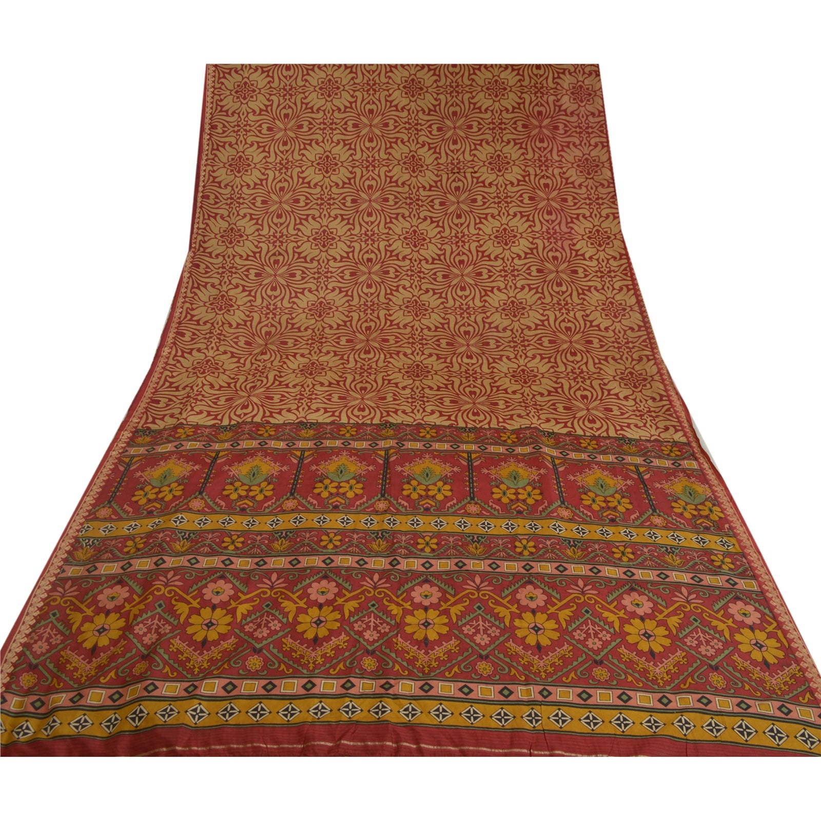 Sanskriti Vintage Sarees From India Red Printed Pure Silk Sari Soft Craft Sustainable Fabric