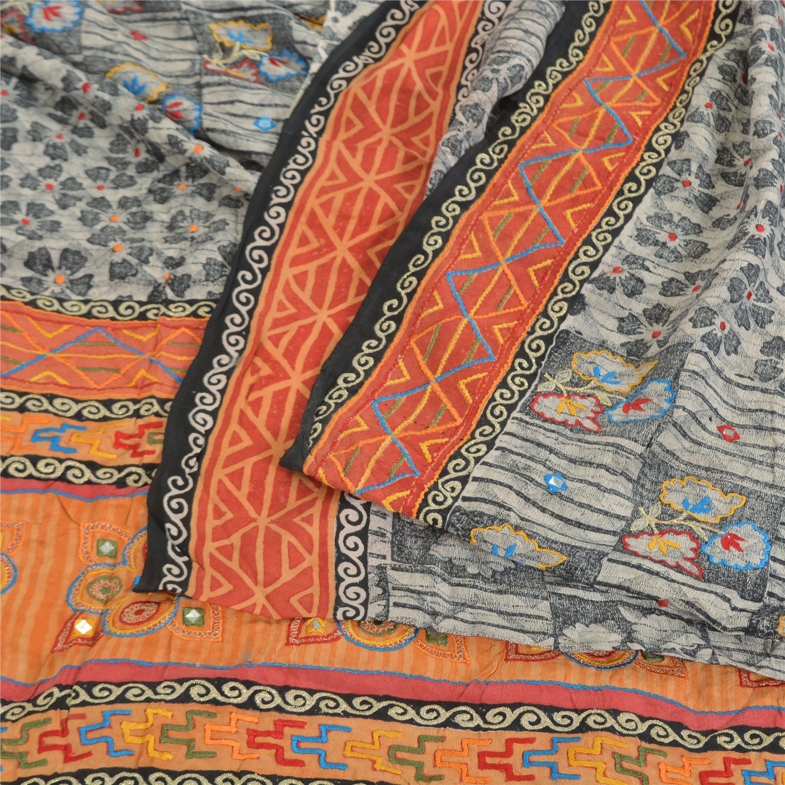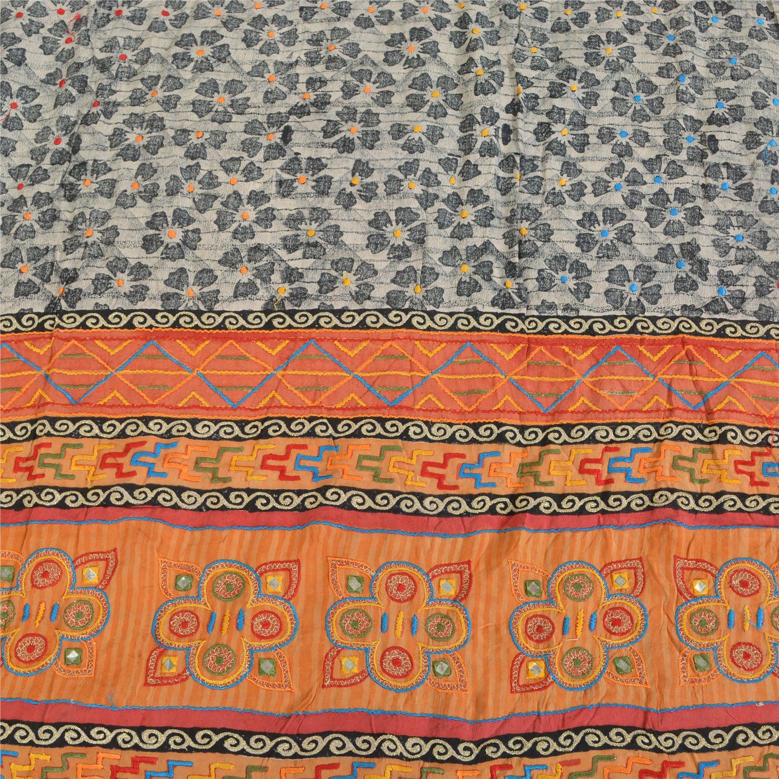 Sanskriti Vintage Sarees Gray Embroidered Pure Crepe Print Sari 5yd Craft Sustainable Fabric