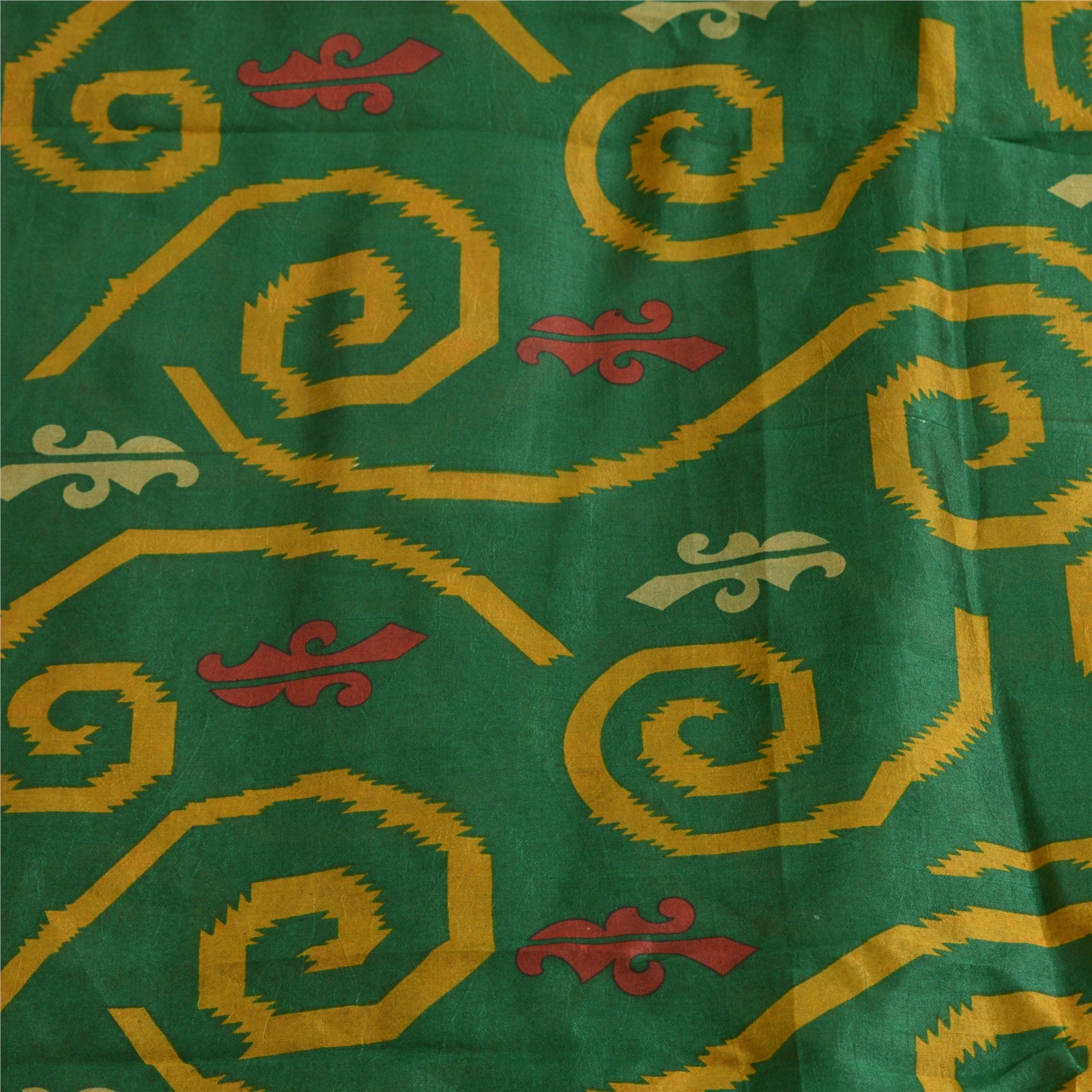 Sanskriti Vintage Sarees Green 100% Pure Silk Printed Sari Floral Craft Sustainable Fabric
