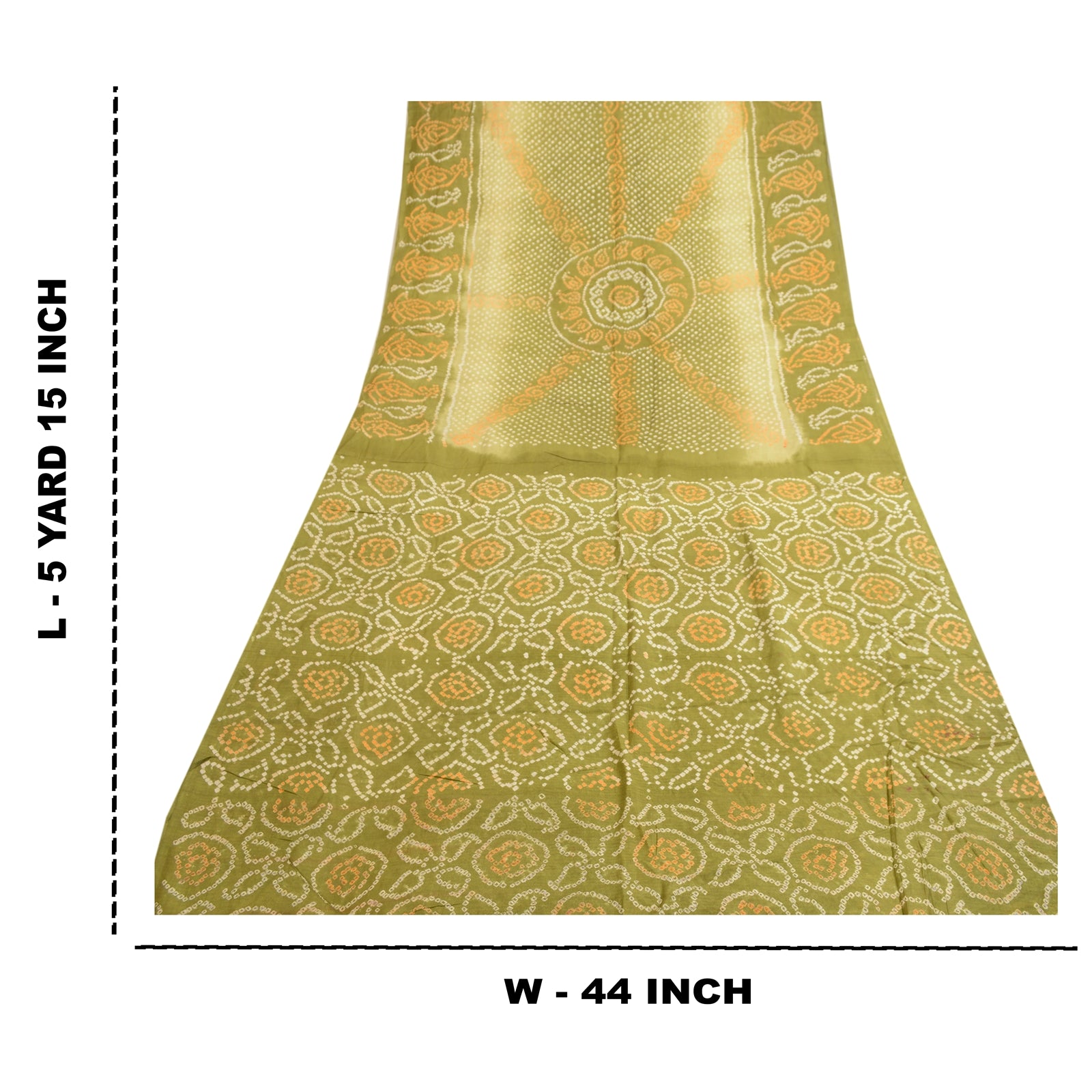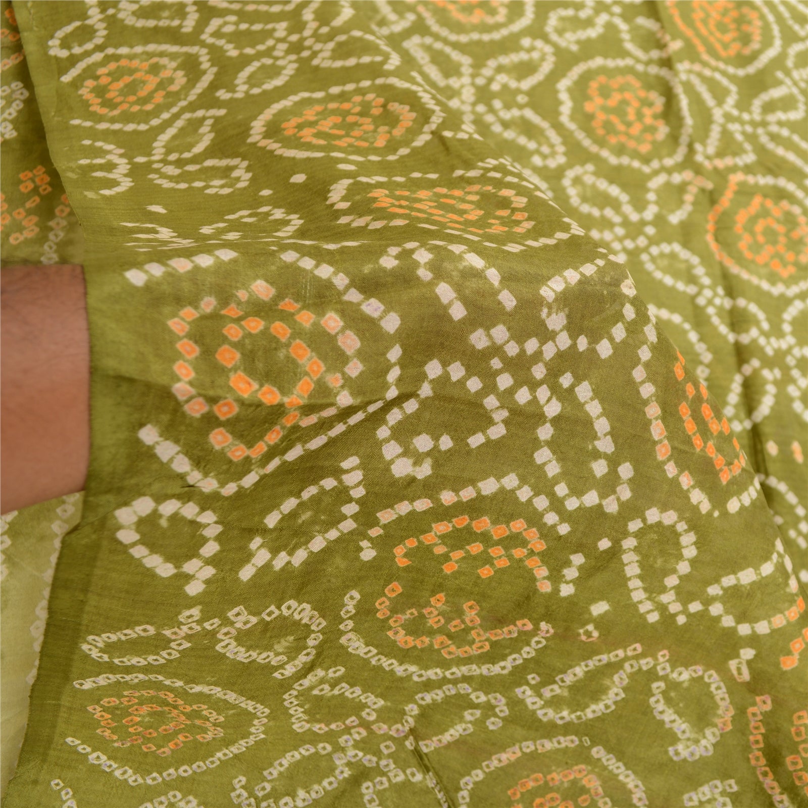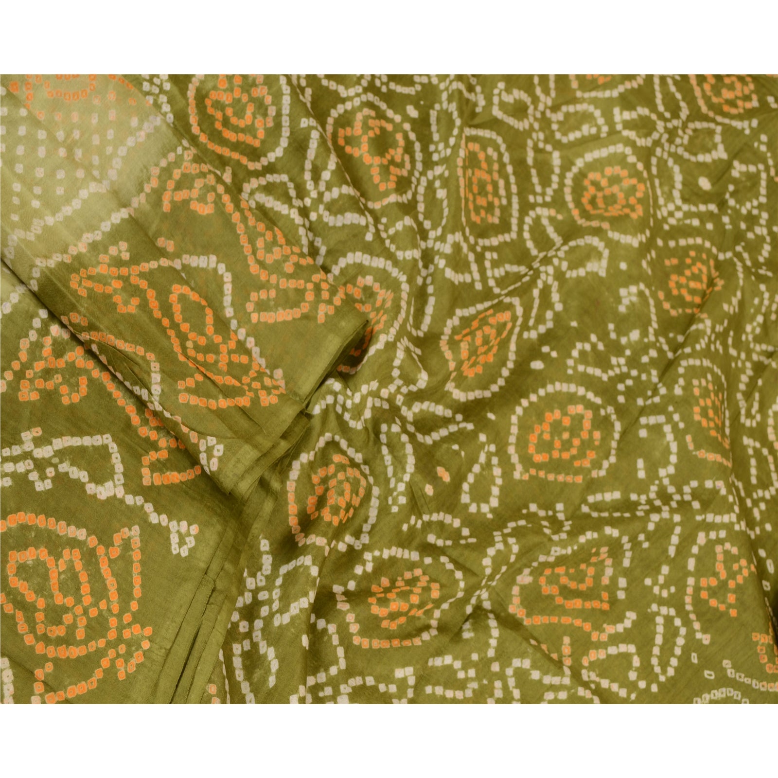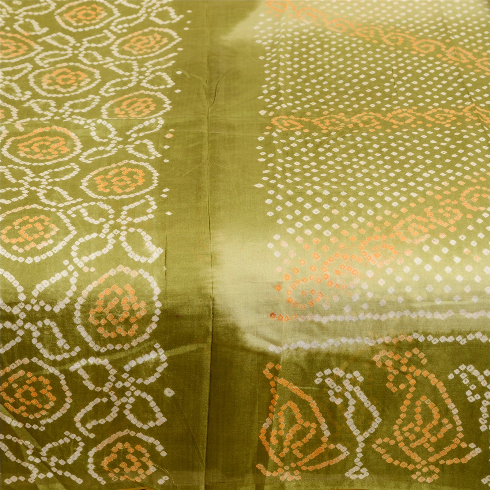 Sanskriti Vintage Sarees Green Bandhani Printed Pure Silk Sari 5yd Craft Sustainable Fabric