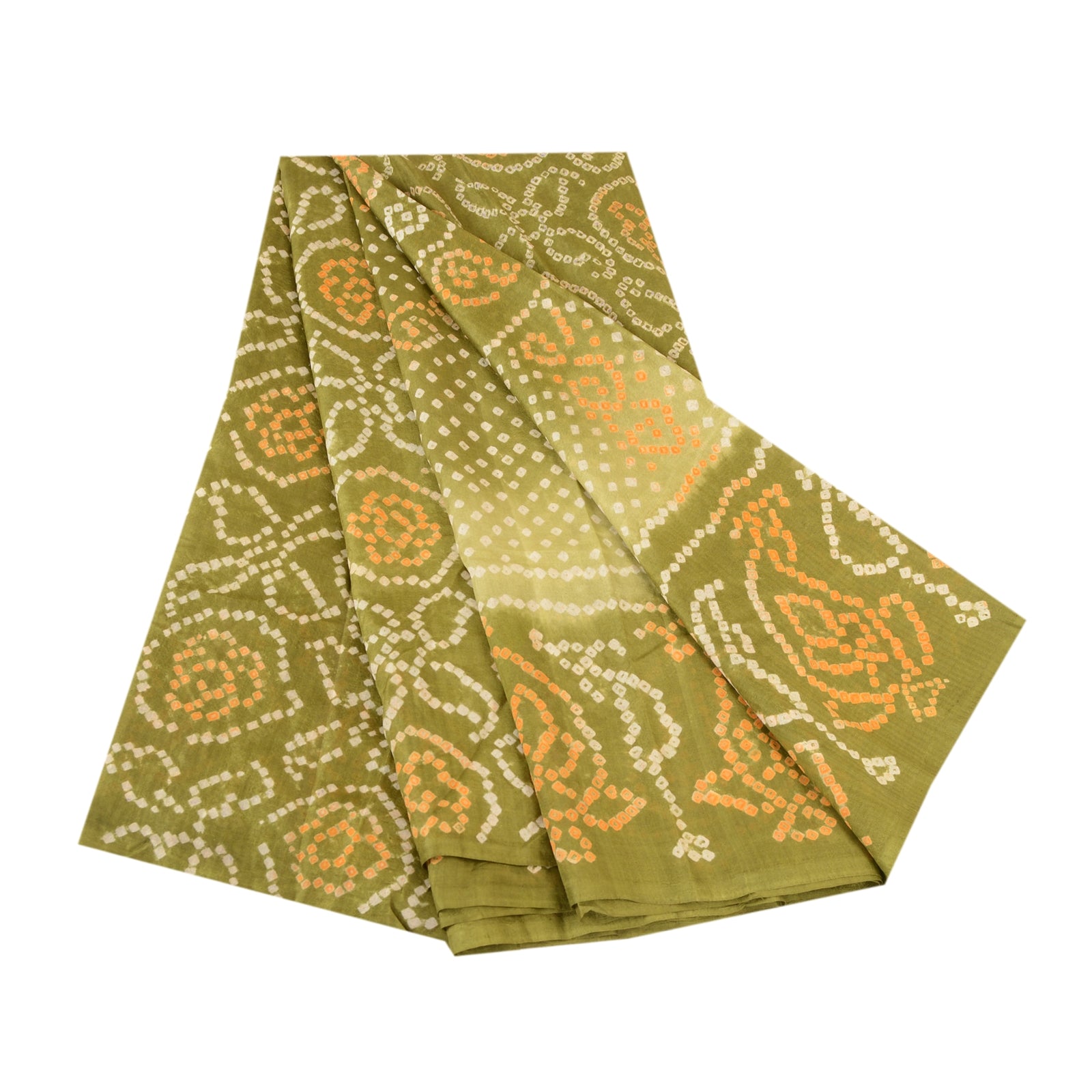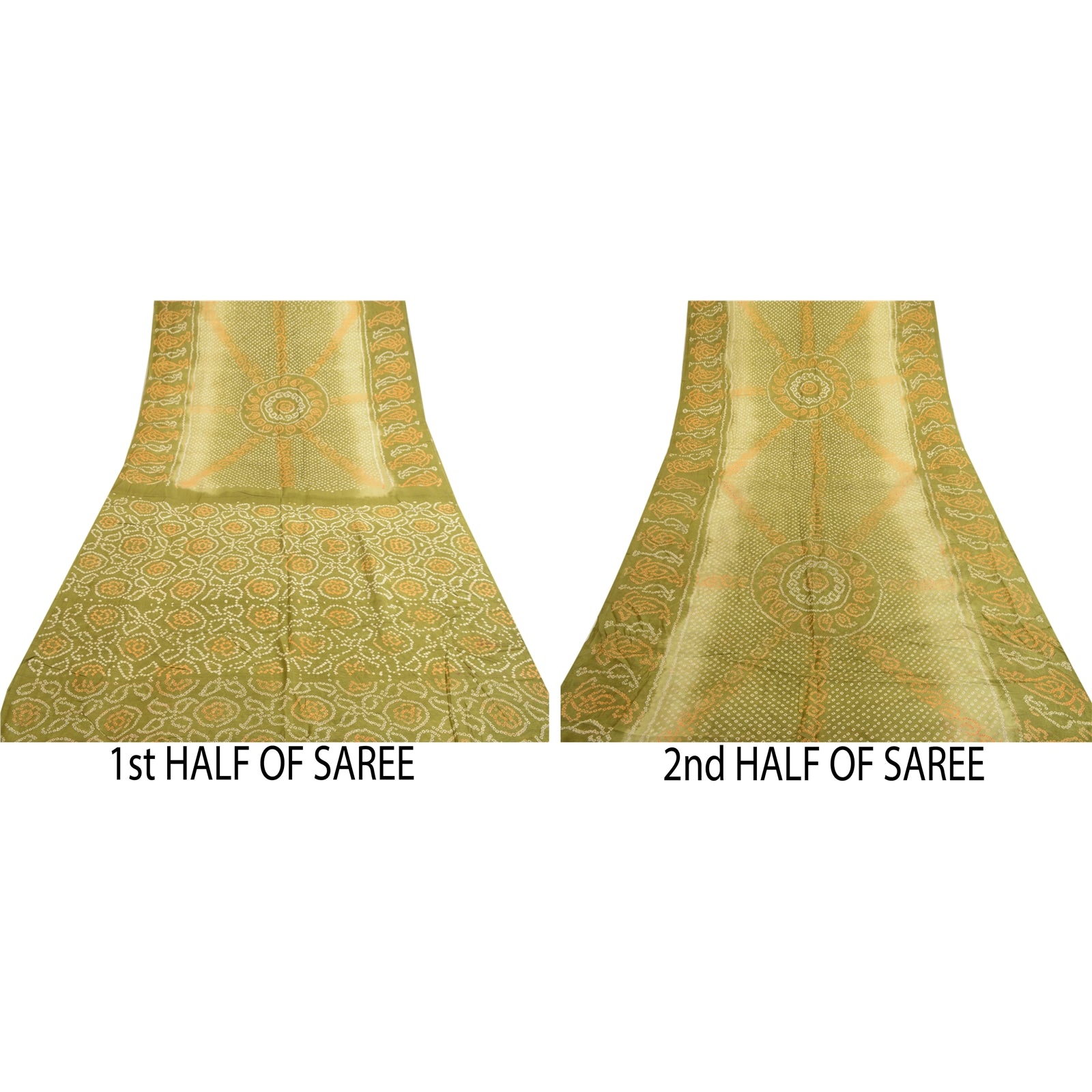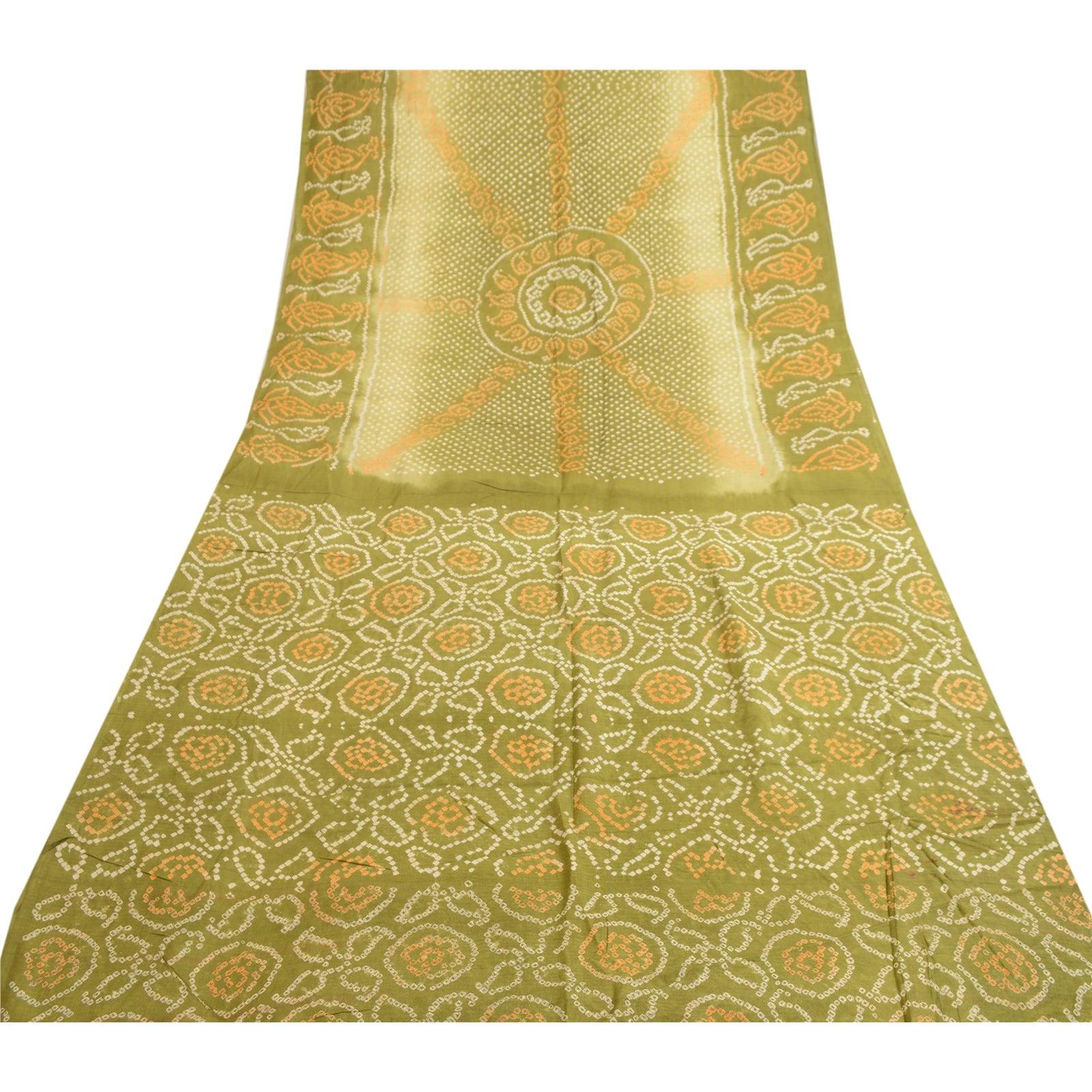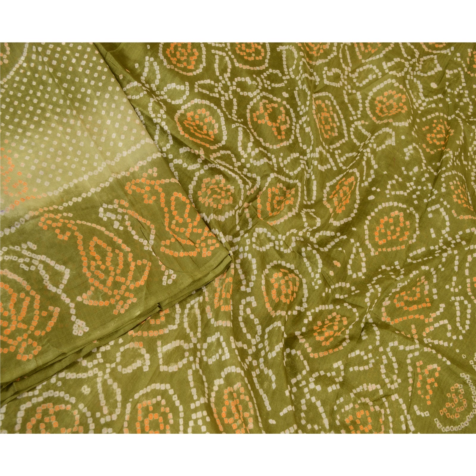 Sanskriti Vintage Sarees Green Bandhani Printed Pure Silk Sari 5yd Craft Sustainable Fabric