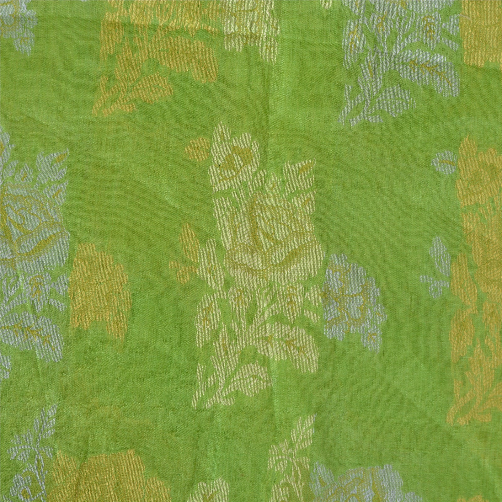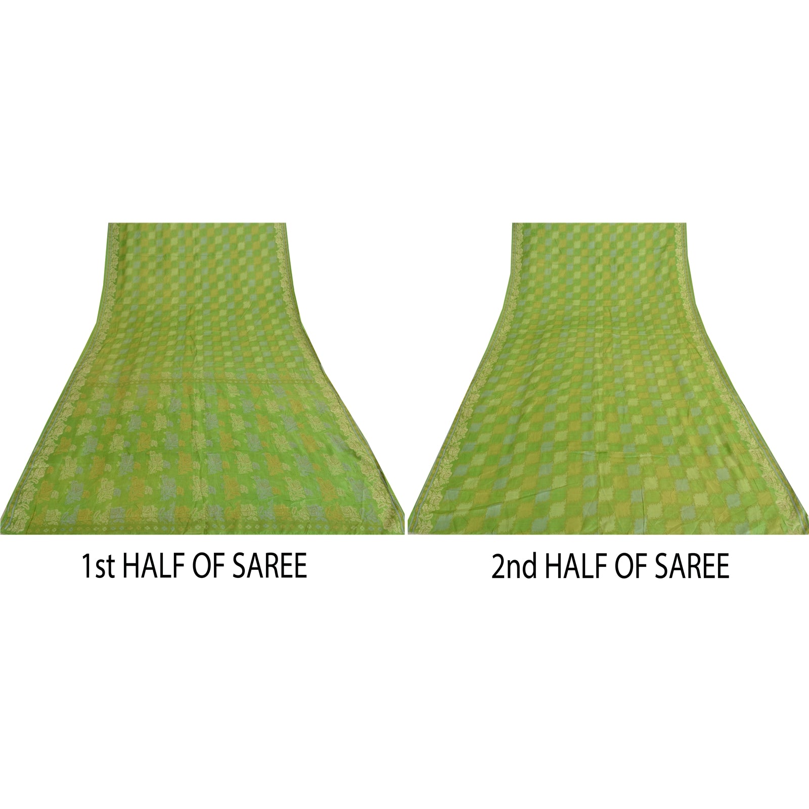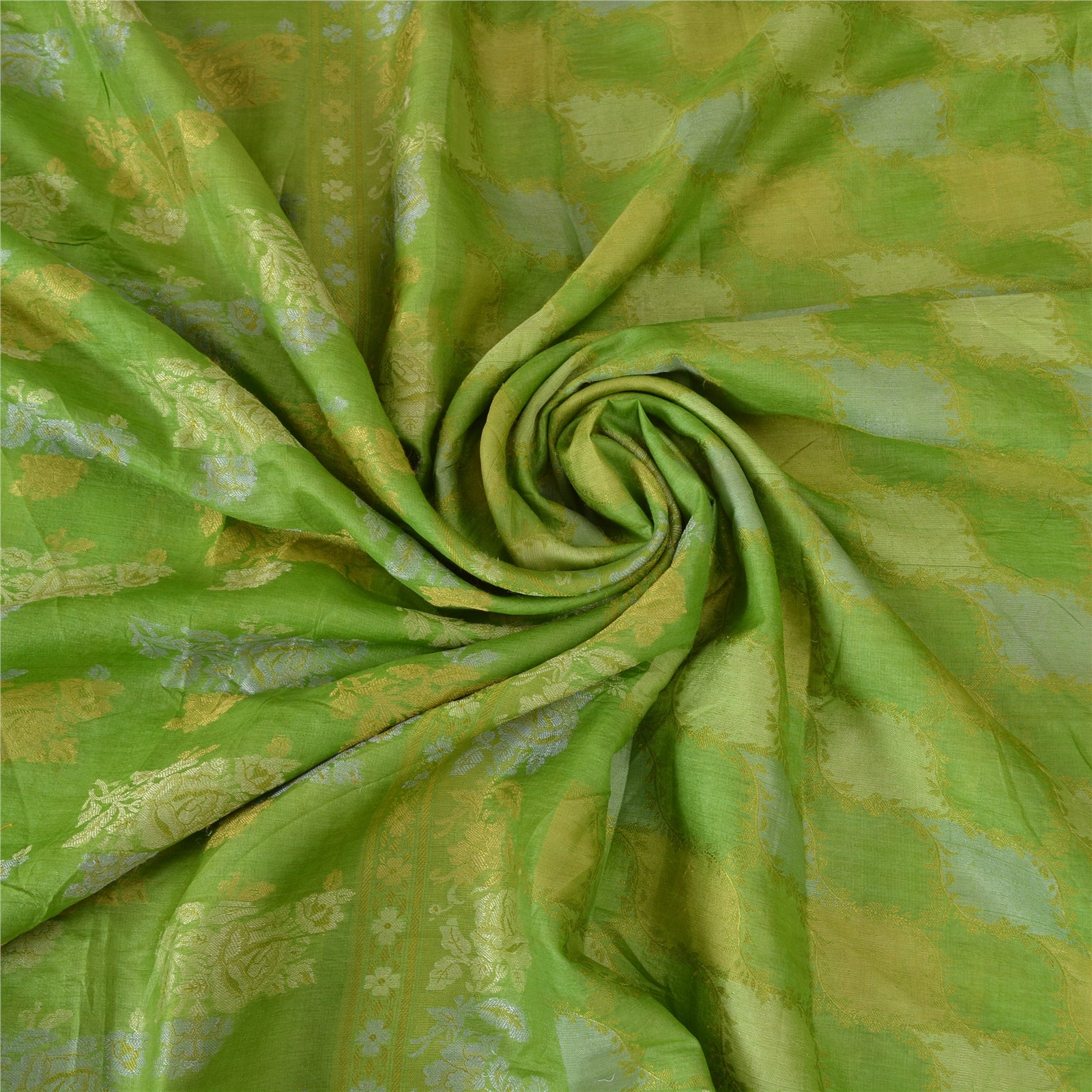 Sanskriti Vintage Sarees Green Hand Woven Pure Silk Sari 5yd Floral Craft Sustainable Fabric