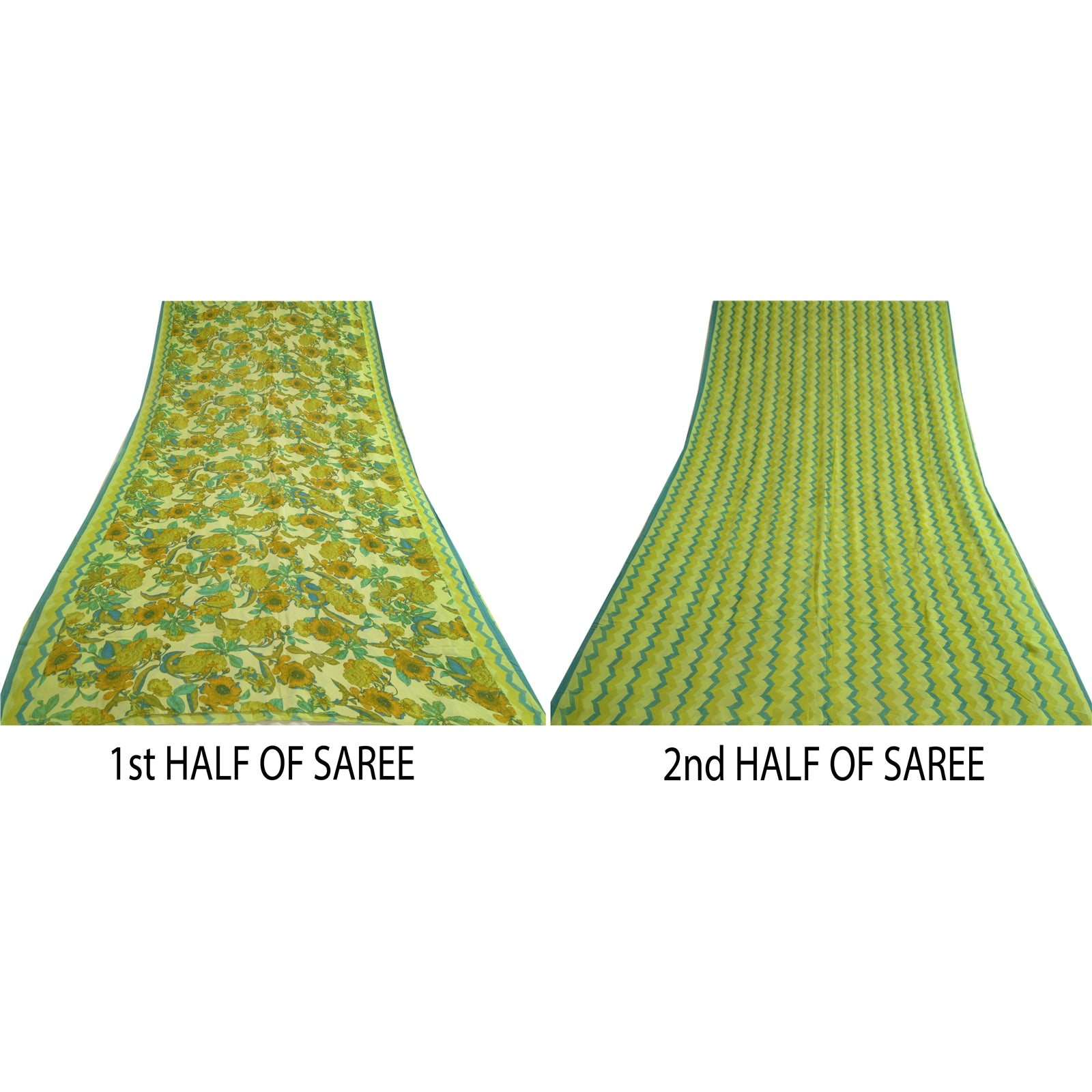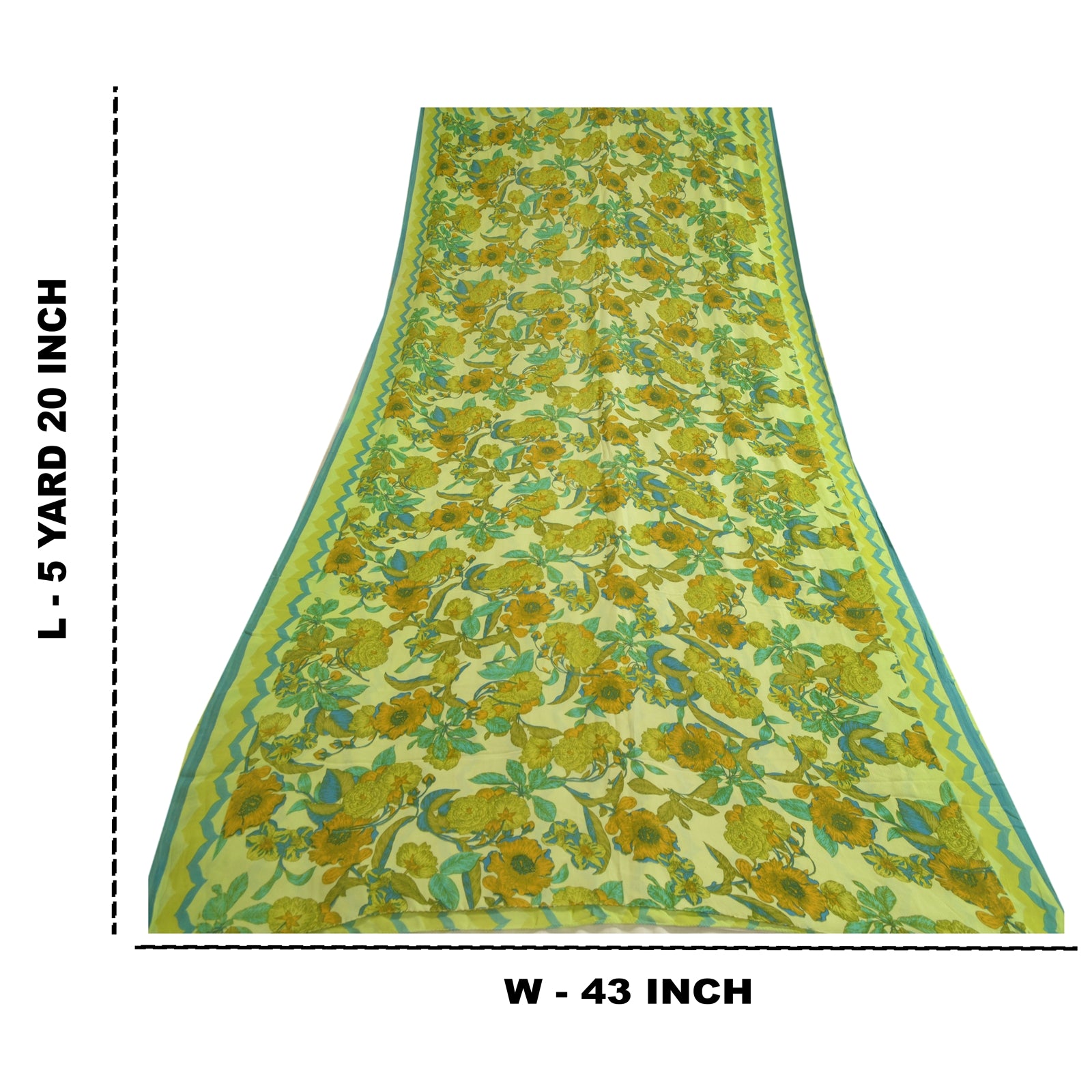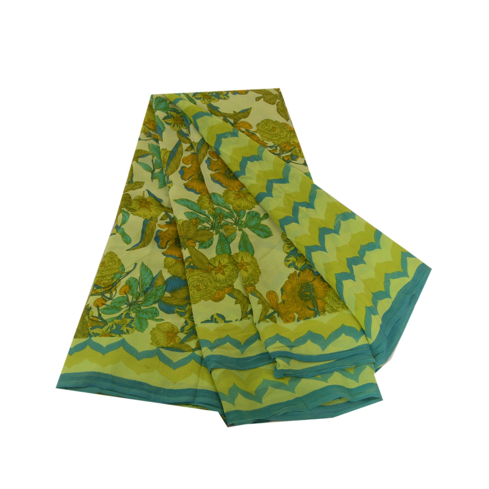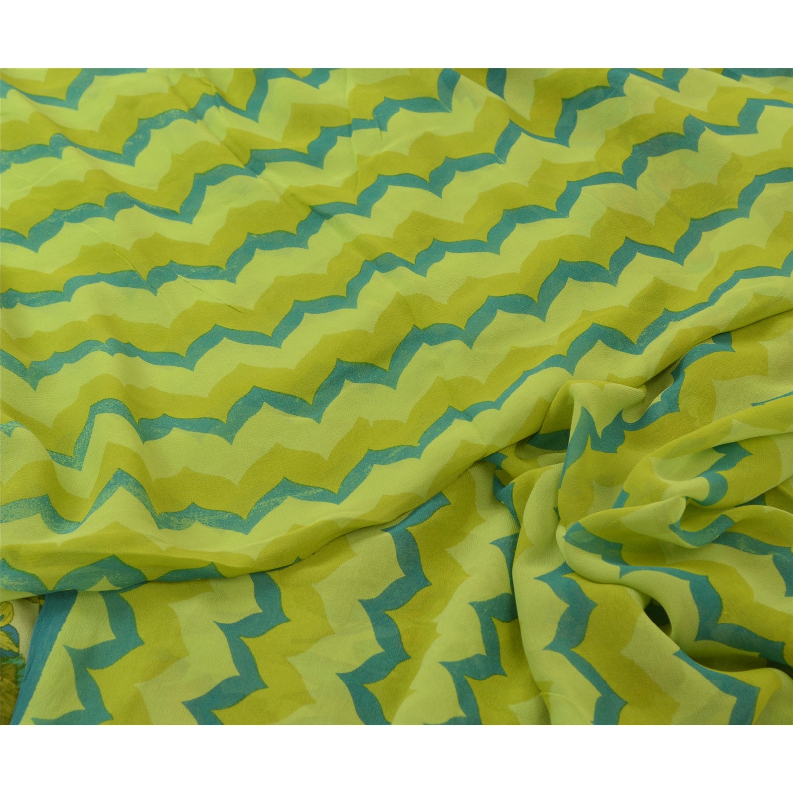 Sanskriti Vintage Sarees Green Pure Georgette Silk Printed Sari 5yd Craft Sustainable Fabric