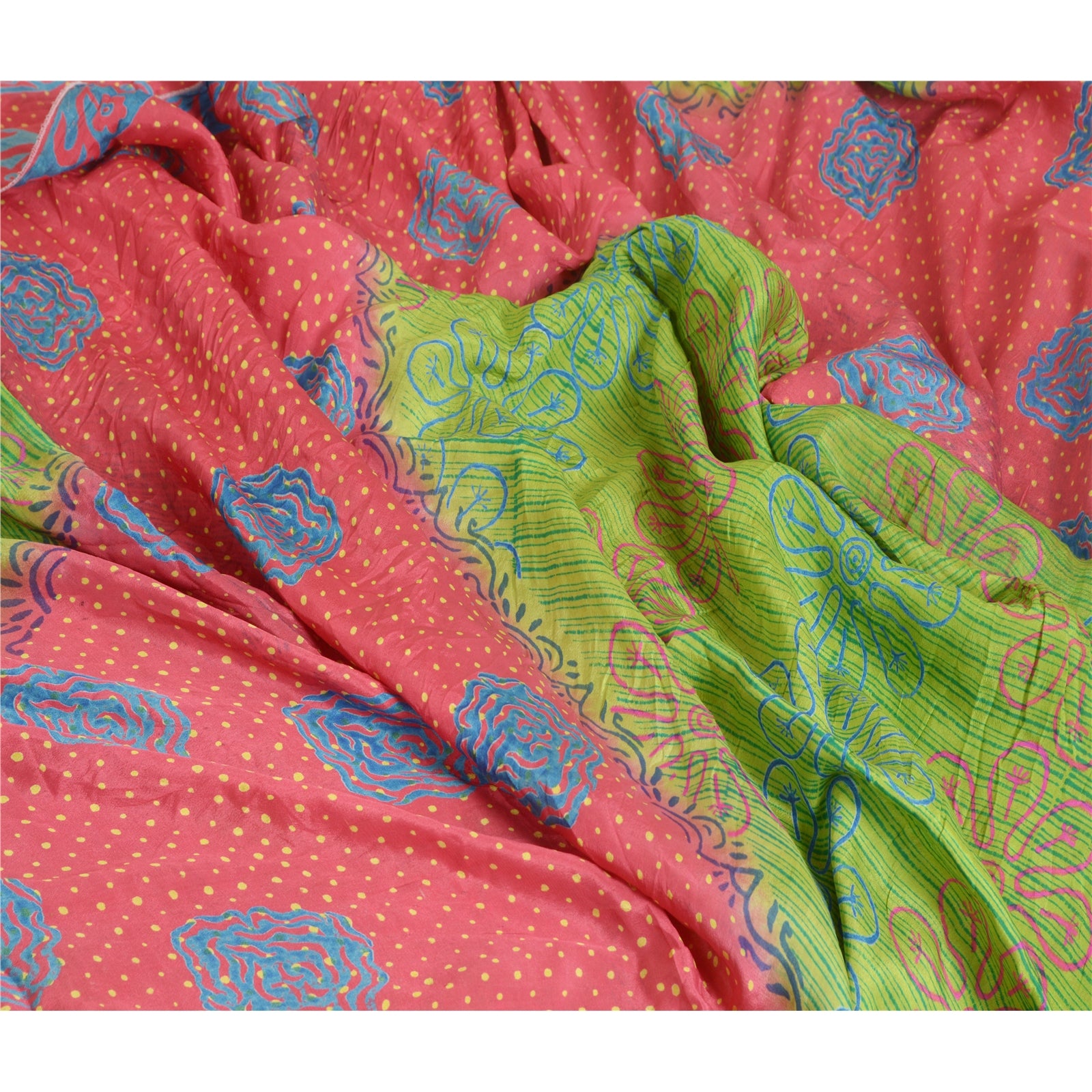 Sanskriti Vintage Sarees Green/Red Pure Silk Printed Woven Sari 5yd Craft Sustainable Fabric