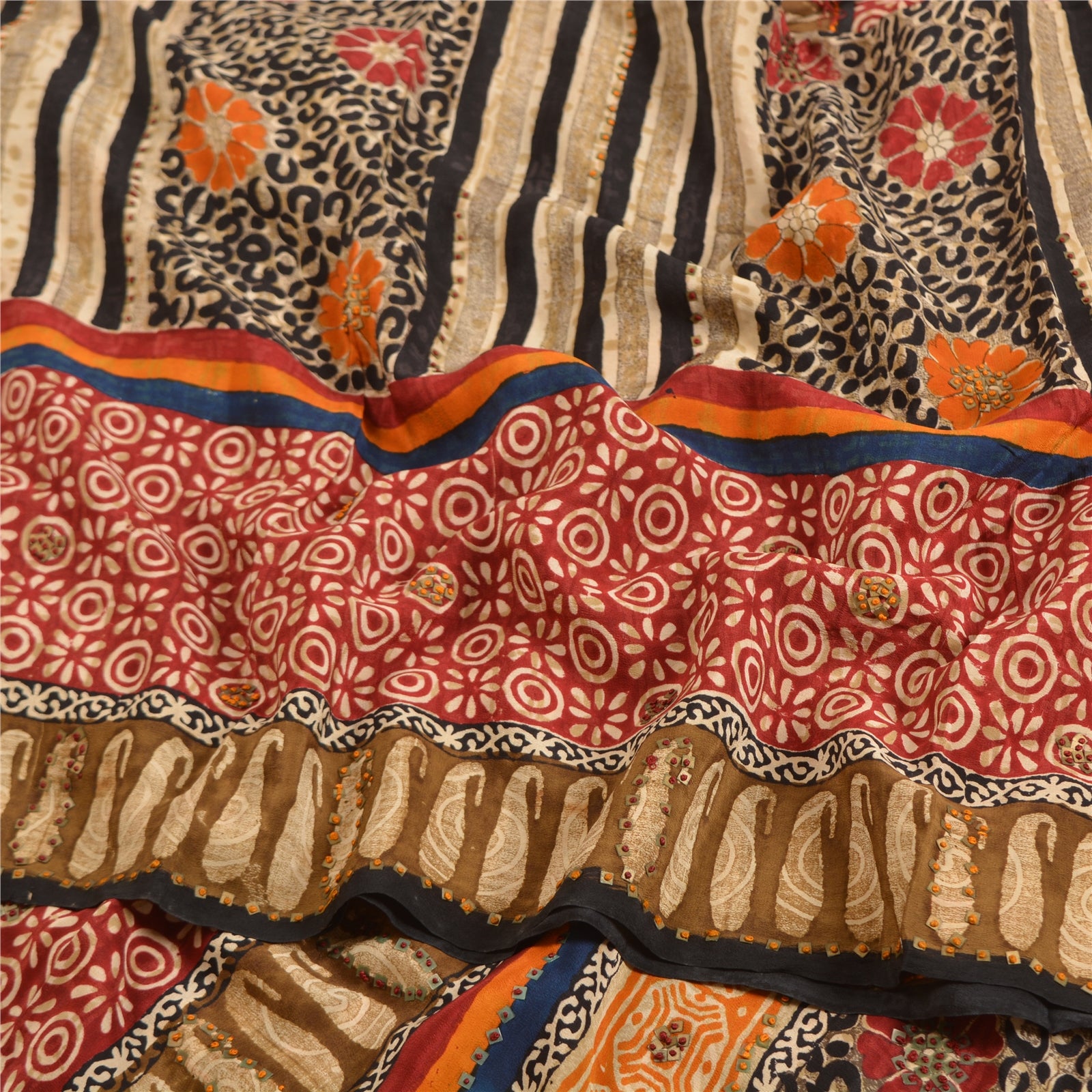 Sanskriti Vintage Sarees Hand Beaded Pure Crepe Silk Printed Sari Craft Sustainable Fabric