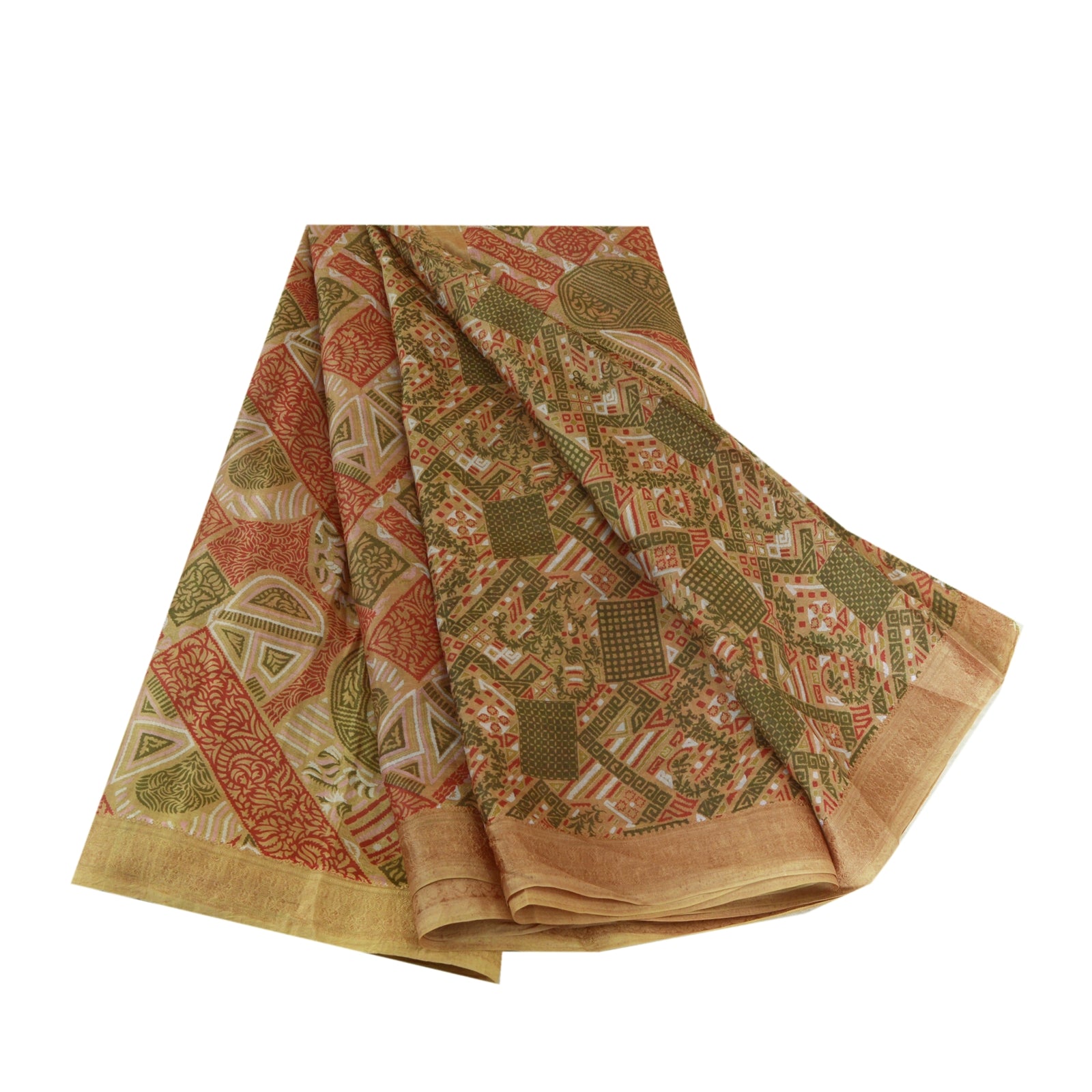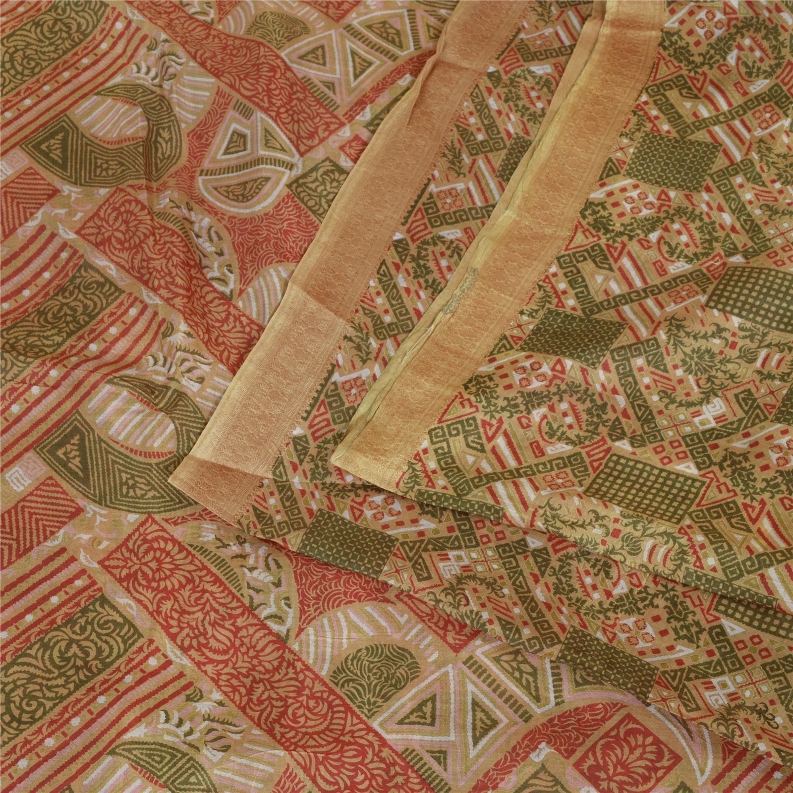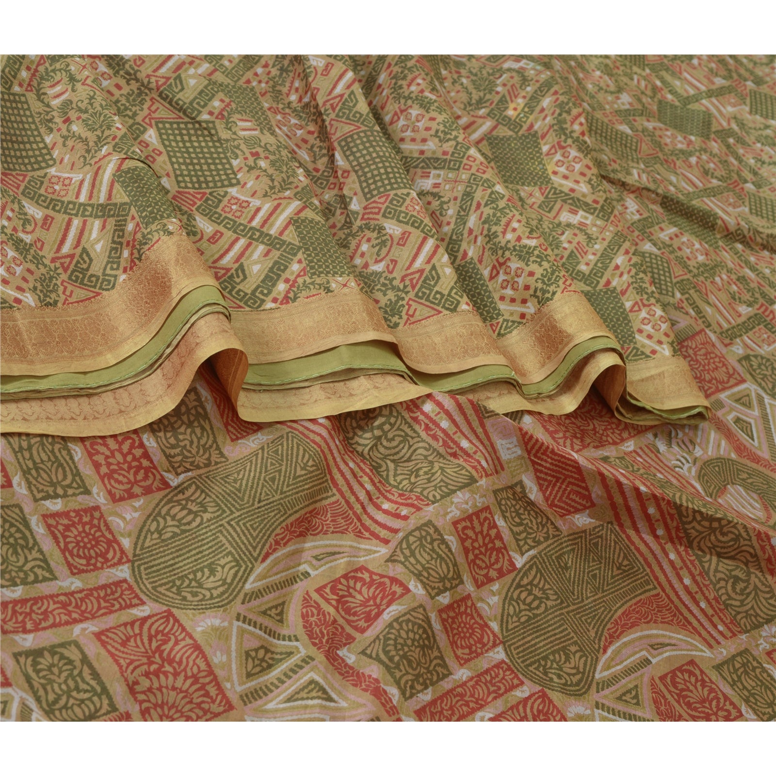 Sanskriti Vintage Sarees Indian Multi 100% Pure Silk Printed Sari Craft Sustainable Fabric