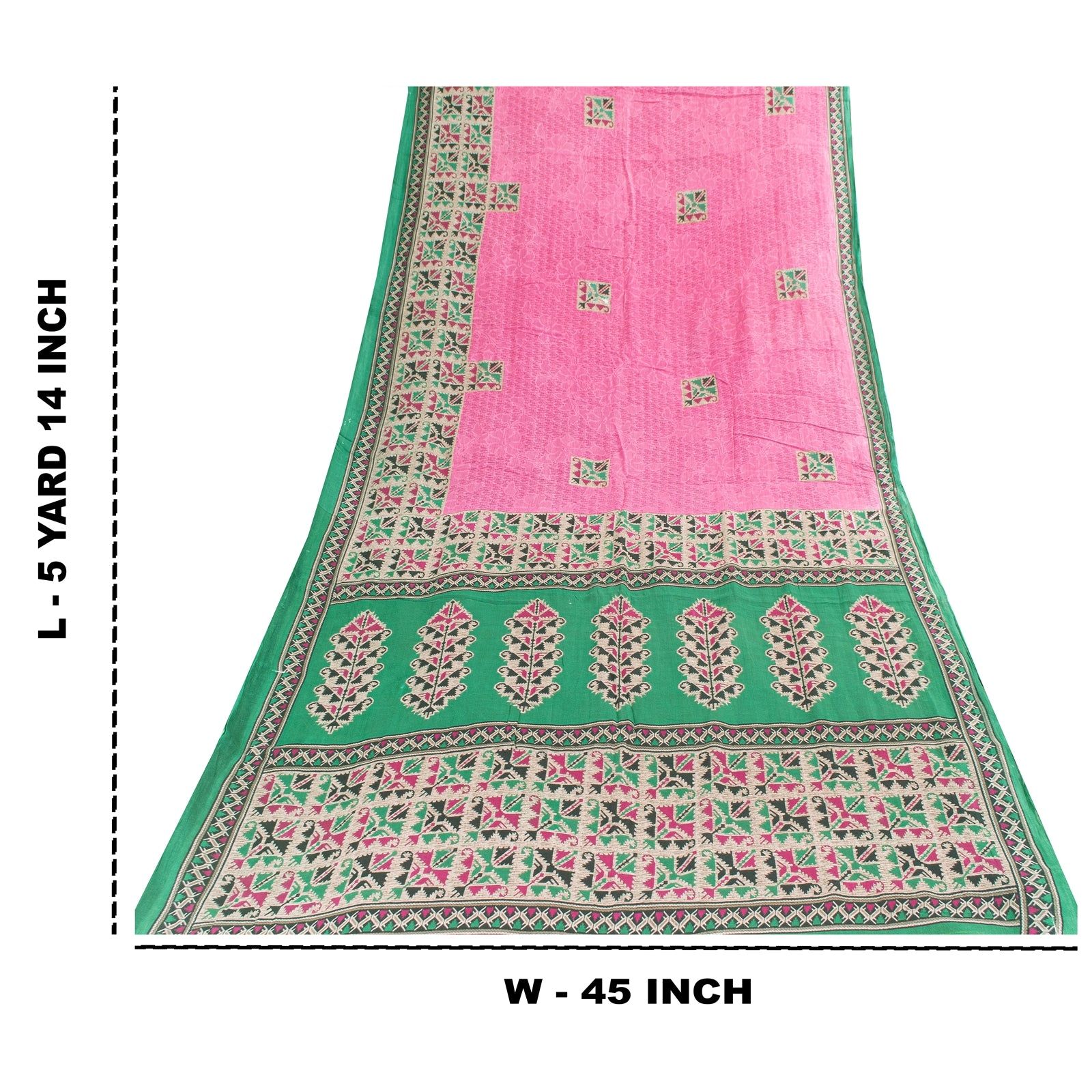 Sanskriti Vintage Sarees Indian Pink Pure Cotton Printed Sari 5+yd Craft Fabric