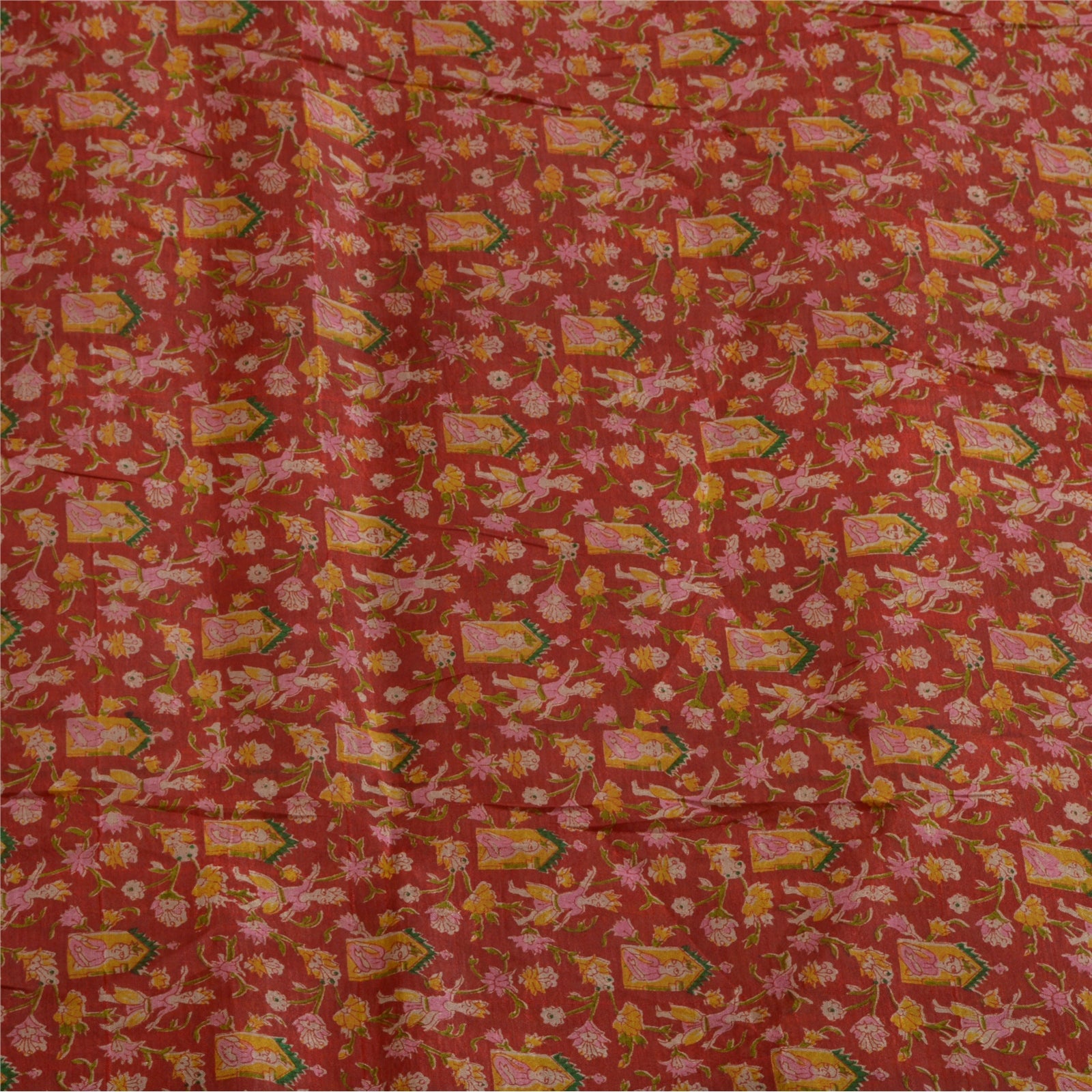 Sanskriti Vintage Sarees Indian Red/Green Printed Pure Silk Sari Craft Sustainable Fabric