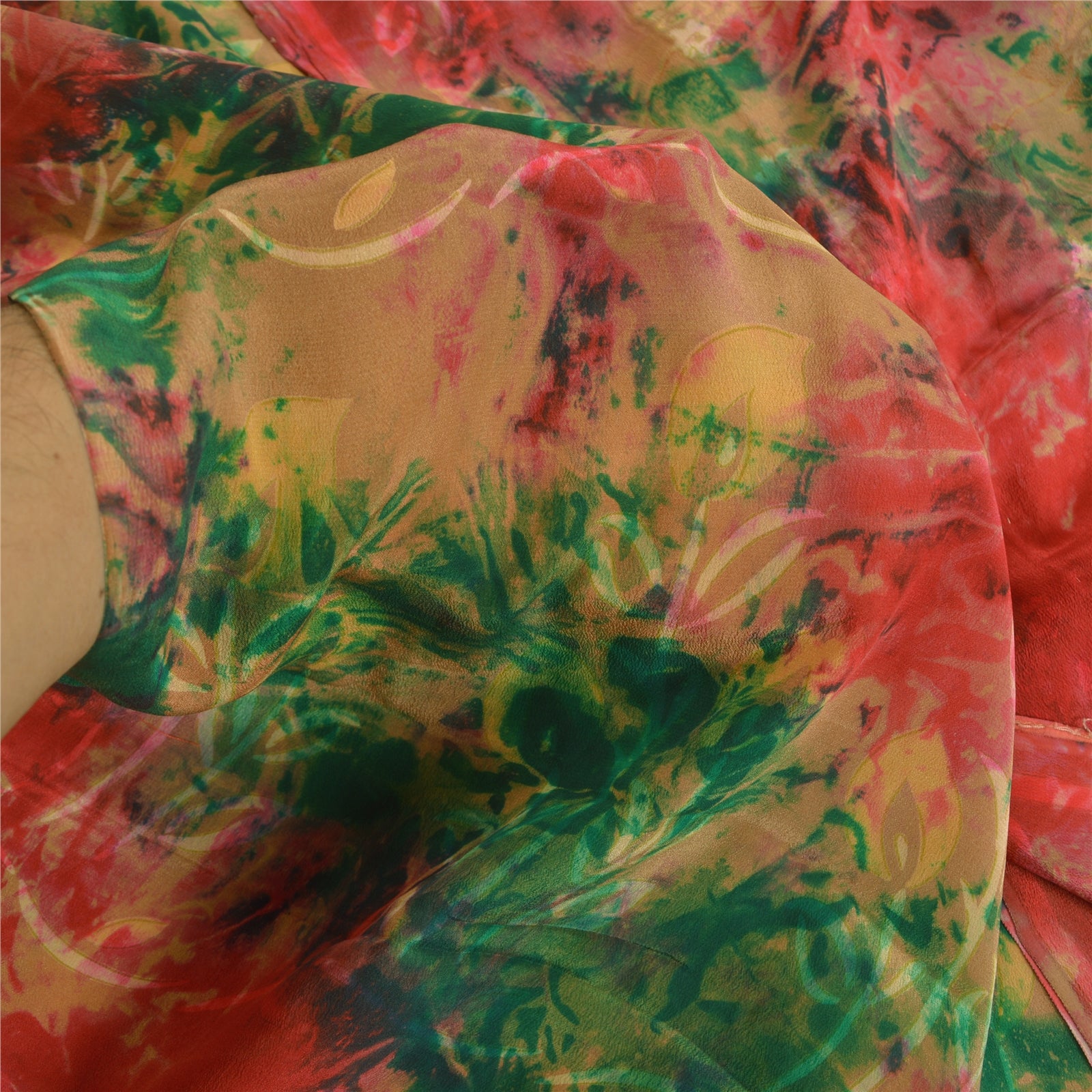 Sanskriti Vintage Sarees Indian Red Tie-Dye Pure Crepe Silk Sari Craft Sustainable Fabric