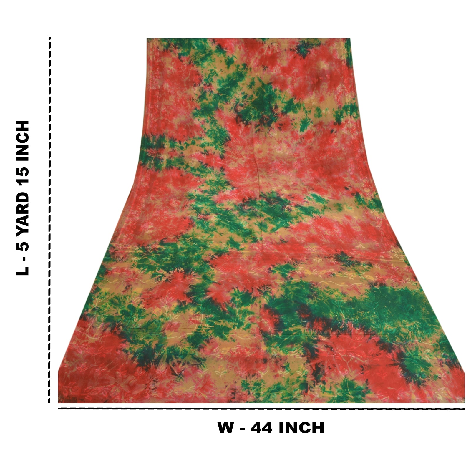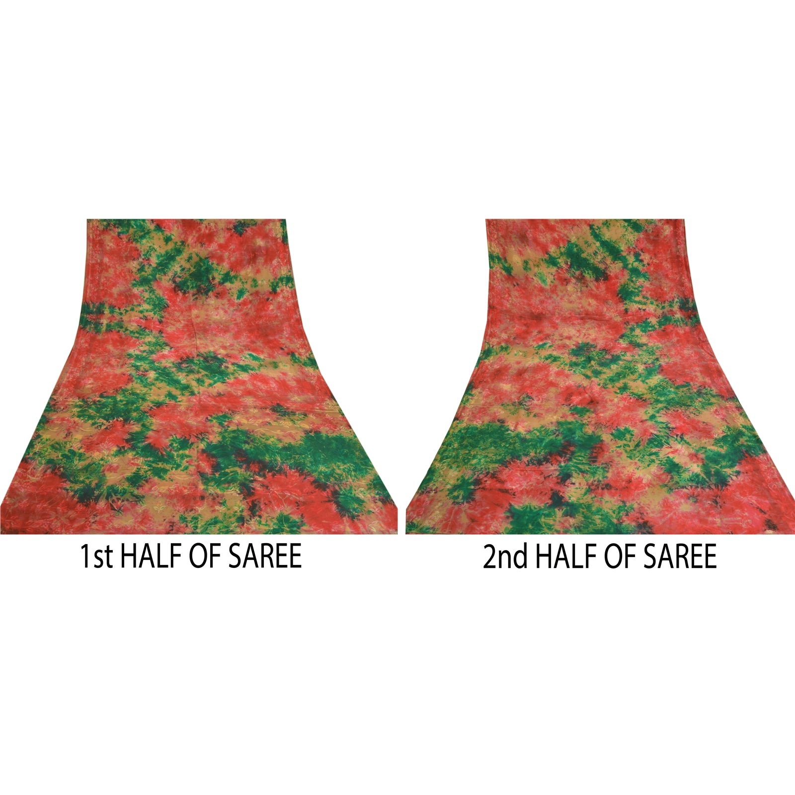 Beautiful red & green colored pure crepe silk tie-dye saree. Allover sari has tie-dye work. What is special about this saree? Fabulous design is really enhancing the beauty of the saree.This unique vintage saree can be used for various crafting ideas even if you don't want to use it as a sari. Design a dress, use it as window,dressing, upholstery, sarongs, throw, dress making and table linen much more. Let your creative juices flow and use this decorated Sustainable Fabric in multiple fashion.Saree dyed by the seller.