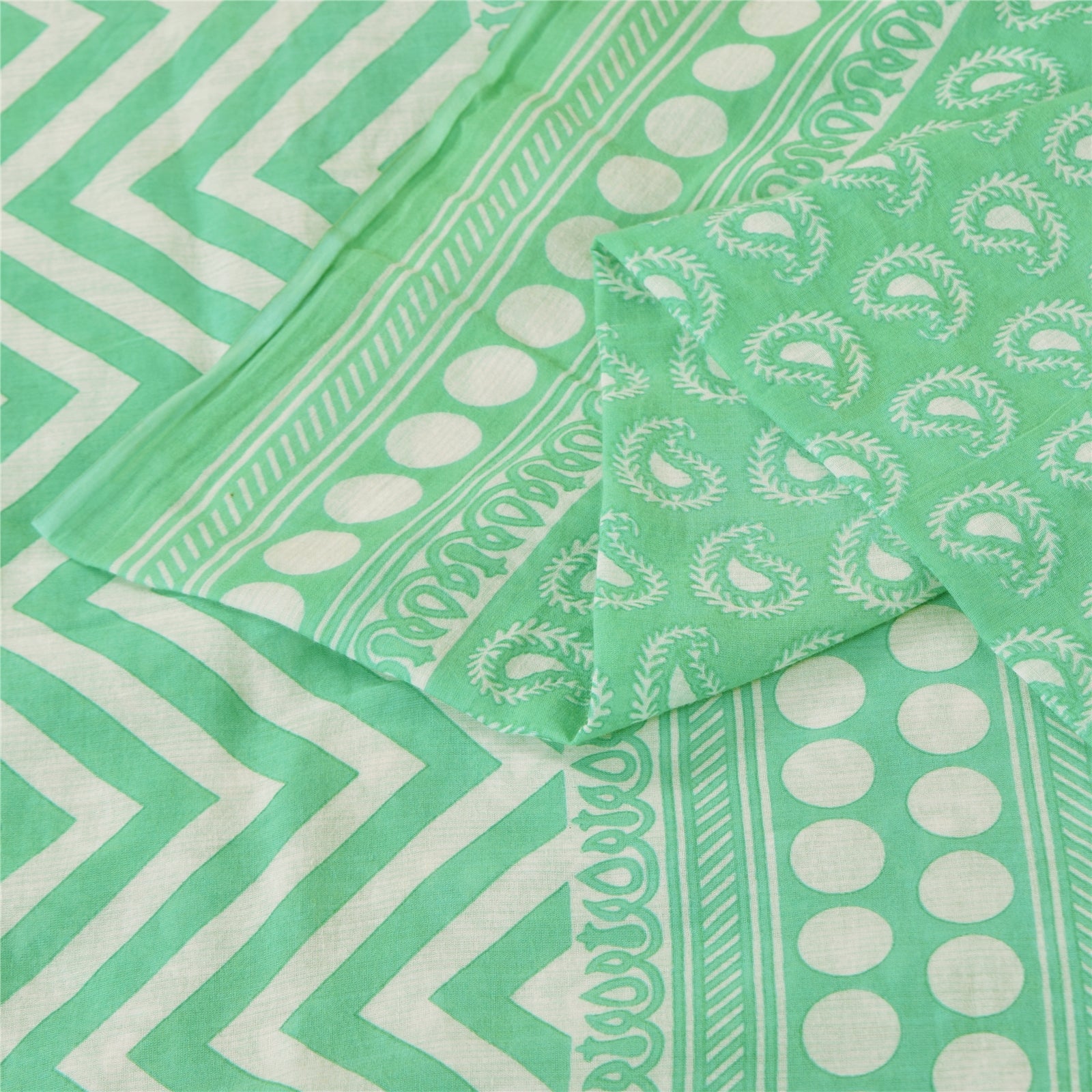 THE ITEM COLOR OR SHADE MAY BE DARKER OR LIGHTER THAN THE PICTURE. Attractive sea green colored pure cotton printed sari. Pallu & Border has printed circle & zig zag lines design. Paisley design in center part of saree.. This unique vintage saree can be used for various crafting ideas even if you don't want to use it as a sari. Design a dress, use it as a as window dressing, upholstery, sarongs, throw, dress making and table linen much more. Let your creative juices flow and use this decorated Sustainable Fabric in multiple fashion. Shipping Note: 'International buyers please note: Import duties, taxes, and charges are not included in the item price or postage cost. These charges are the buyer's responsibility. Please check with your country's customs office to determine what these additional costs will be prior to bidding or buying. Buyer will pay custom duty/tax. It is calculated and charged differently by every country. As a seller I do not have any control over it. VAT or sales tax is calculated by the platform at the time of checkout. Customs charge is payable at the time of delivery.' PCS-6816