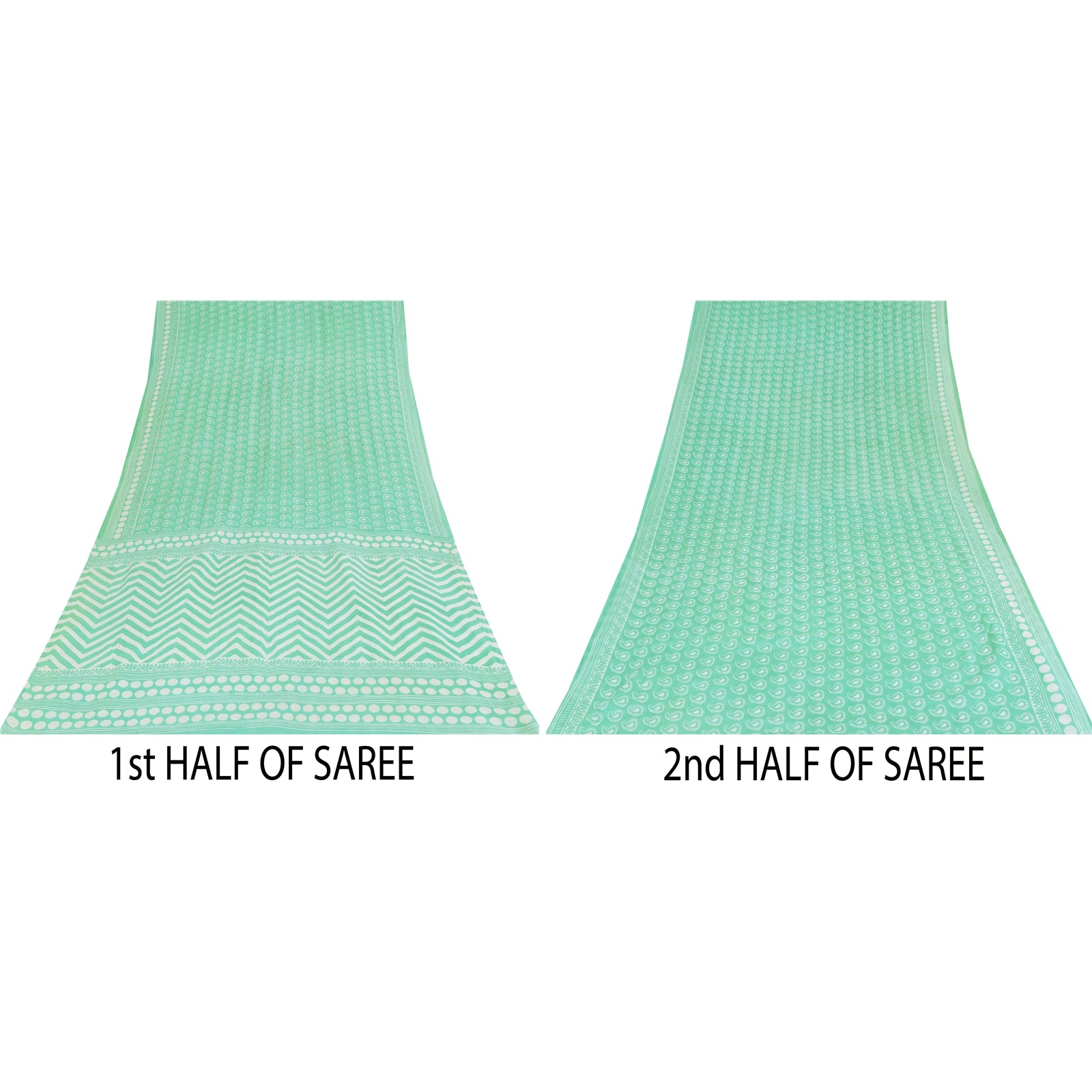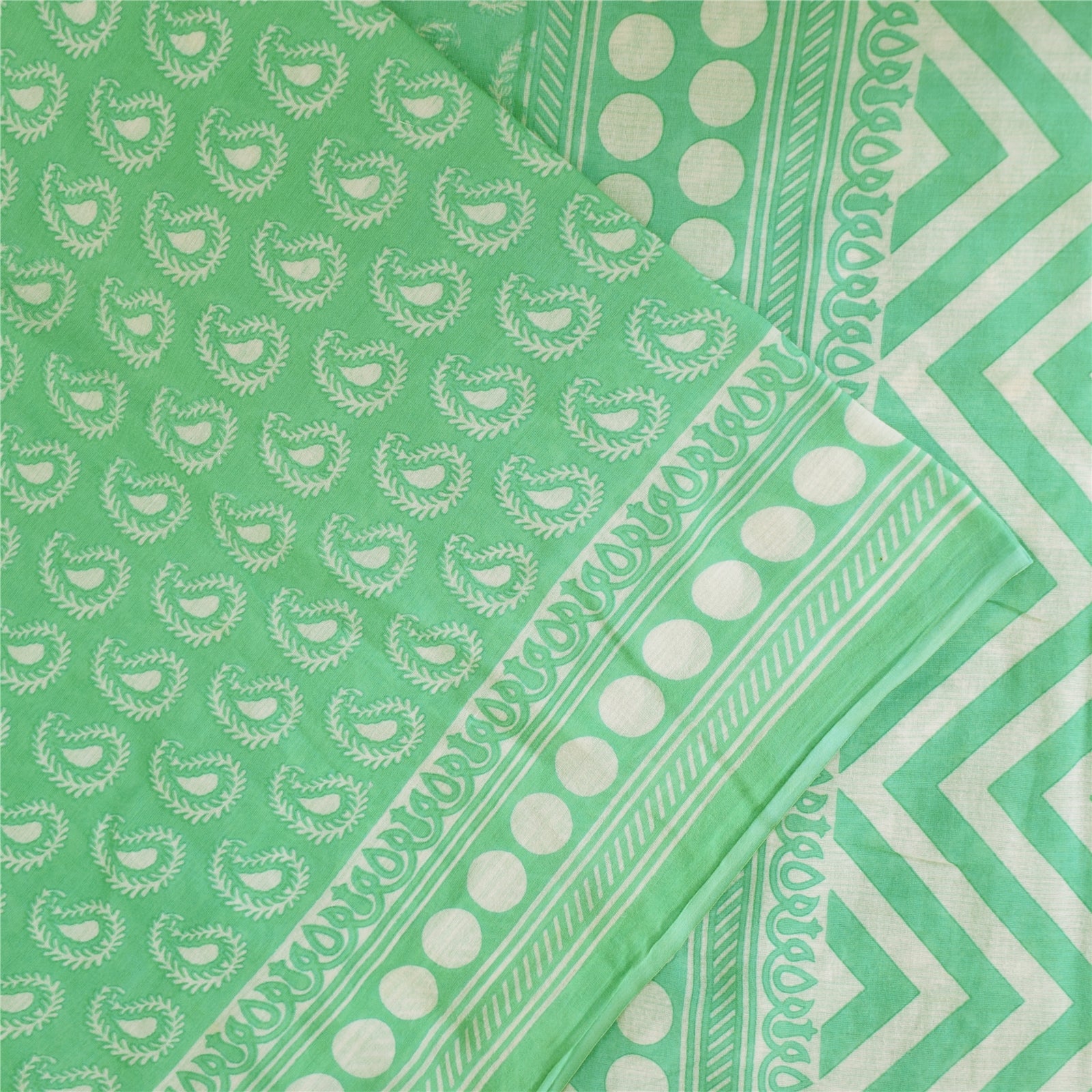 Sanskriti Vintage Sarees Indian Sea-Green Pure Cotton Printed Sari 5+yd Sustainable Fabric