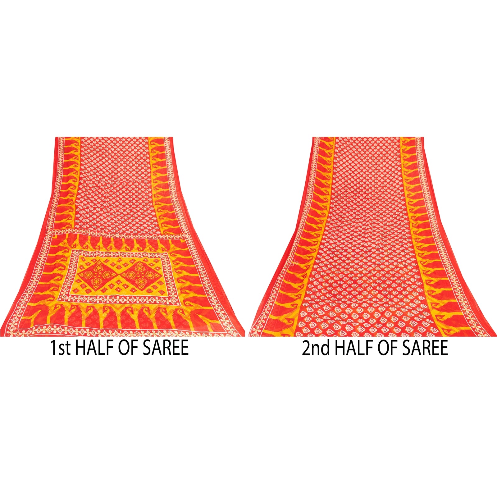 Sanskriti Vintage Sarees Indian Yellow & Red Pure Cotton Print Sari Craft Fabric