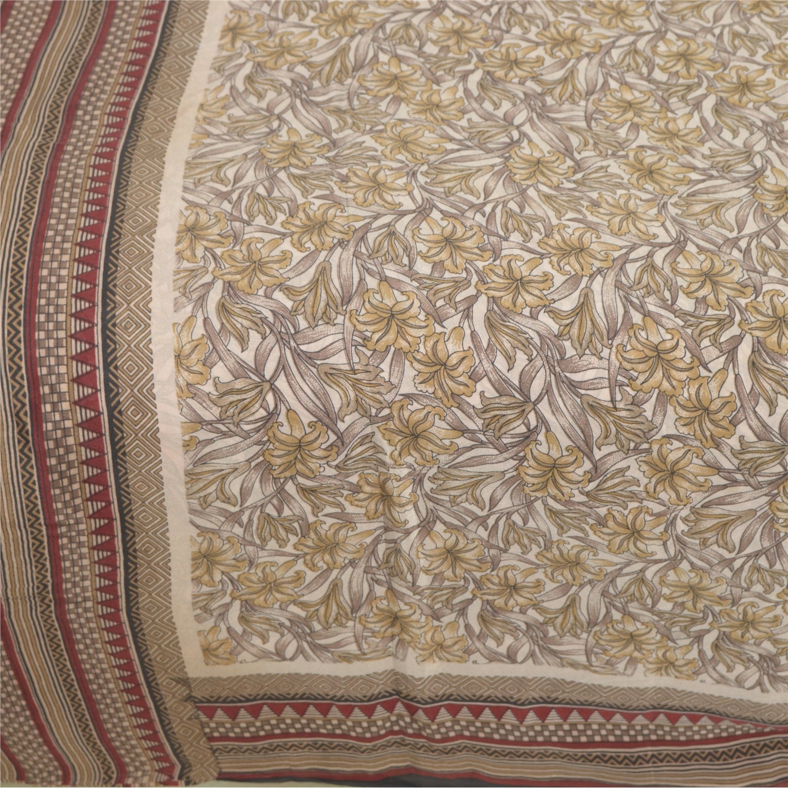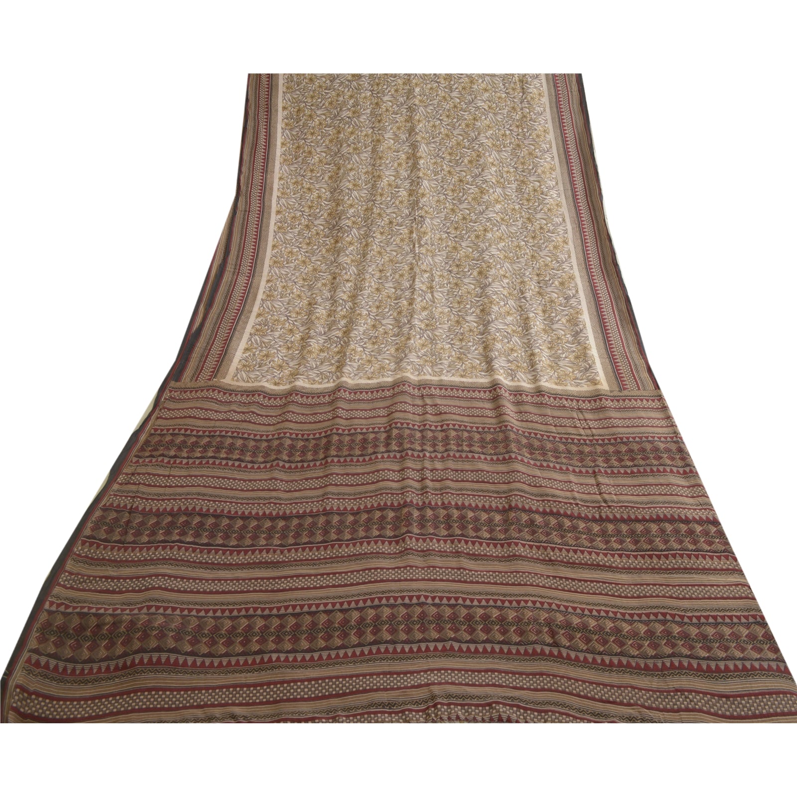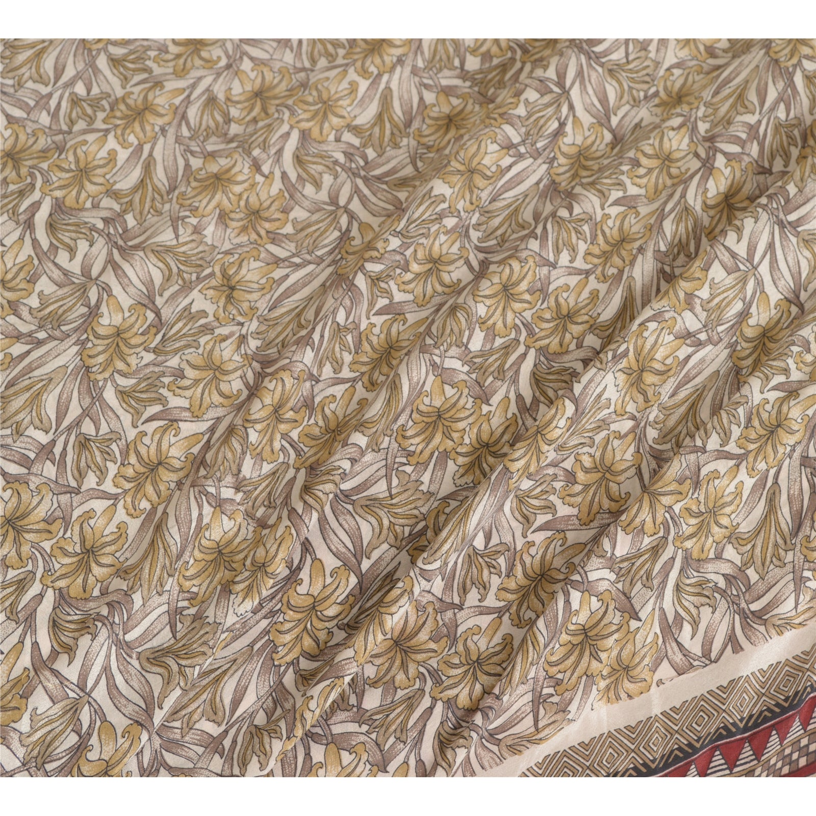 Sanskriti Vintage Sarees Ivory 100% Pure Silk Printed Sari Soft 5yd Craft Sustainable Fabric