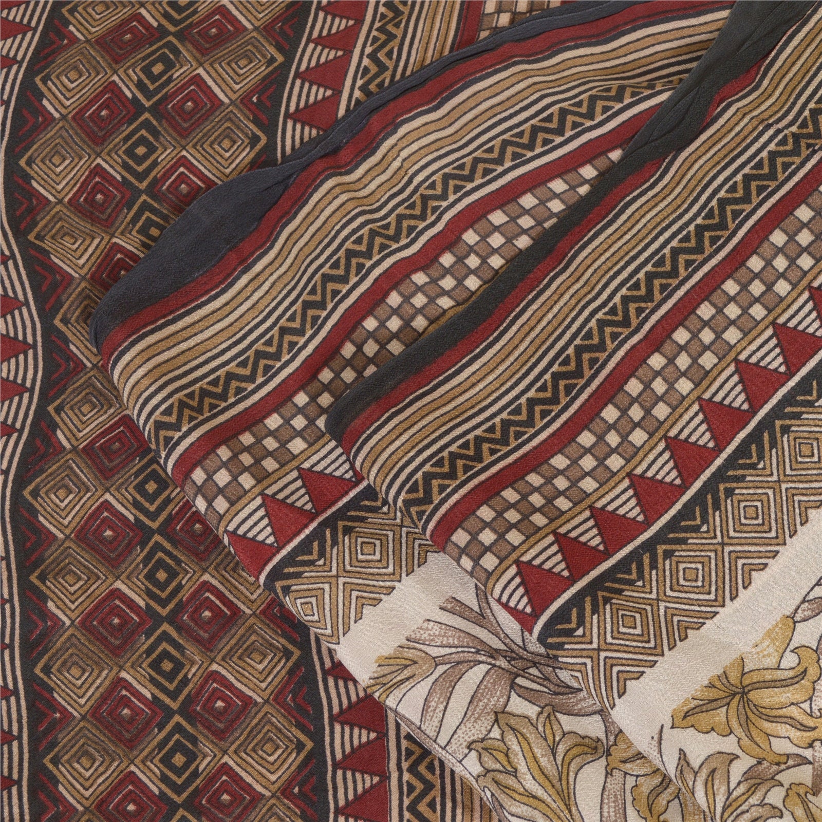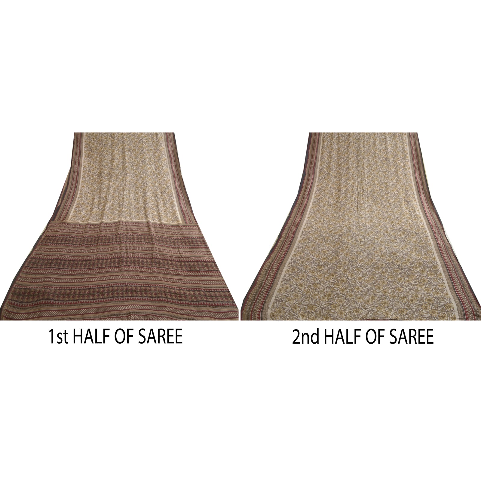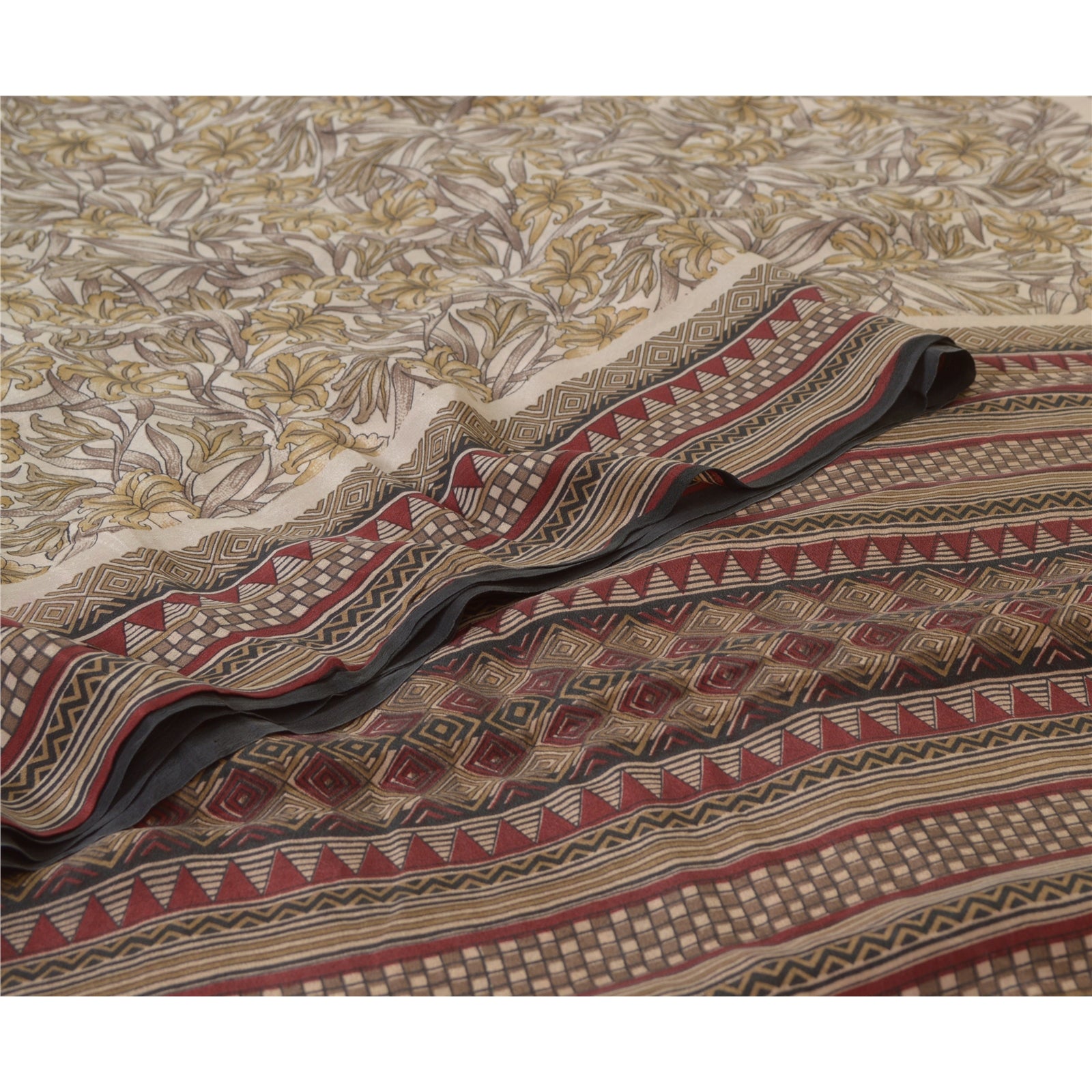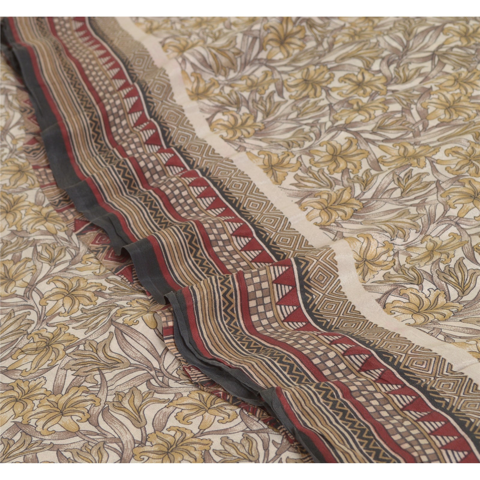 Sanskriti Vintage Sarees Ivory 100% Pure Silk Printed Sari Soft 5yd Craft Sustainable Fabric