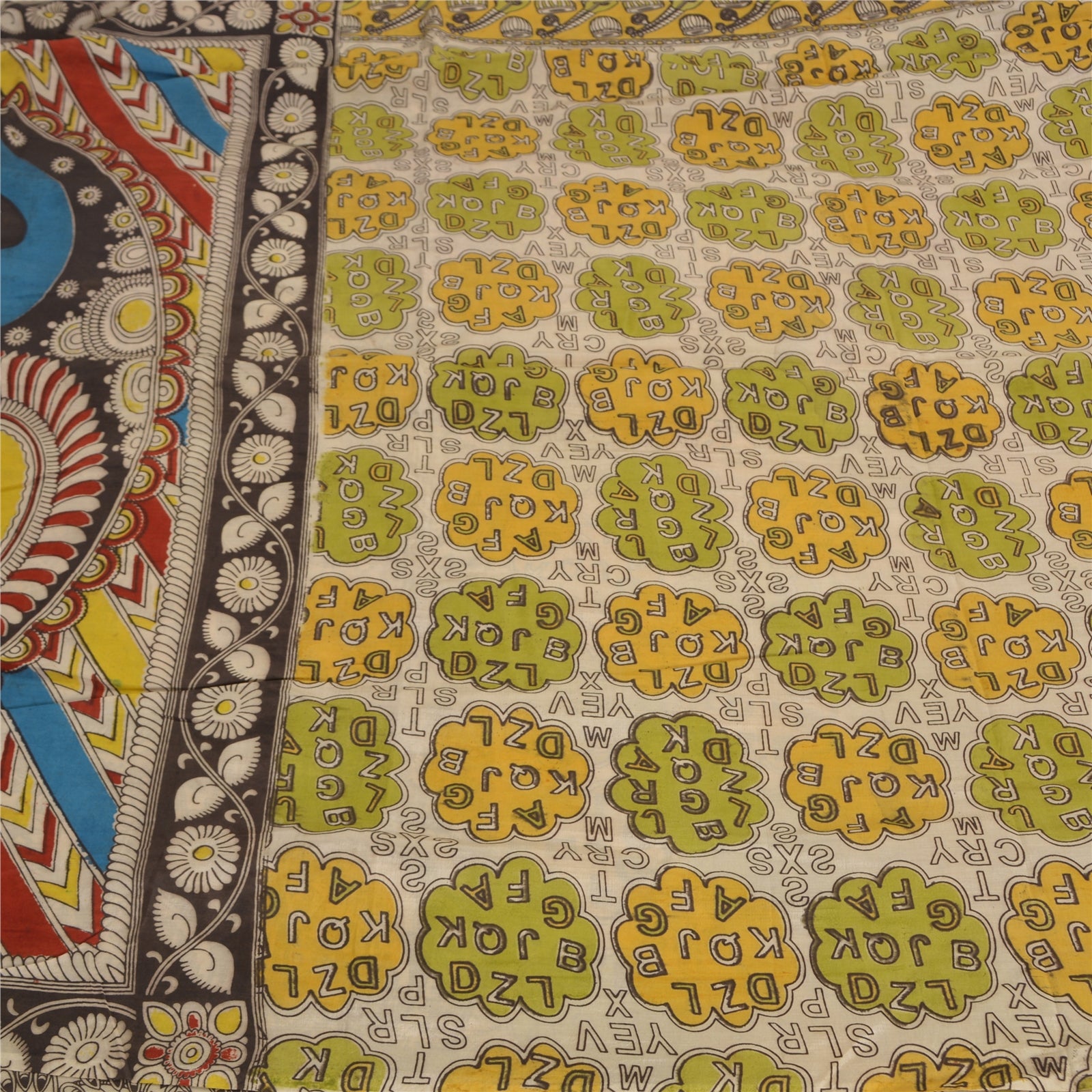 THE ITEM COLOR OR SHADE MAY BE DARKER OR LIGHTER THAN THE PICTURE. 'Beautiful ivory colored pure cotton hand block sari. Pallu & Border has printed floral, peacock, music instrument design. Alfabet design center part of saree. This saree can be used for various crafting ideas too. Use it for dress designing, as a throw, as window dressing, upholstery, table linen and much more. Let your creative juices flow. 'International buyers please note: Import duties, taxes, and charges are not included in the item price or postage cost. These charges are the buyer's responsibility. Please check with your country's customs office to determine what these additional costs will be prior to bidding or buying. Buyer will pay custom duty/tax. It is calculated and charged differently by every country. As a seller I do not have any control over it. VAT or sales tax is calculated by the platform at the time of checkout. Customs charge is payable at the time of delivery.'
