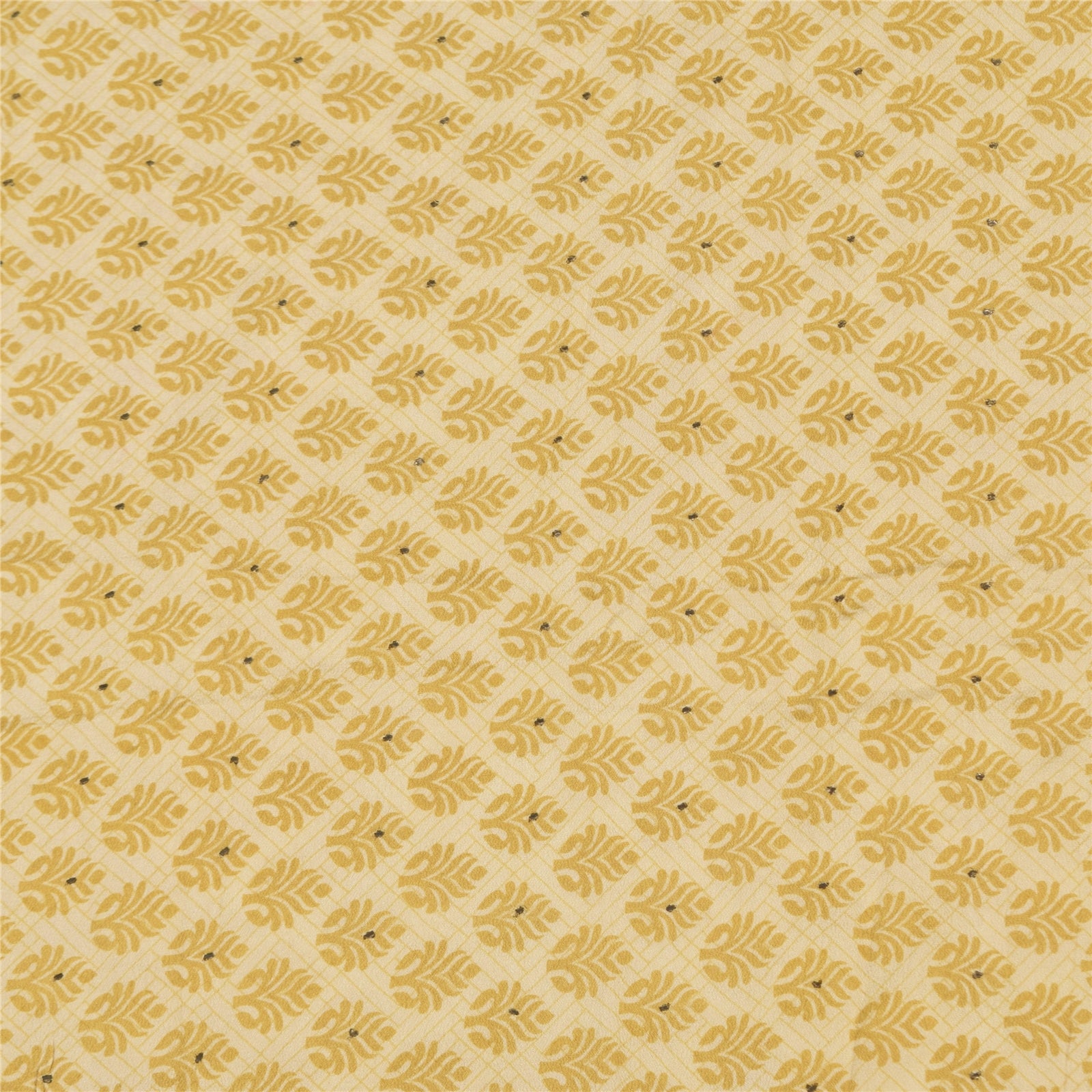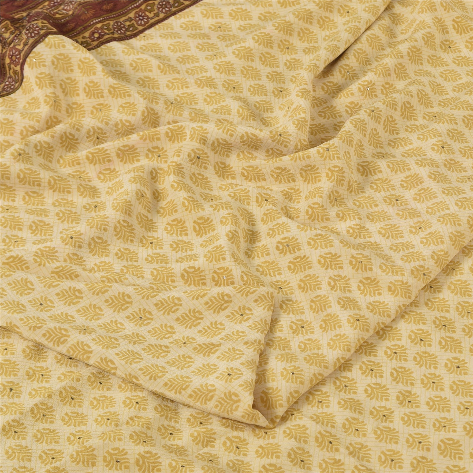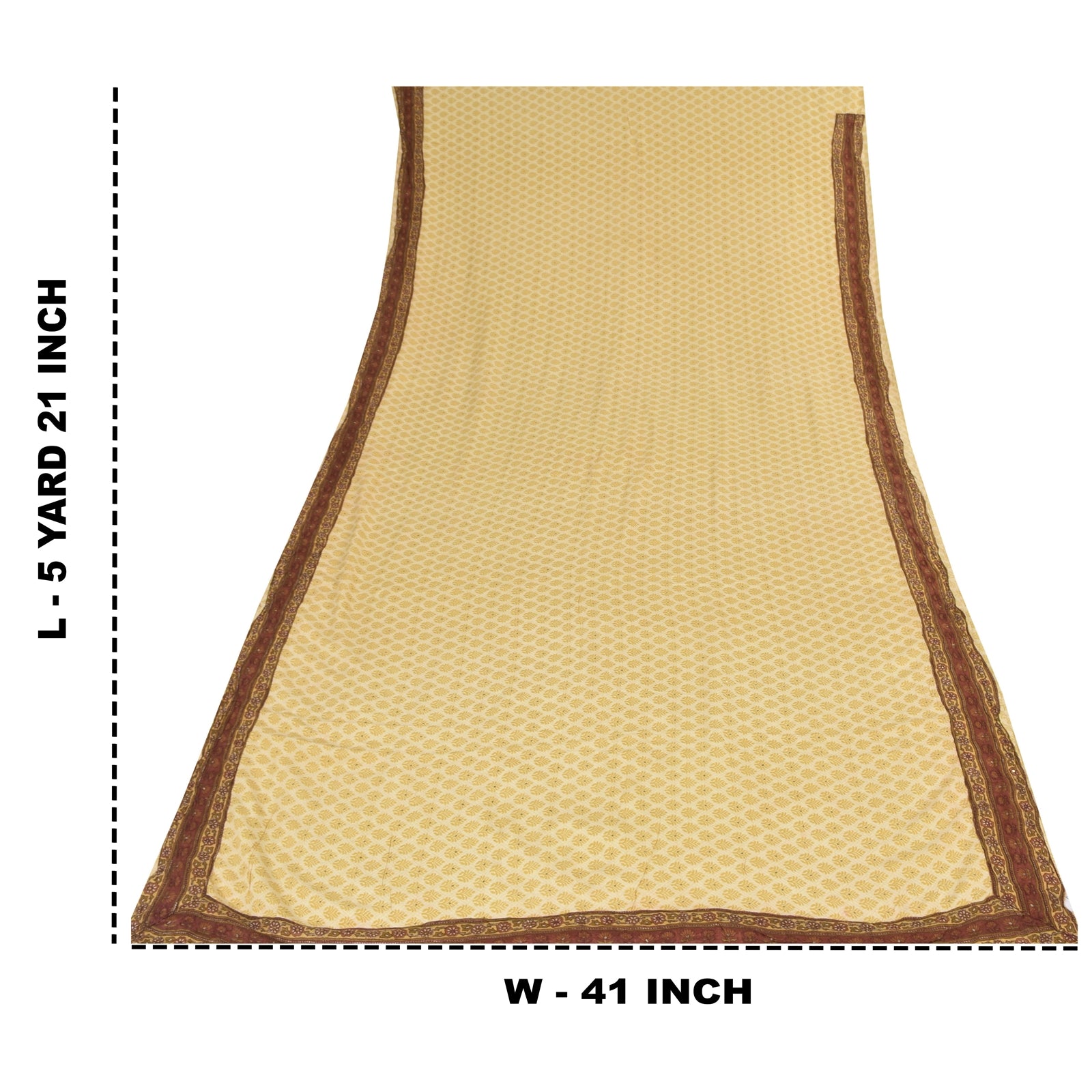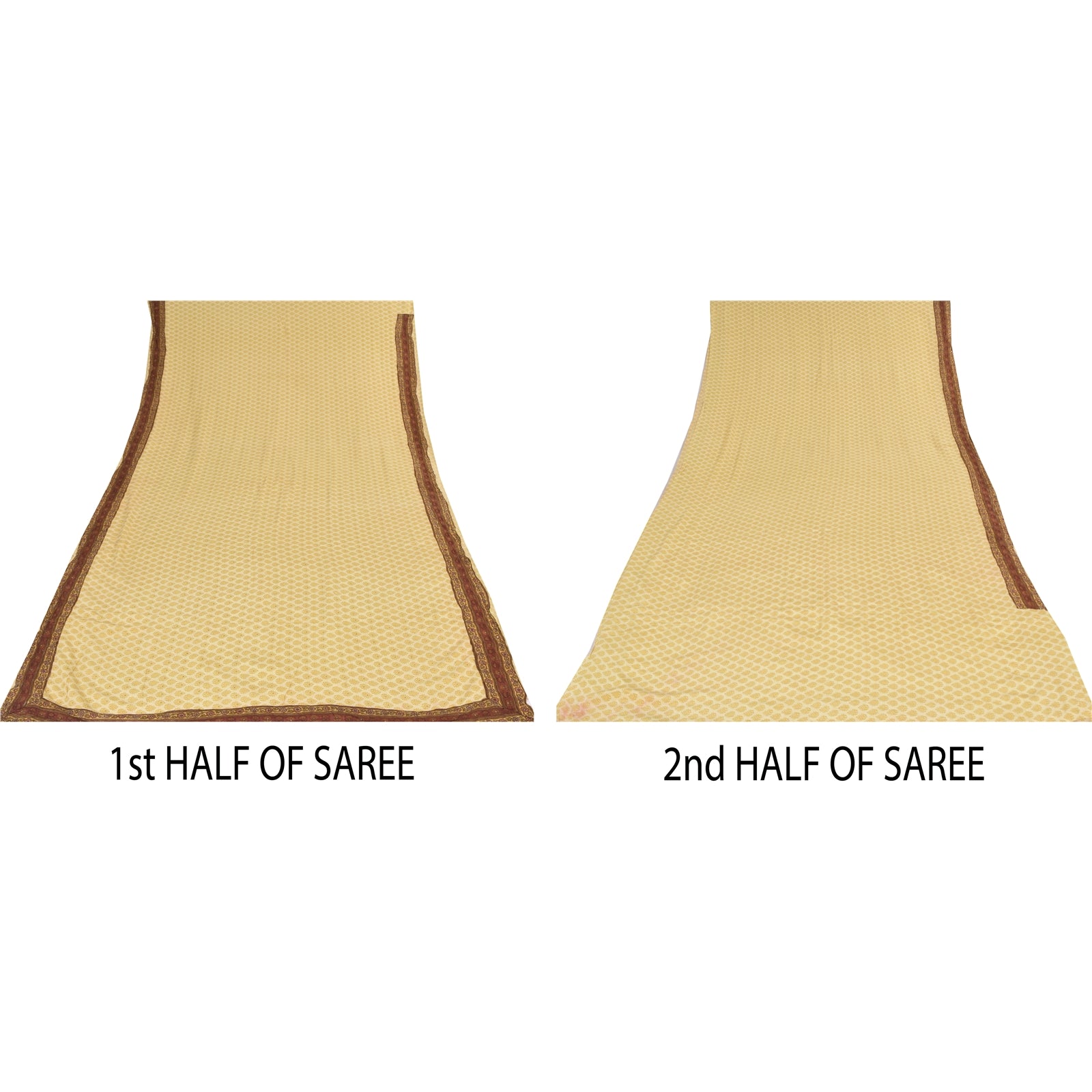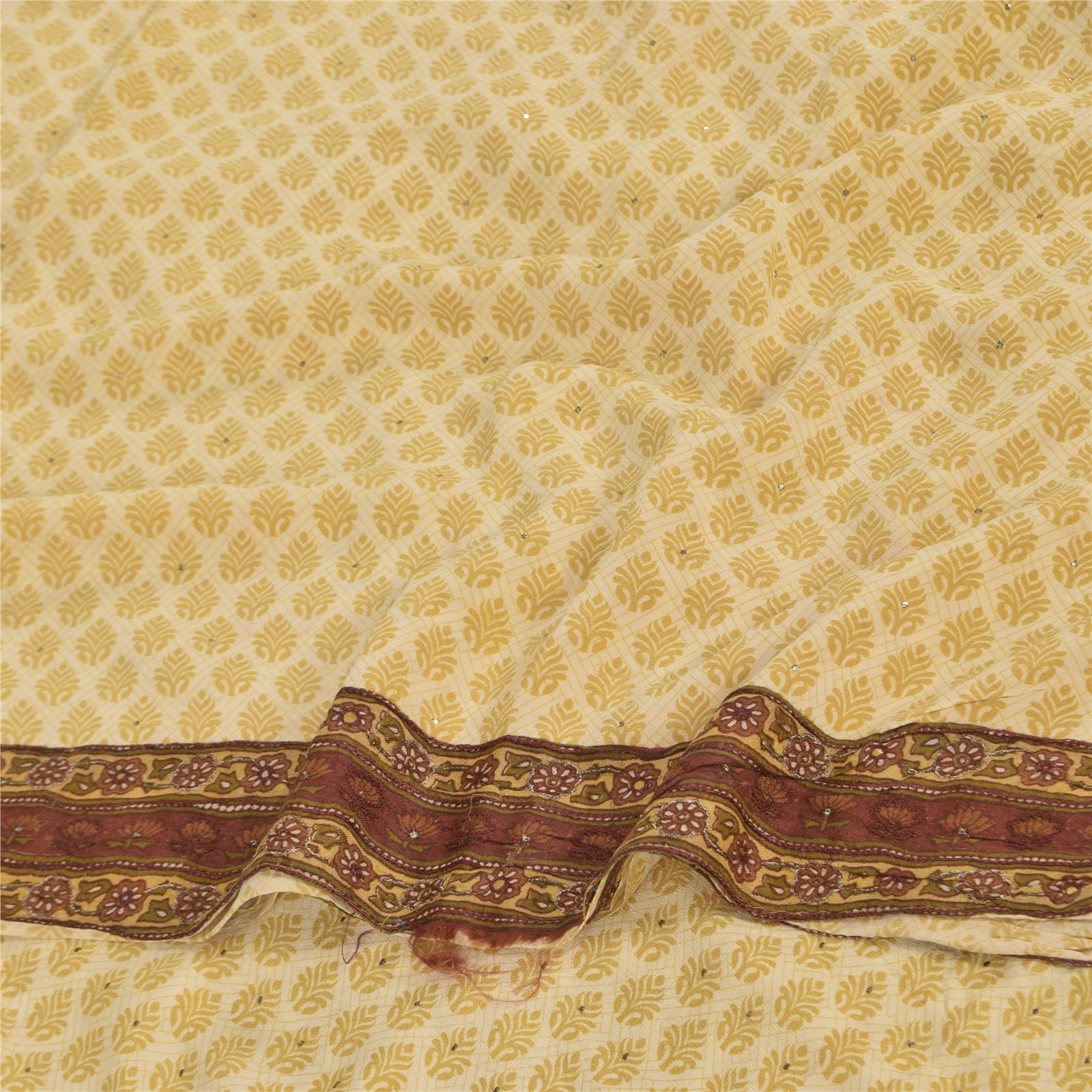Sanskriti Vintage Sarees Lemon Pure Crepe Mukesh Work Printed Sari 5+yd Sustainable Fabric