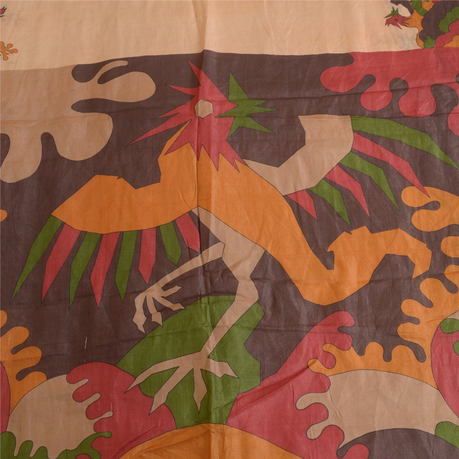 Sanskriti Vintage Sarees Light-Brown 100% Pure Silk Printed Sari Craft Sustainable Fabric