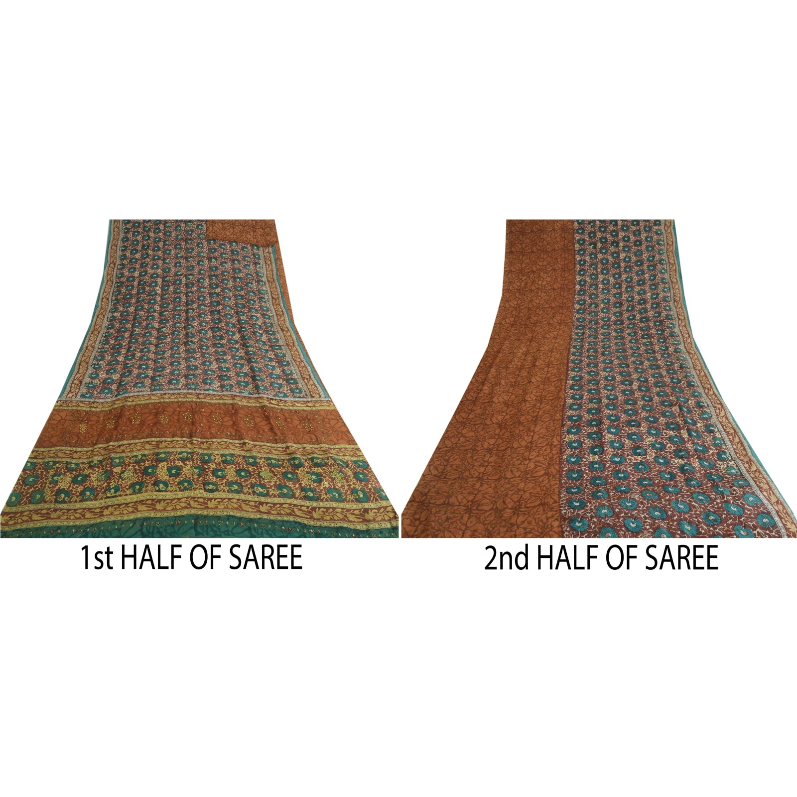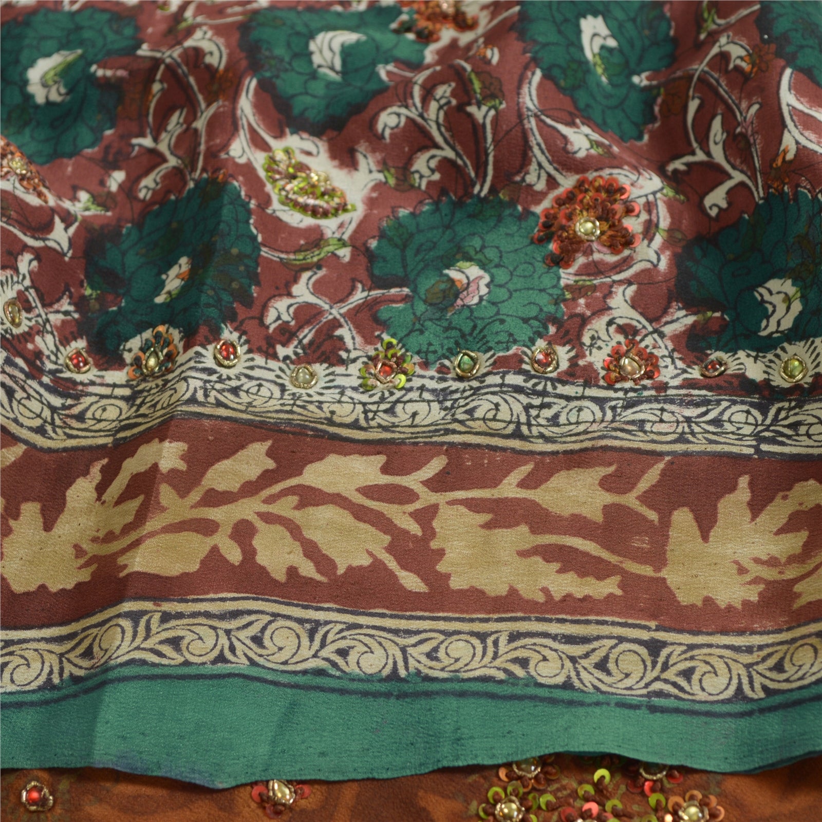 Sanskriti Vintage Sarees Multi Hand Beaded Pure Crepe Silk Printed Sari Sustainable Fabric