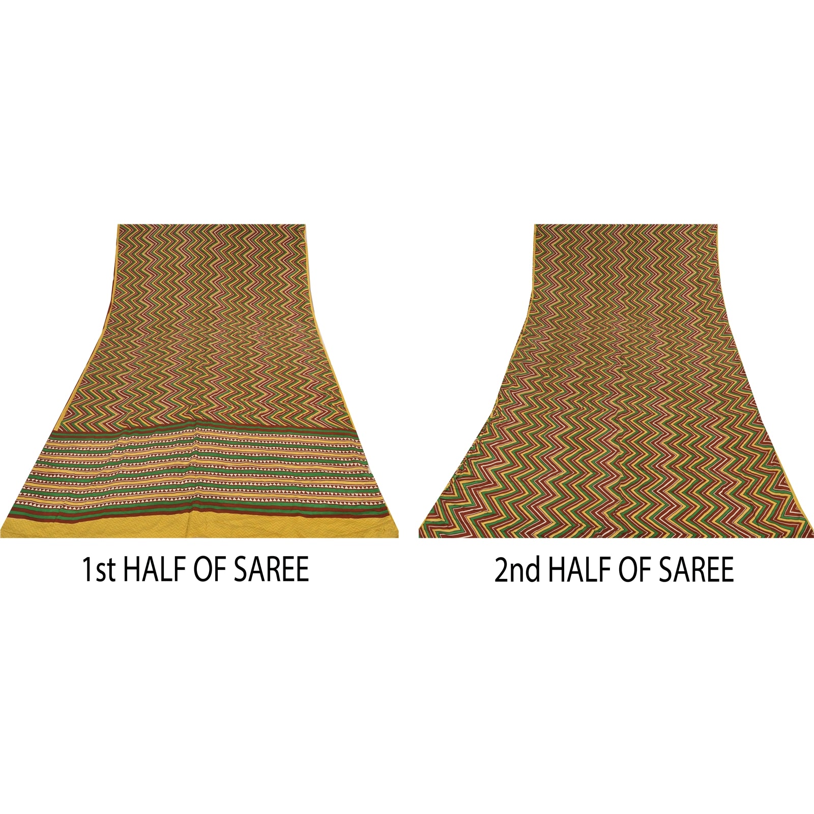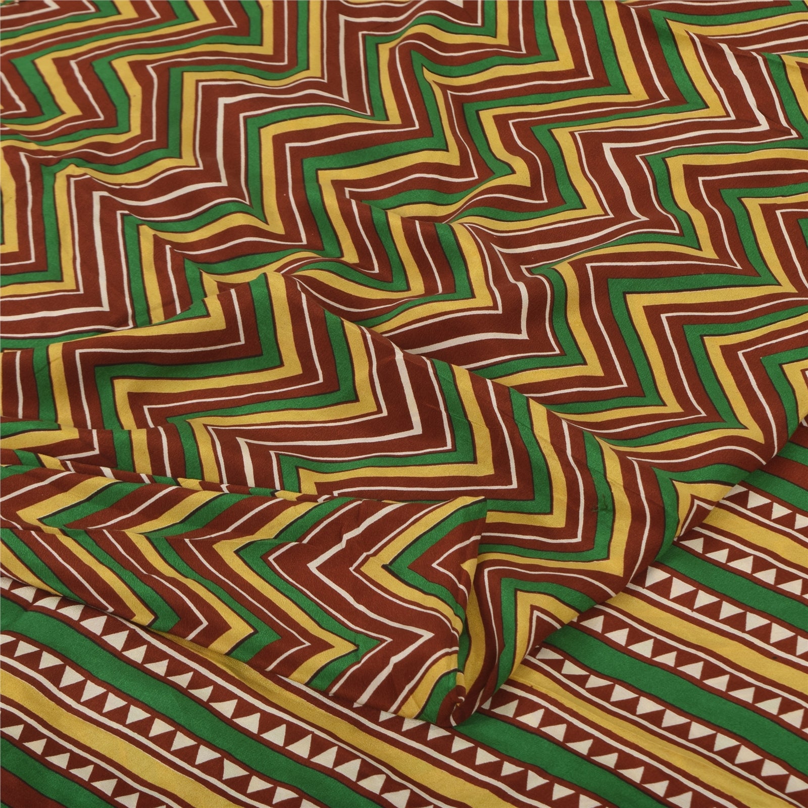Sanskriti Vintage Sarees Multi Pure Crepe Silk Printed Sari 5+yd Craft Sustainable Fabric