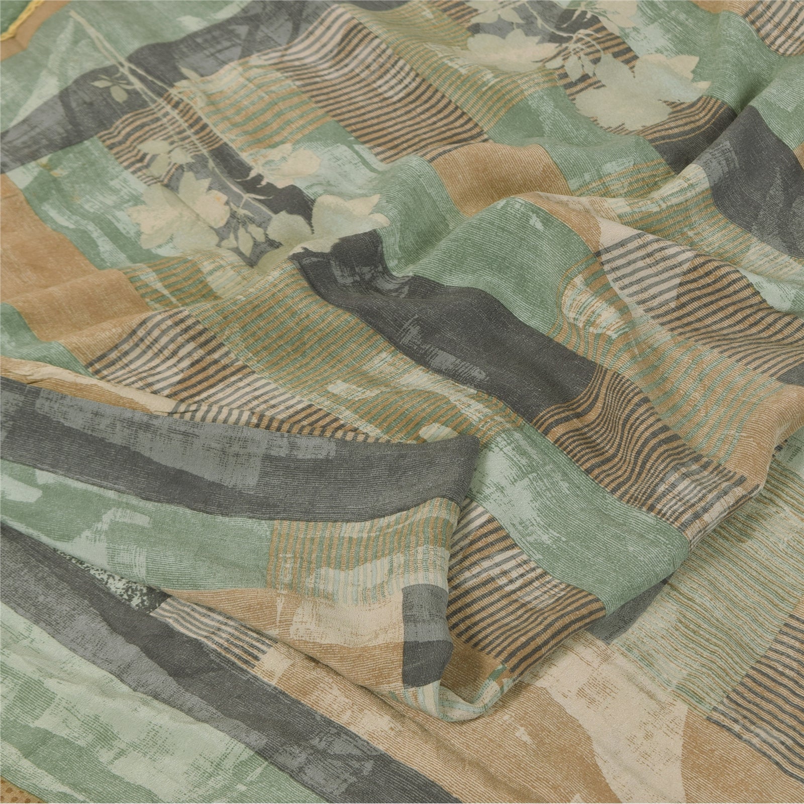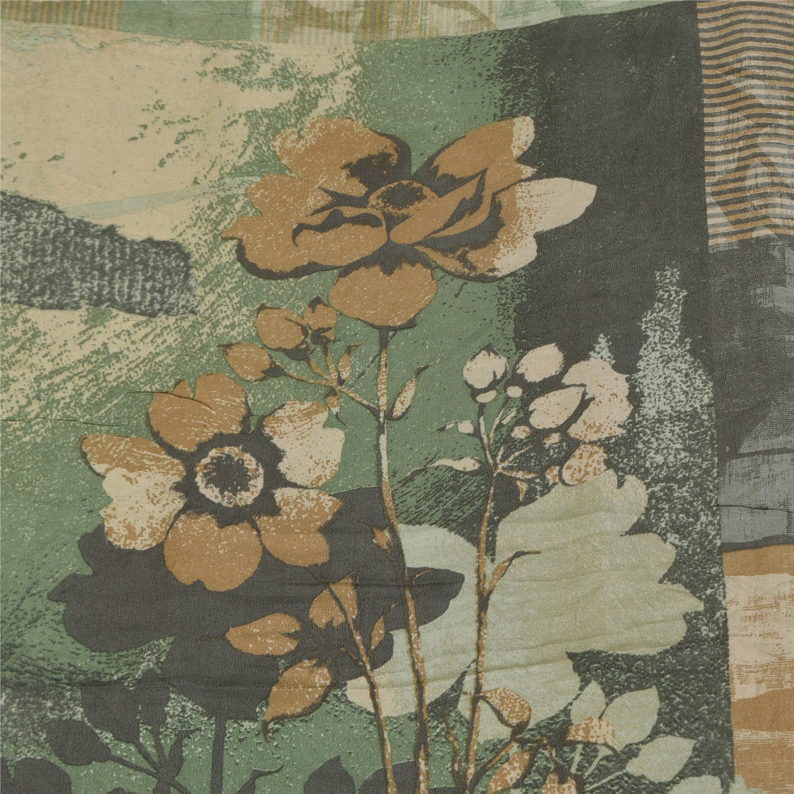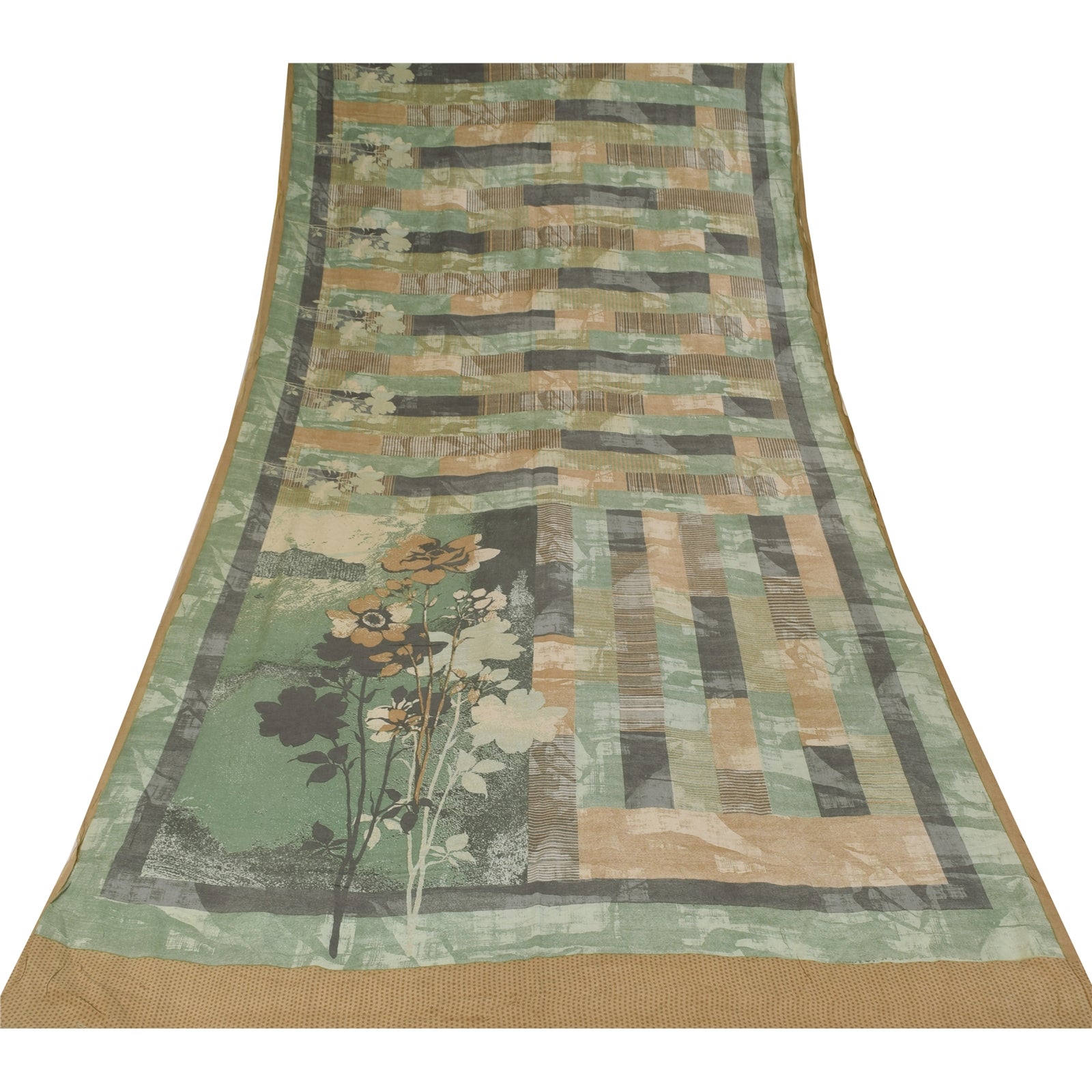 Sanskriti Vintage Sarees Multi Pure Crepe Silk Printed Sari 5+yd Craft Sustainable Fabric