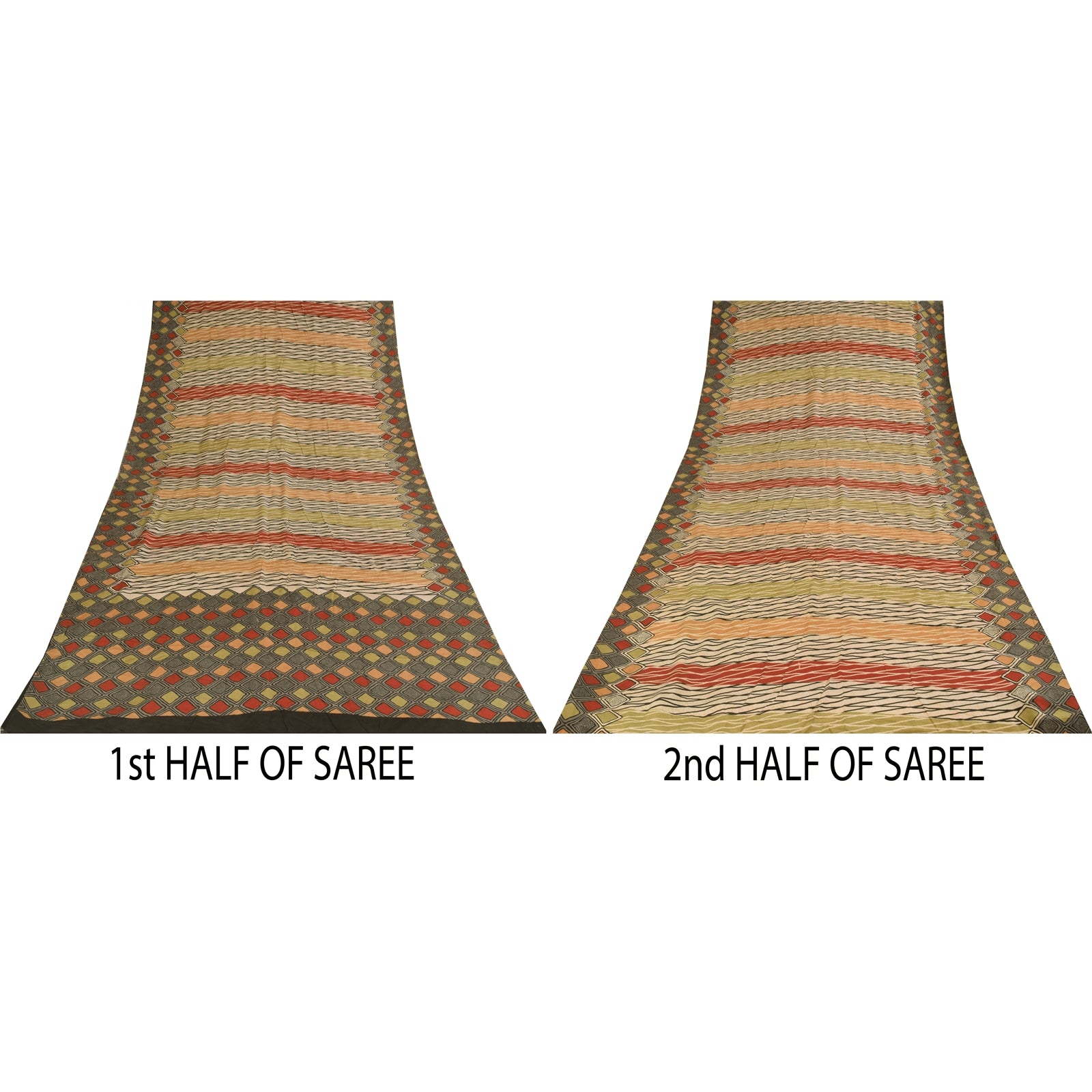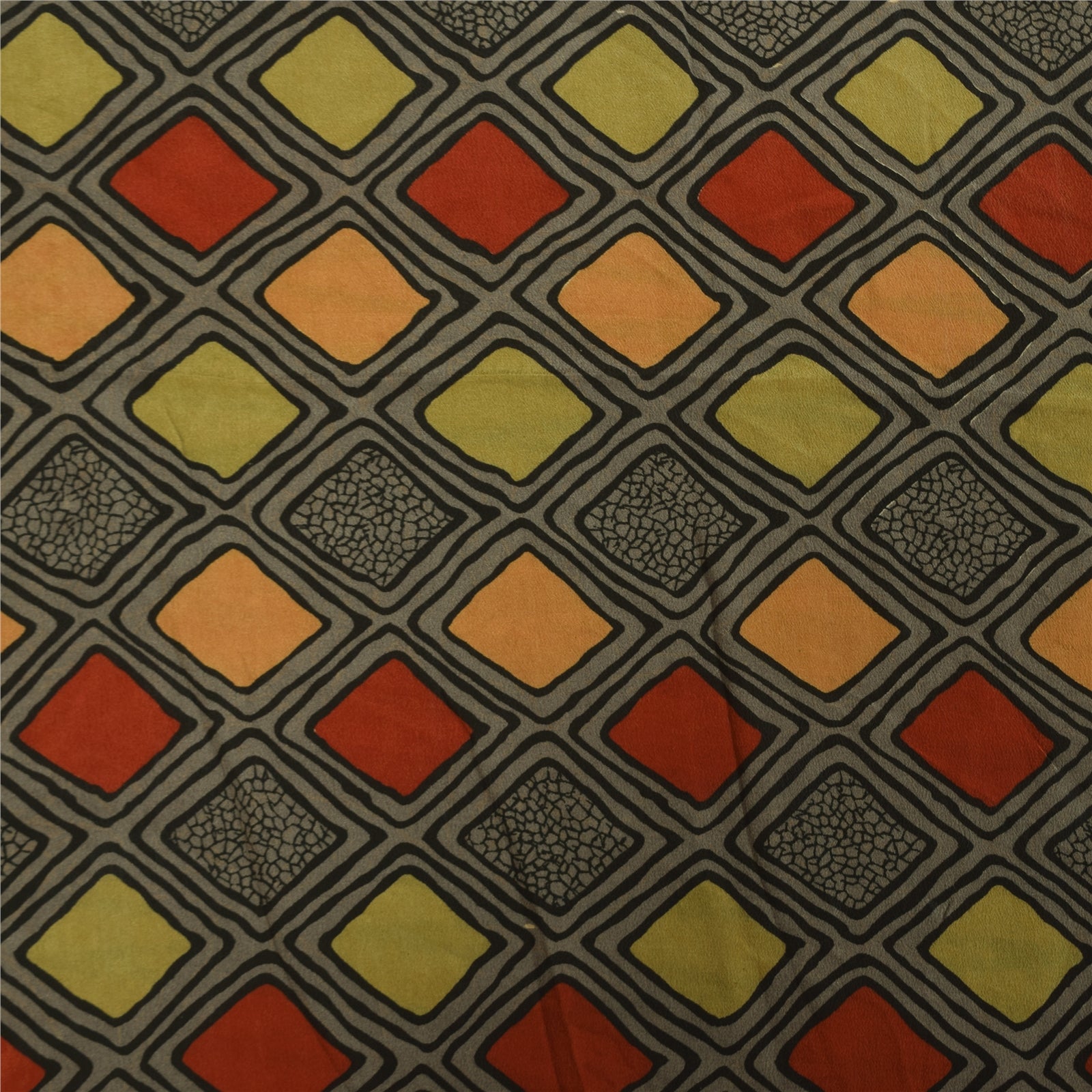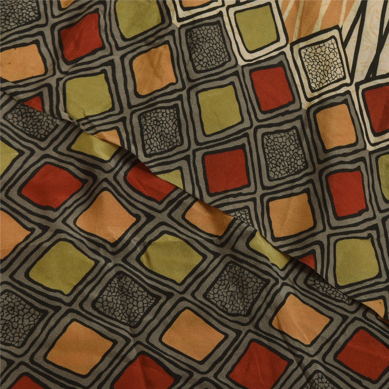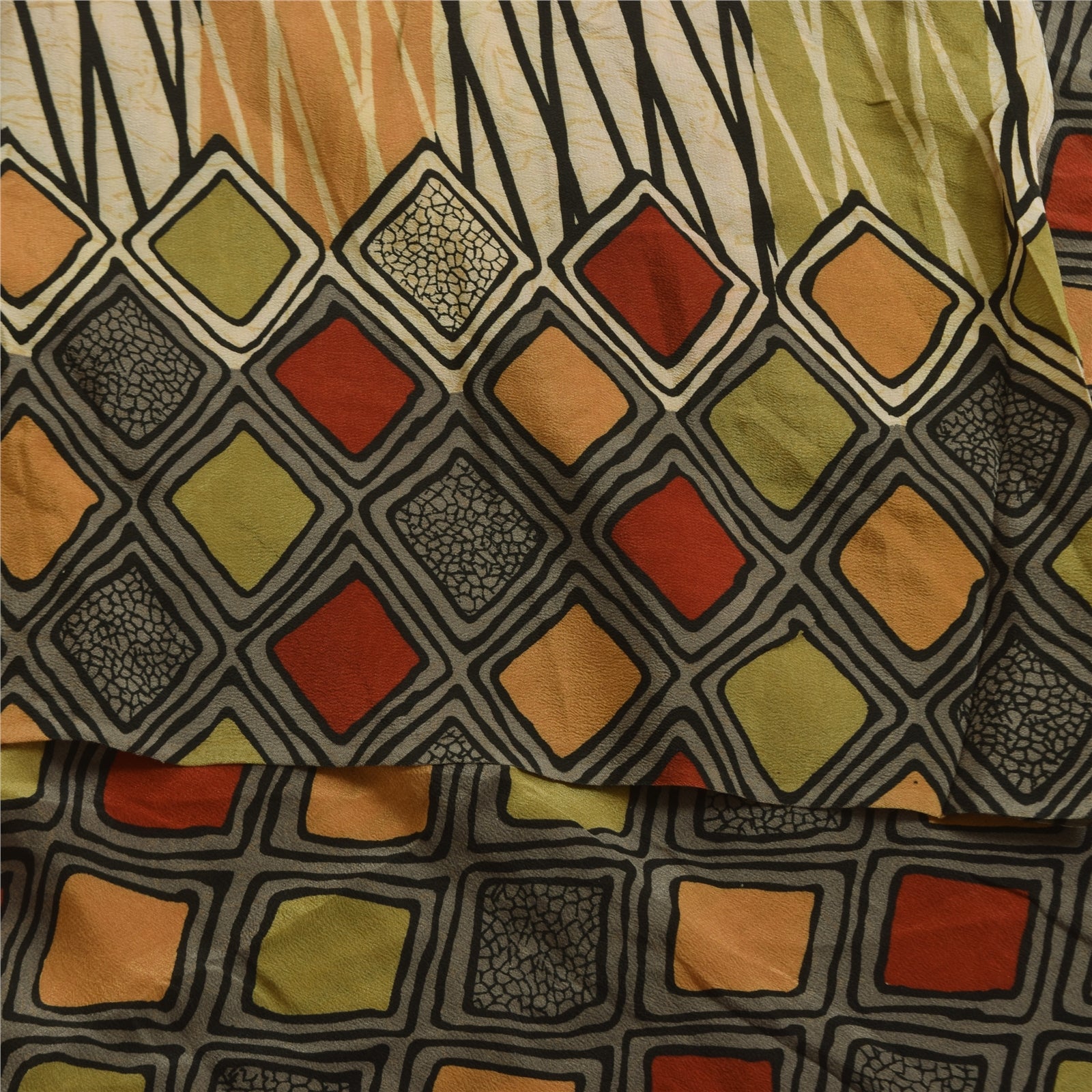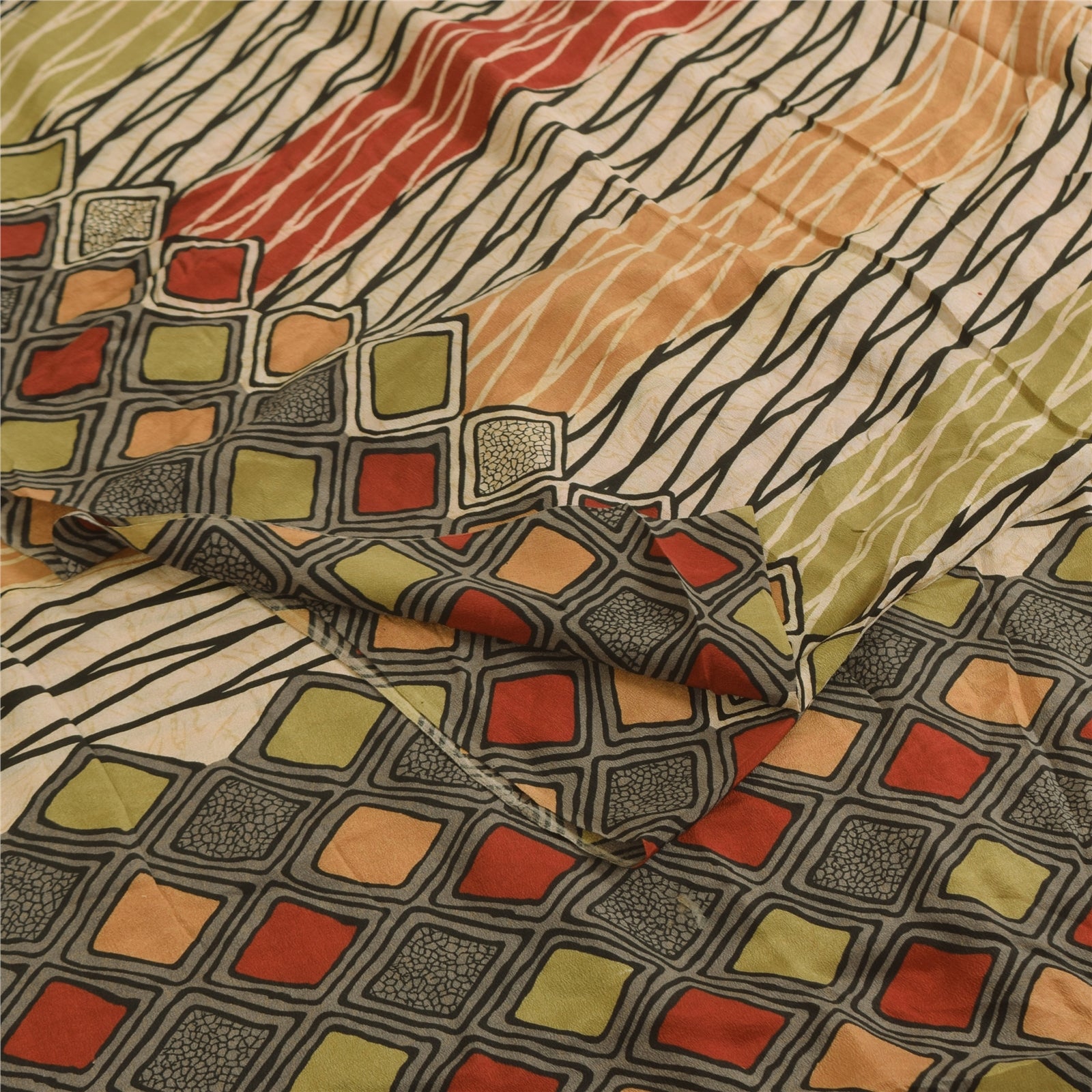 Sanskriti Vintage Sarees Multi Pure Crepe Silk Printed Sari 5+yd Craft Sustainable Fabric