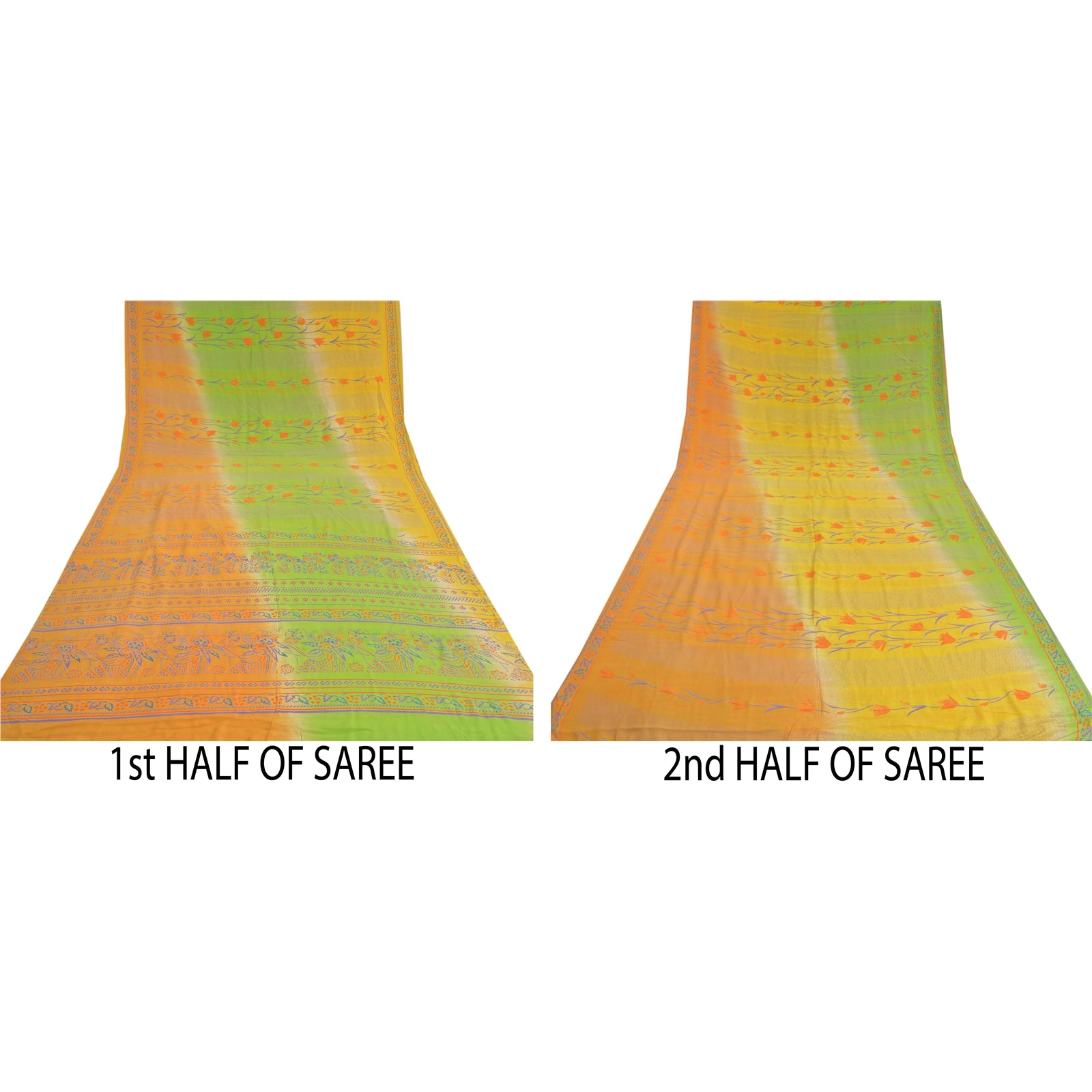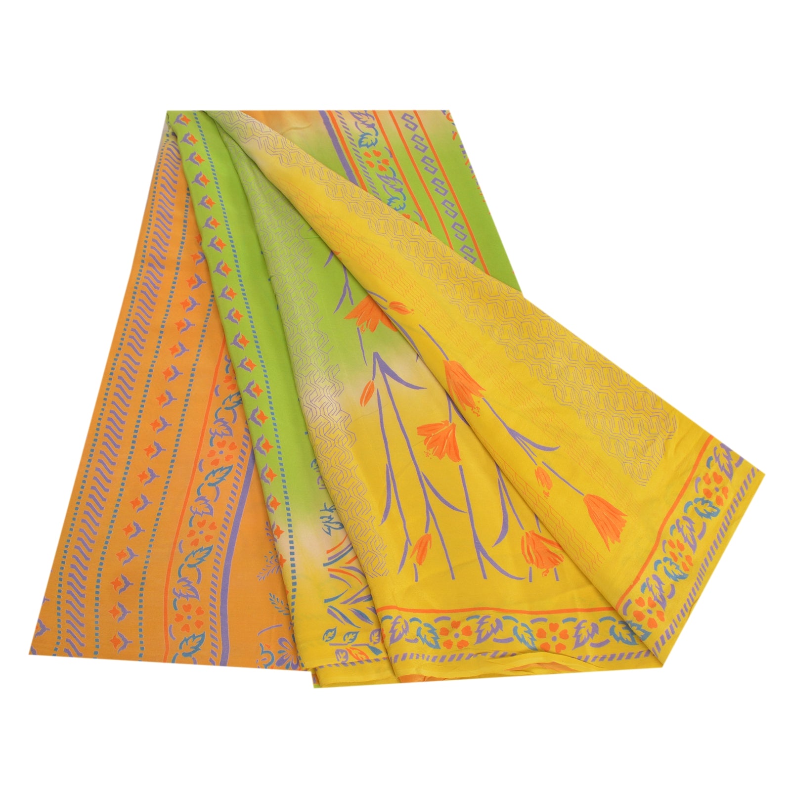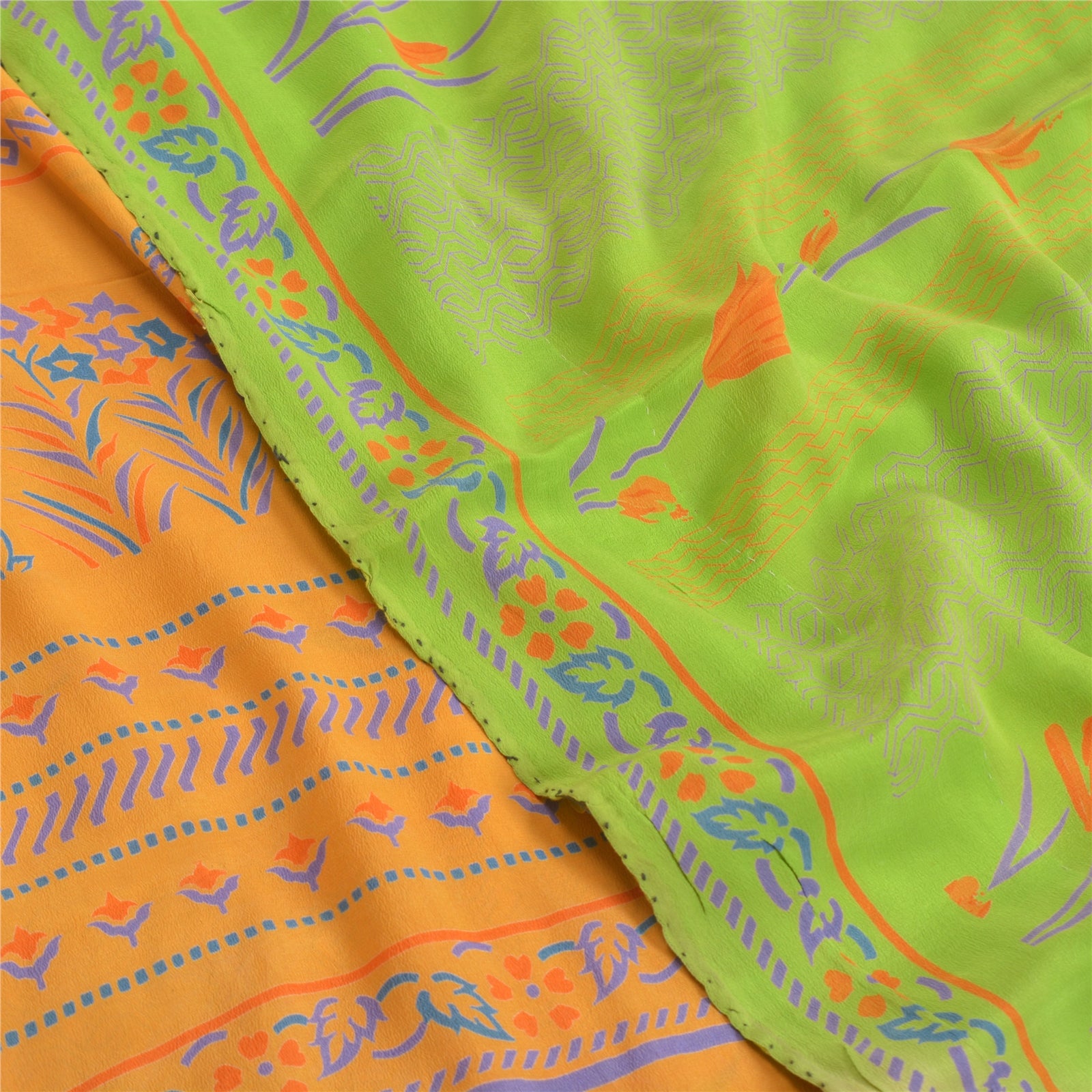 Sanskriti Vintage Sarees Multi Pure Crepe Silk Printed Sari Floral Craft Sustainable Fabric