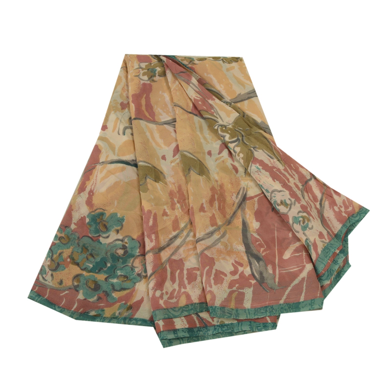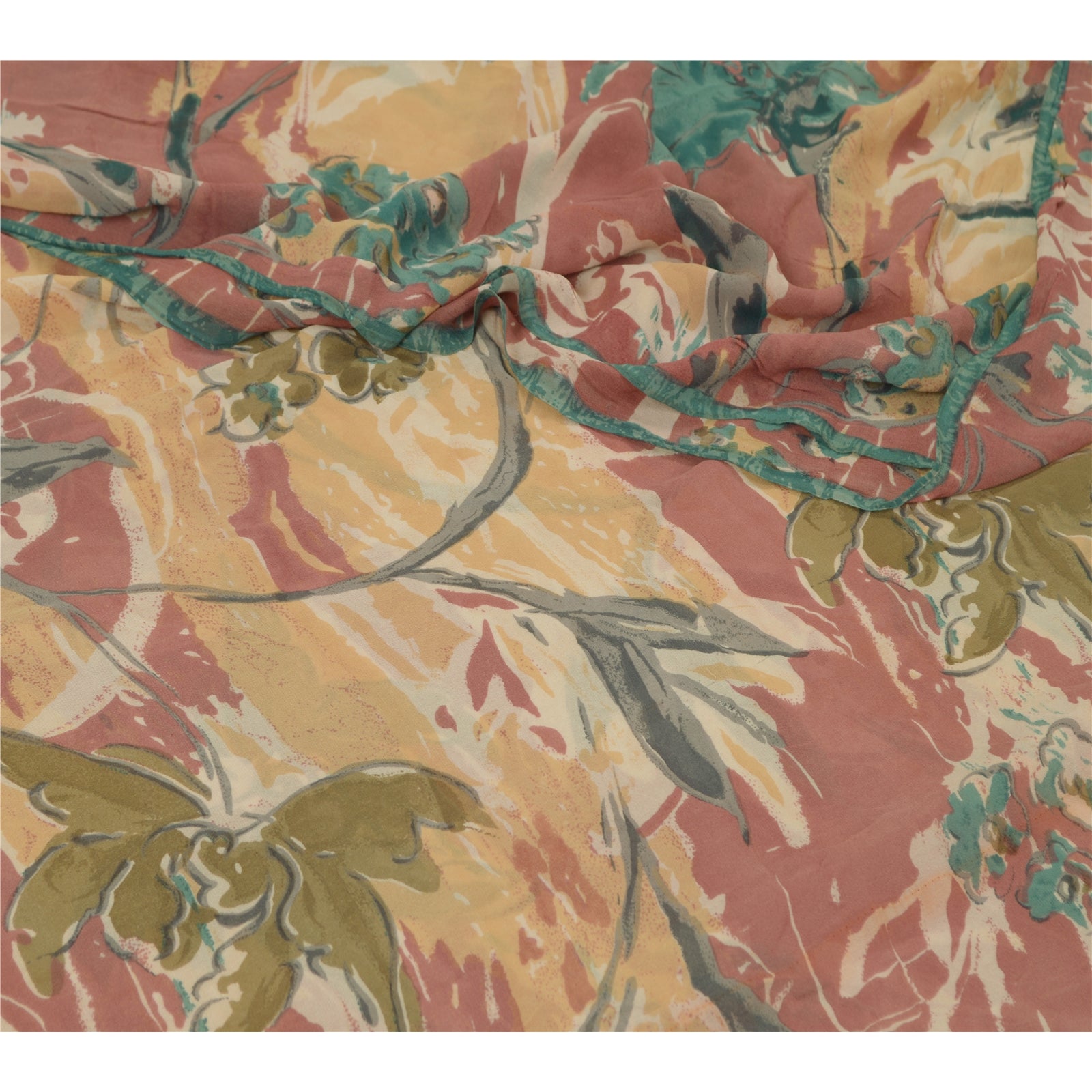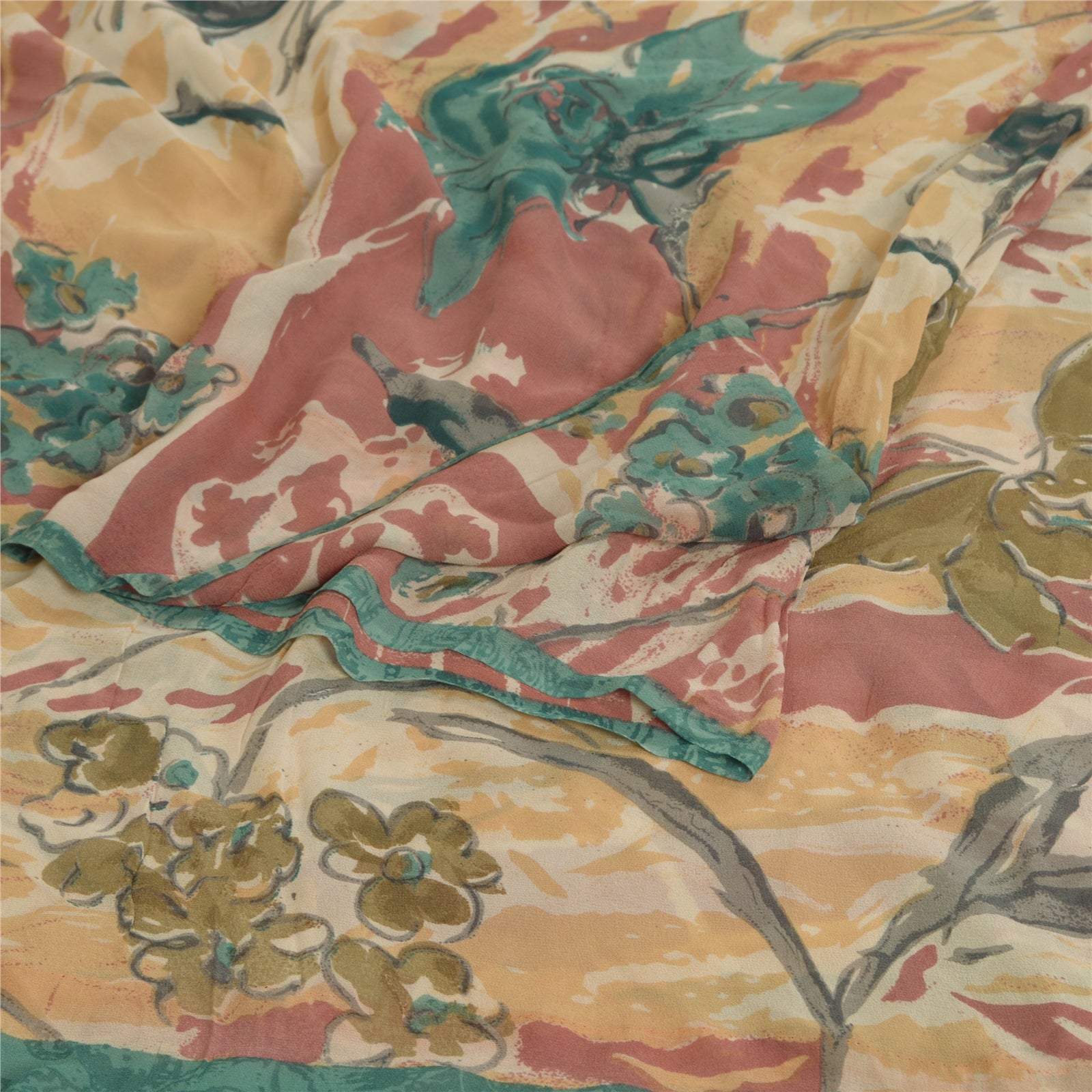 Sanskriti Vintage Sarees Multi Pure Georgette Silk Printed Sari Craft Sustainable Fabric
